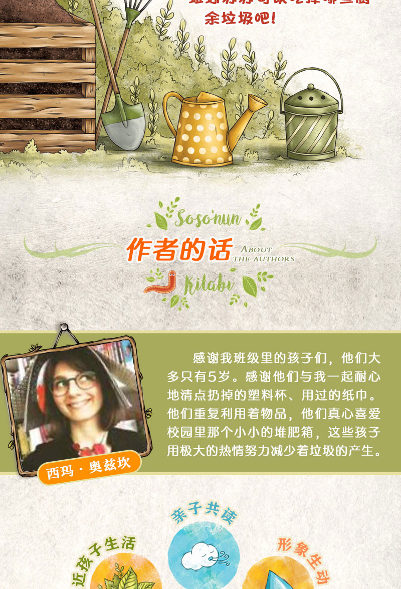 ★用简单有趣的贴近孩子学习生活的图画书的形式,让孩子了解零废弃,了解垃圾分类、分解的知识。