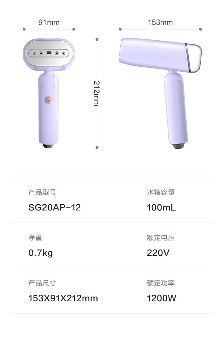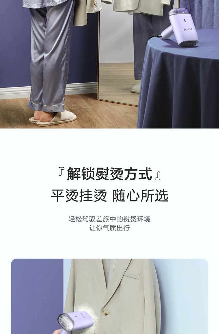 苏泊尔(SUPOR)挂烫机可折叠手持家用挂烫机强蒸汽不锈钢面板可拆卸水箱敏特渠产品C SG20AP-12浅紫色