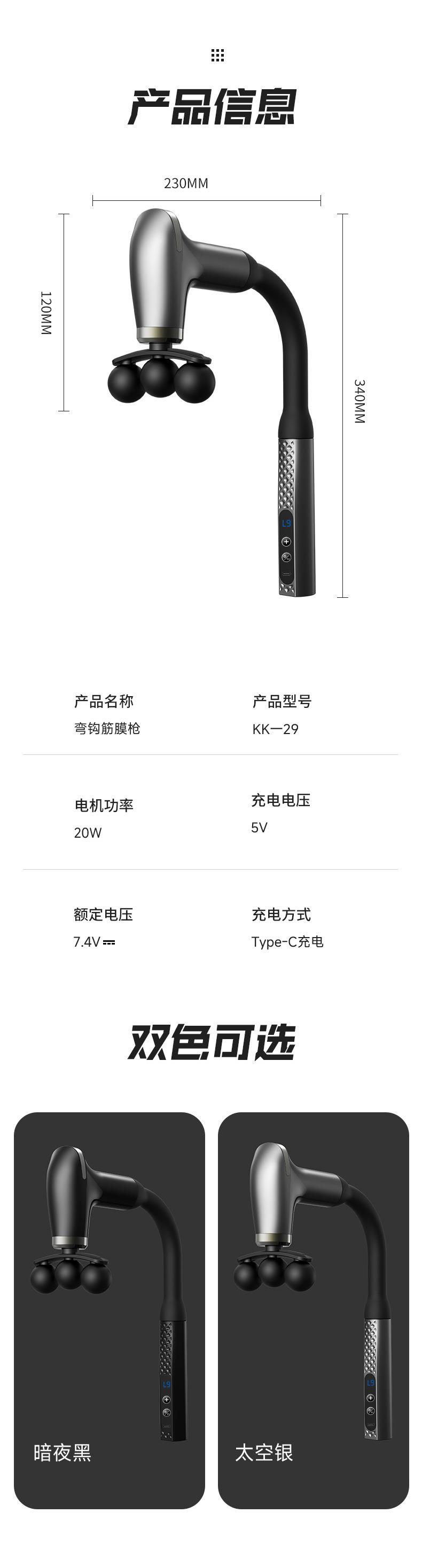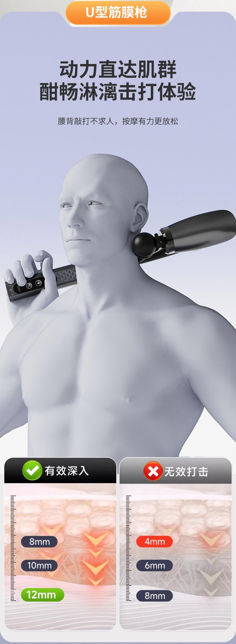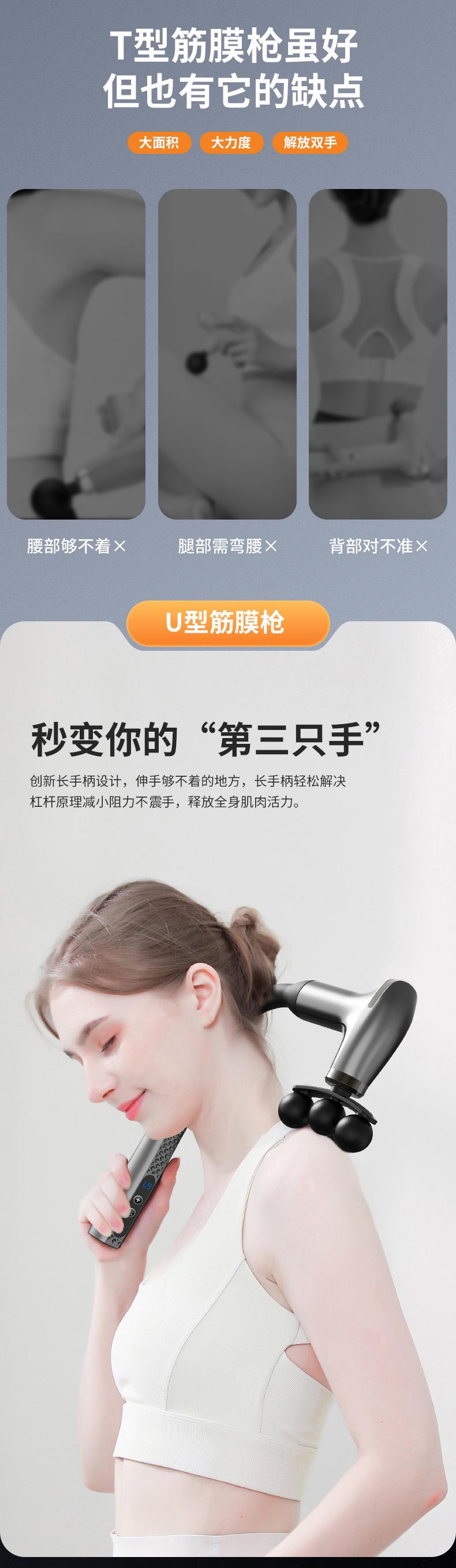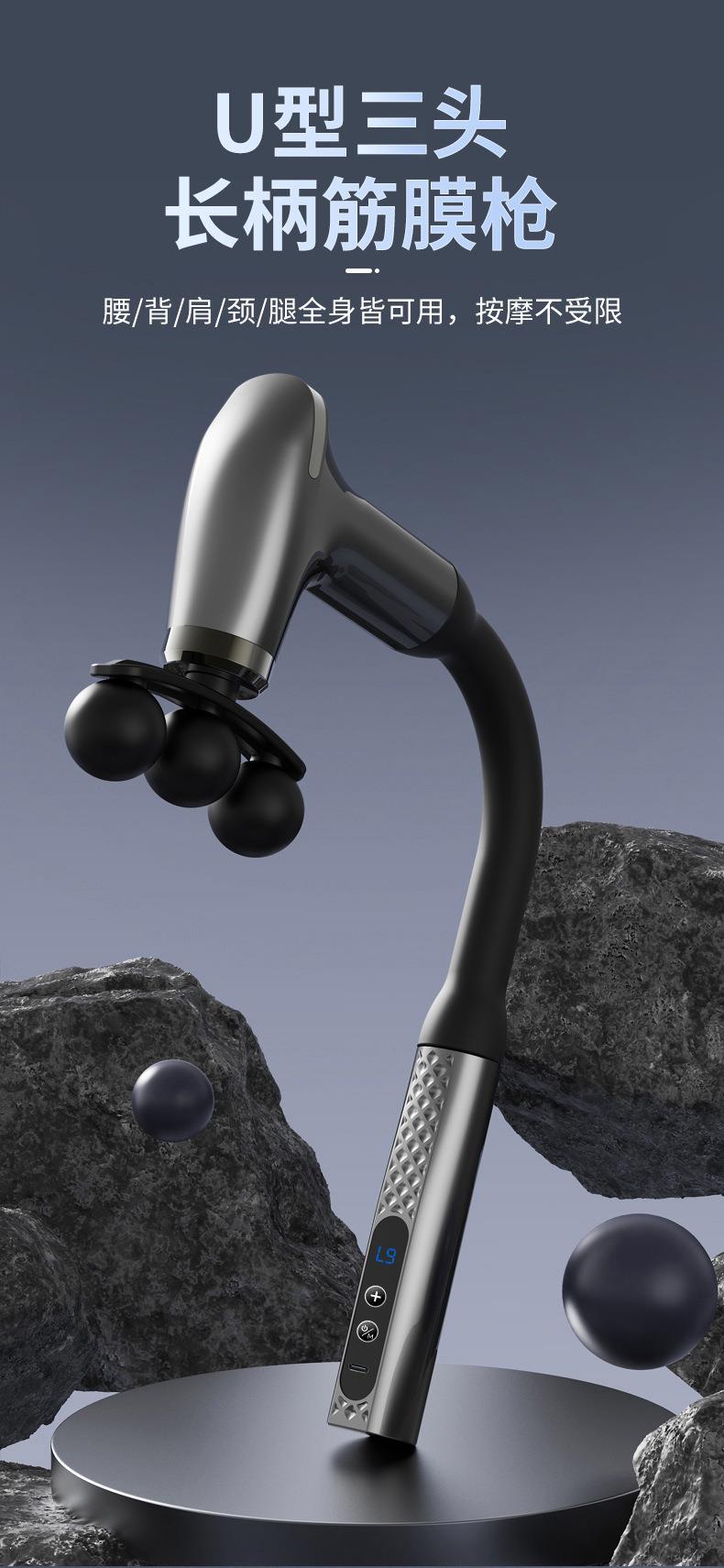L型弯钩筋膜枪电动按摩肌肉放松器健身加长捶背静音液晶多档