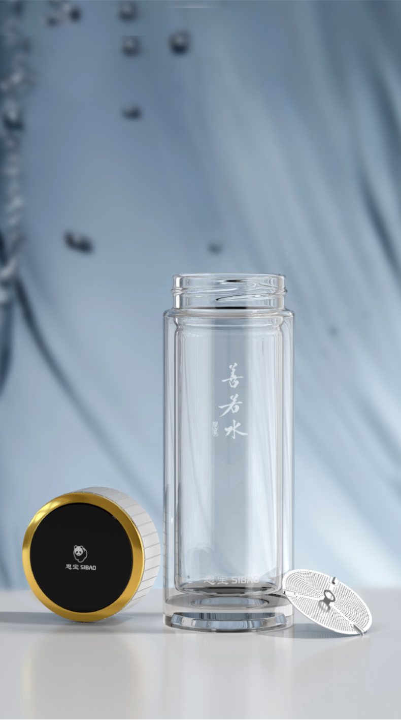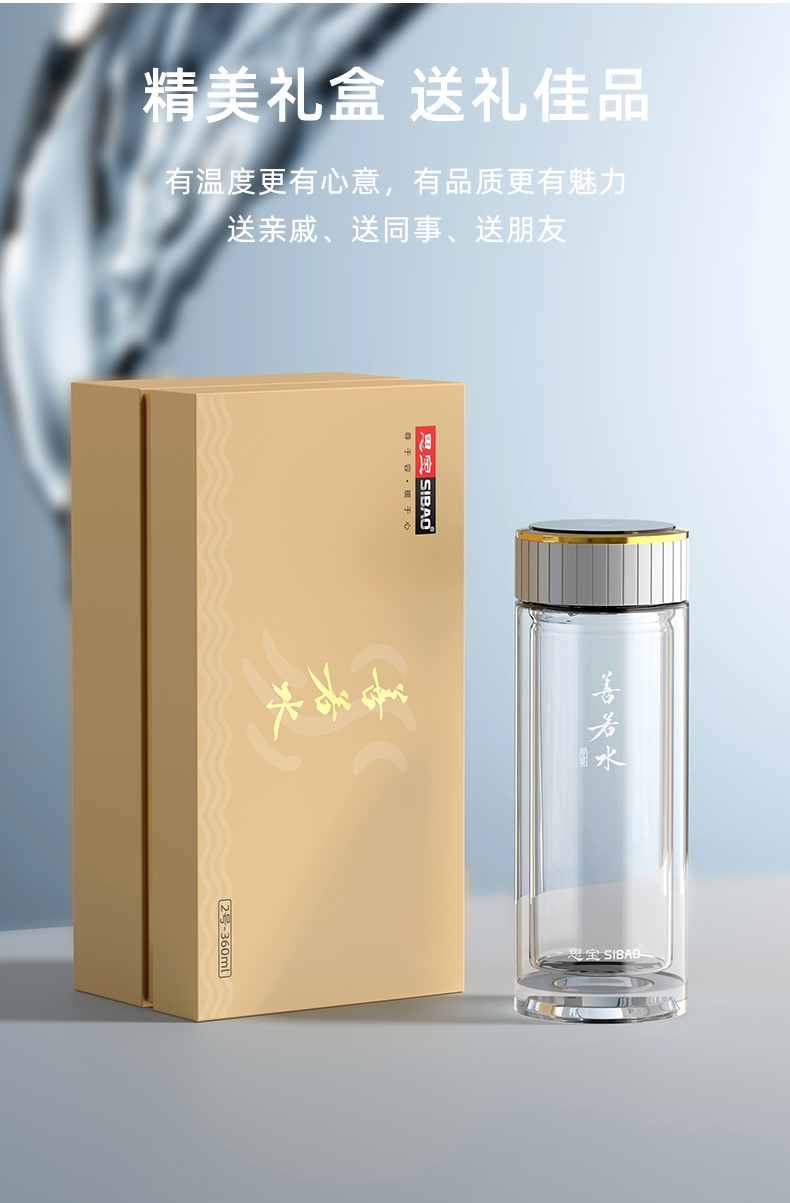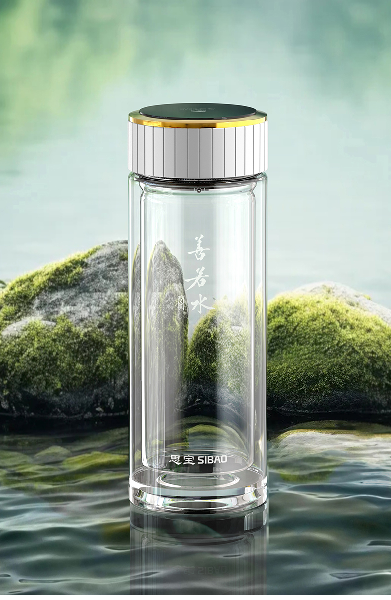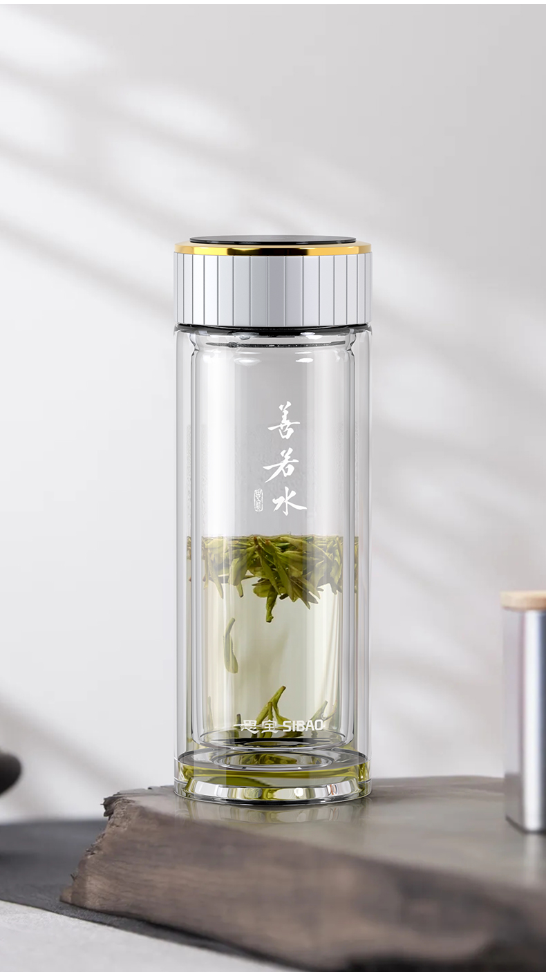思宝旗舰店善若水1/2/3号双层高硼硅玻璃杯着晶工艺车载便携水杯