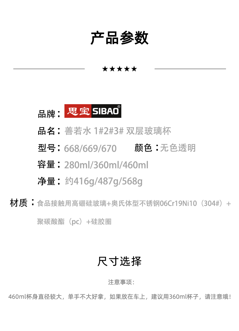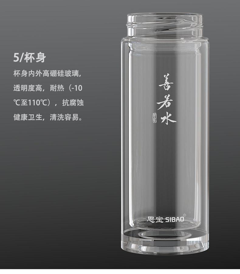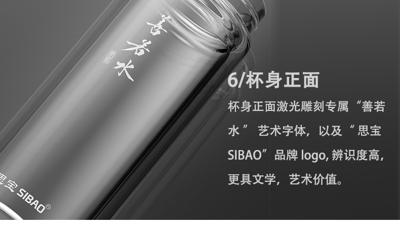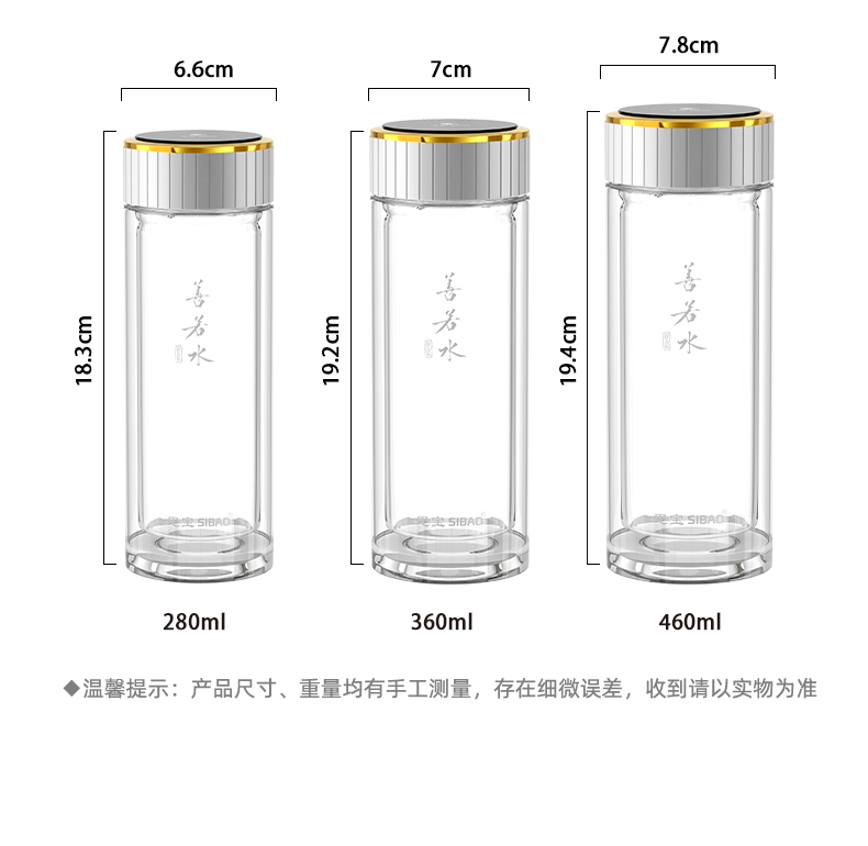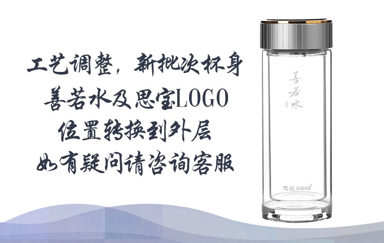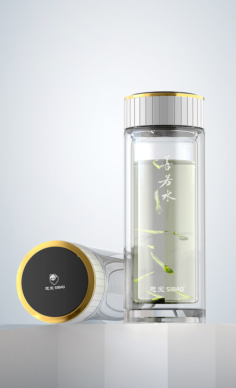 思宝旗舰店善若水1/2/3号双层高硼硅玻璃杯着晶工艺车载便携水杯