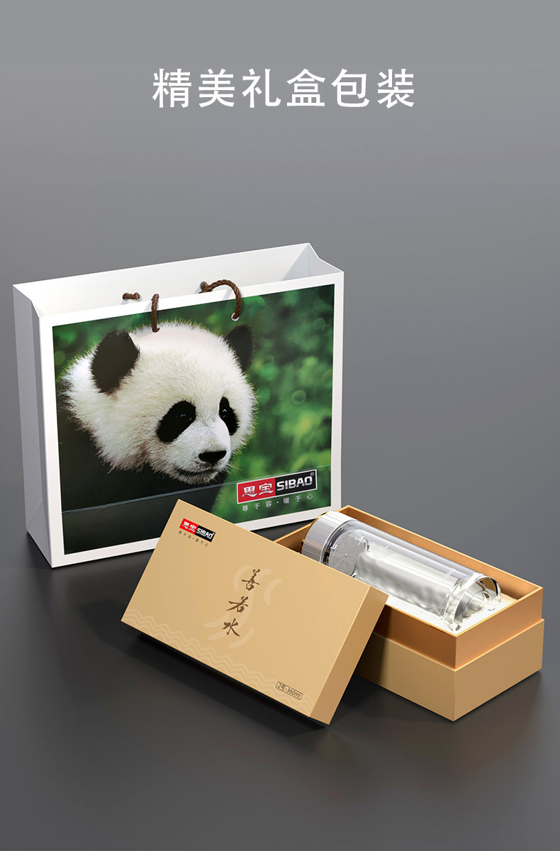 思宝新品瑞雪双层玻璃杯便携车载礼盒包装内置茶隔男女通用