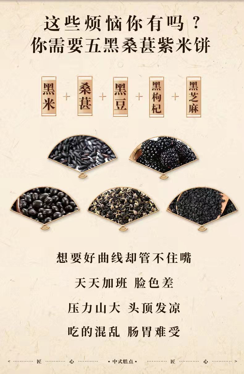 【以黑养黑,不单独添加蔗糖】五黑桑葚紫米饼 黑米+黑豆+黑芝麻+桑葚+黑枸杞 无色素 好吃有营养rui放心吃进口中老年健康