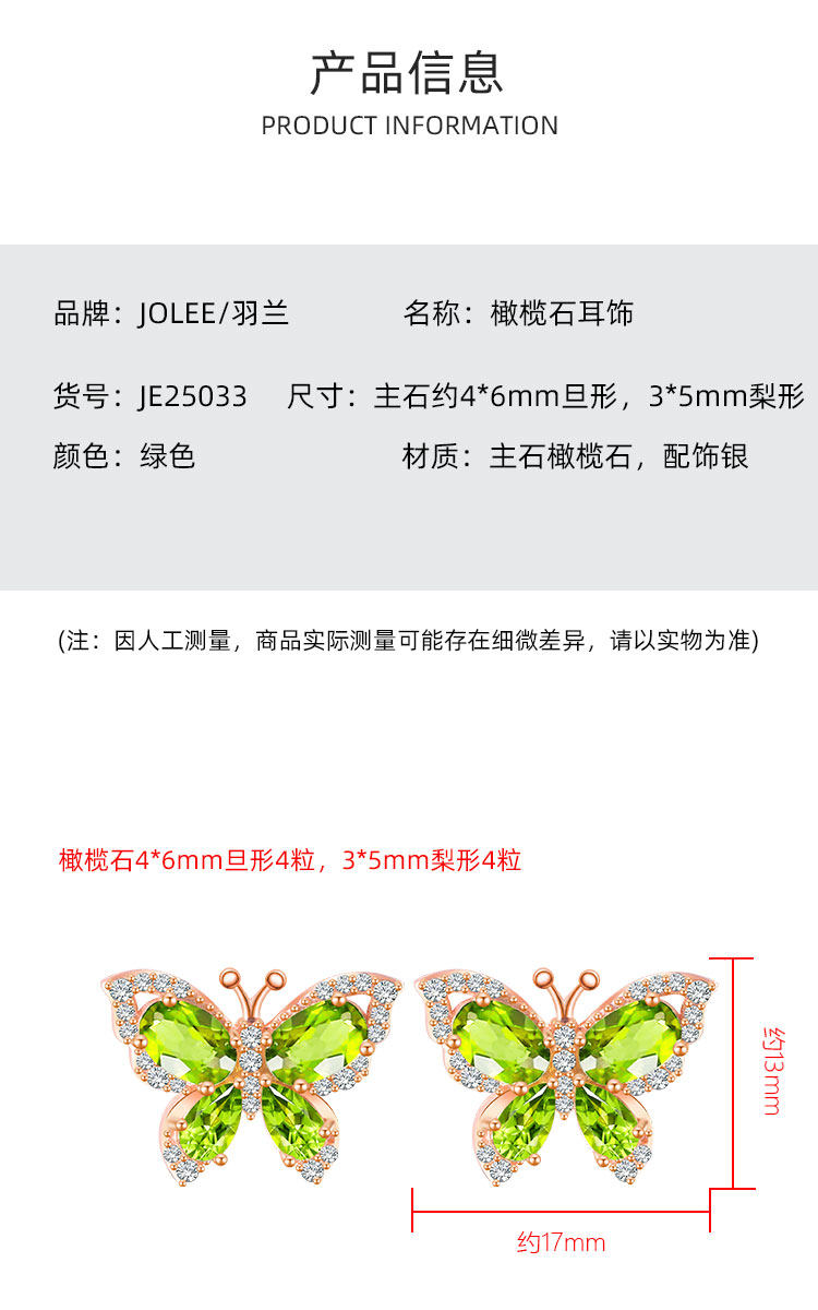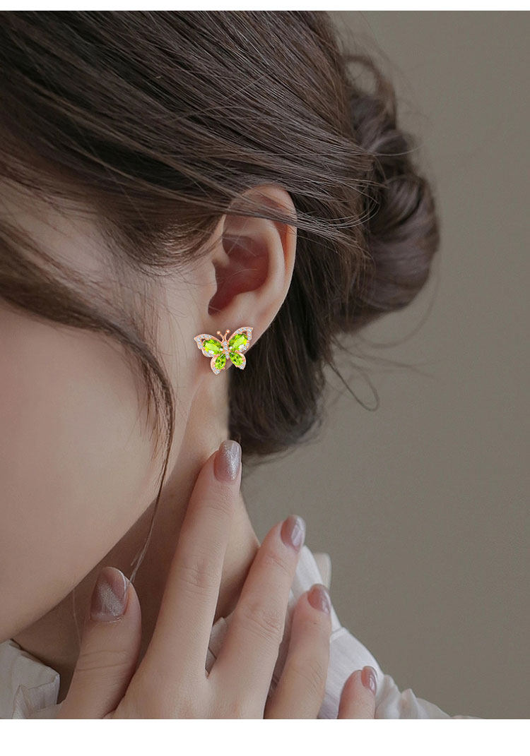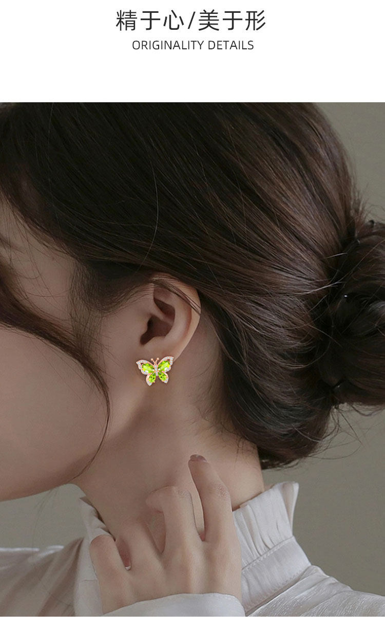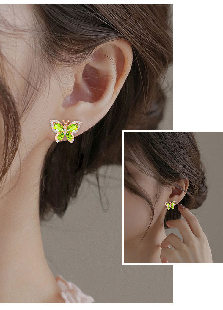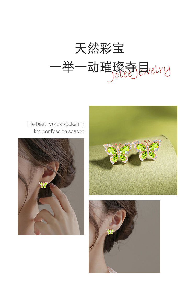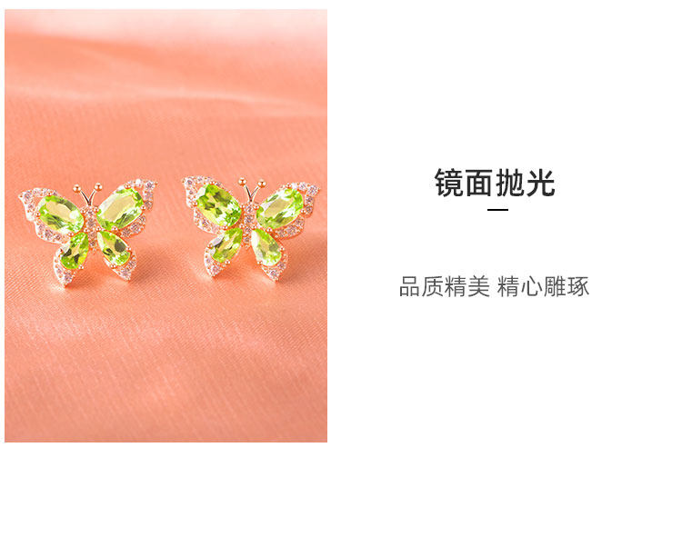 【橄榄石轻奢耳钉】周六(3.21)中午12点开始 S925银时尚蝴蝶彩宝耳饰品送女士节日礼物JE25033-水晶CC