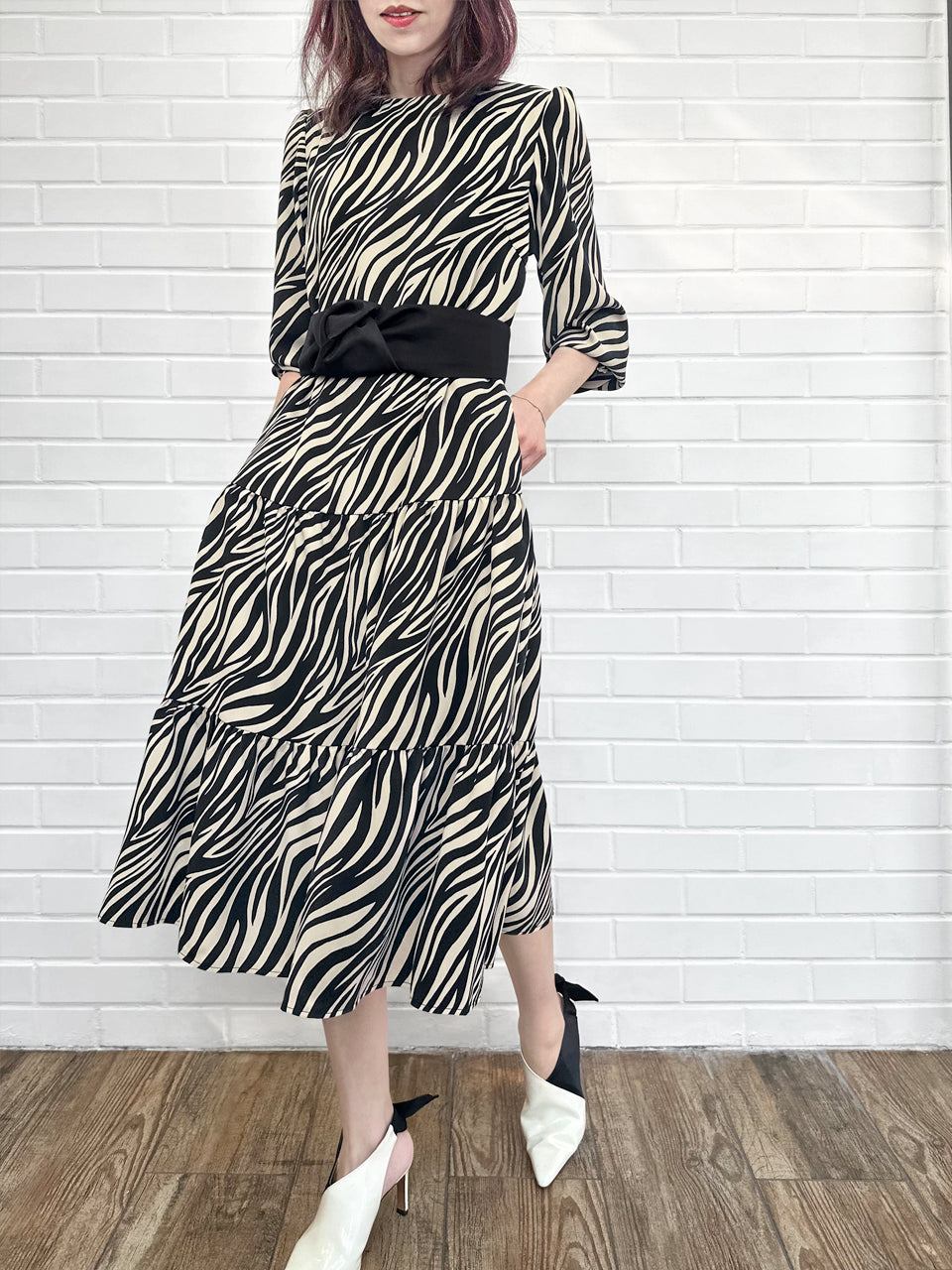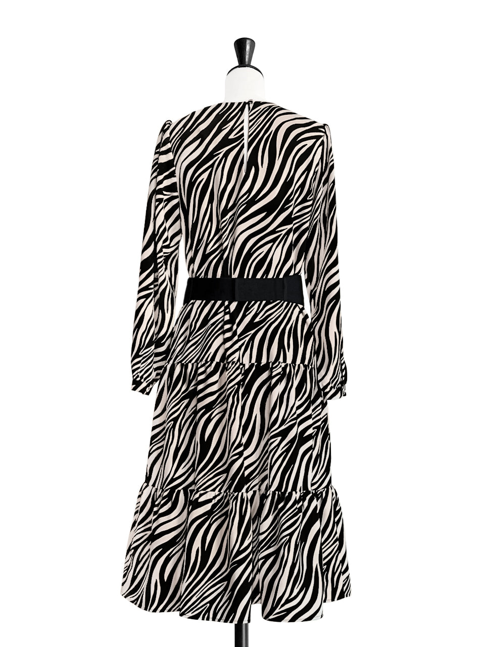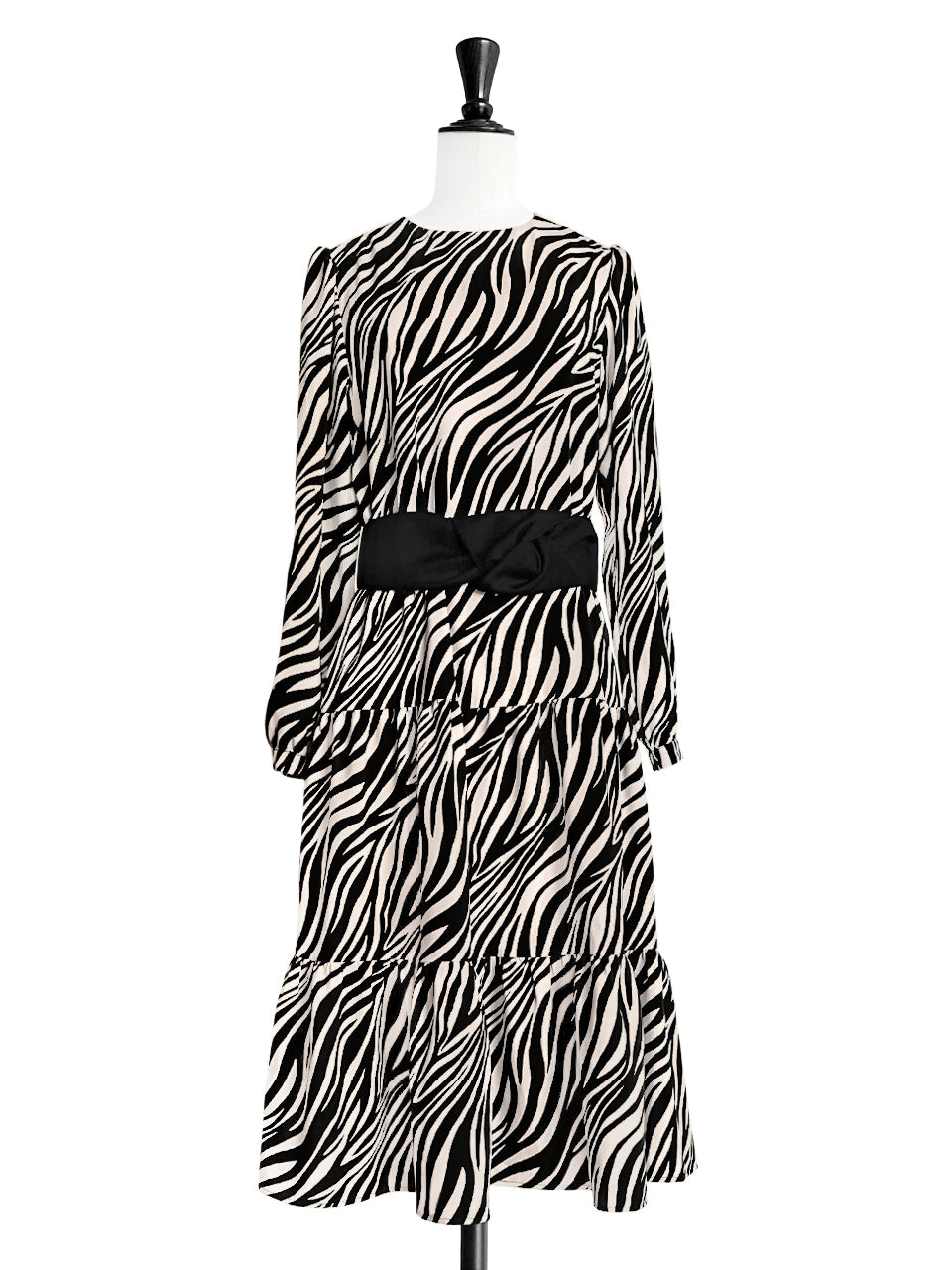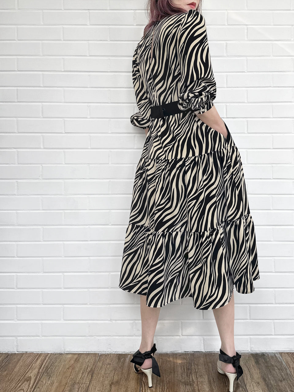 TYNVIE 配腰带蛋糕裙摆长袖连衣裙