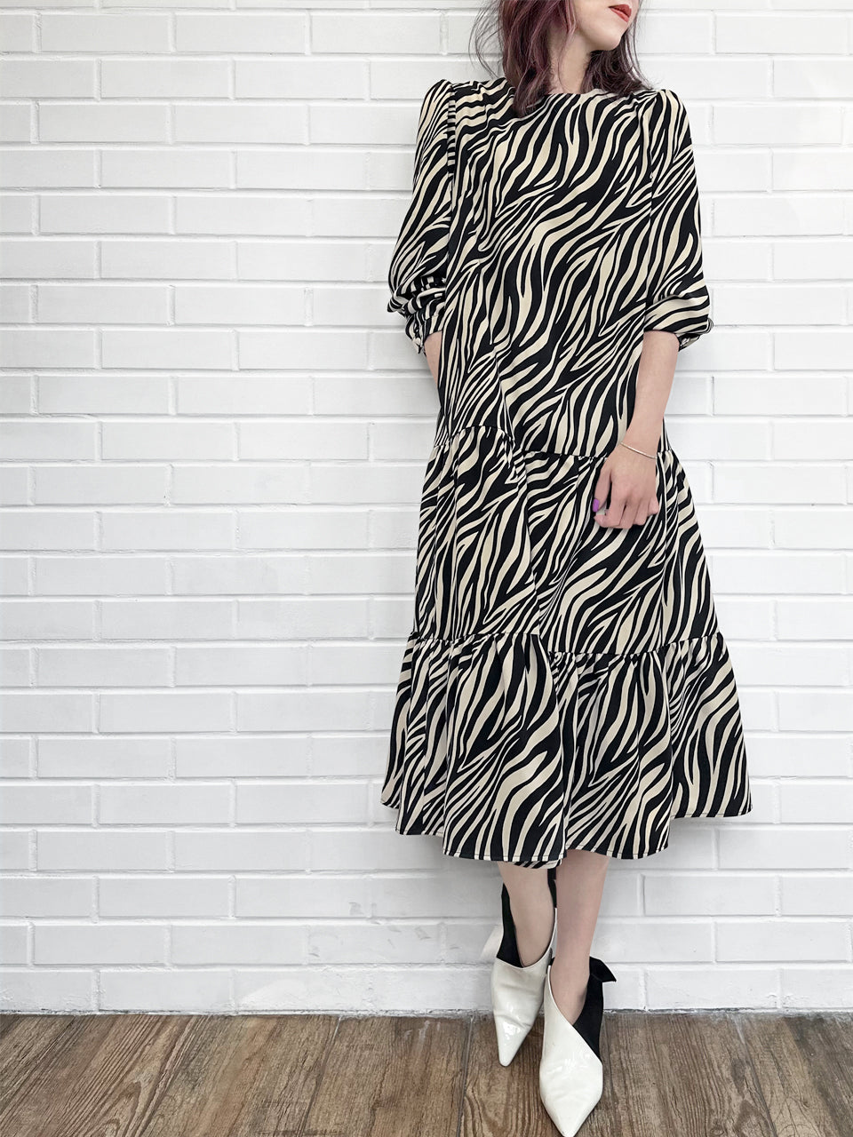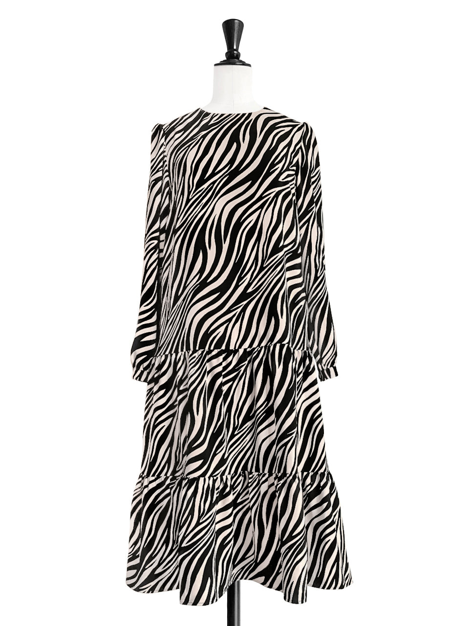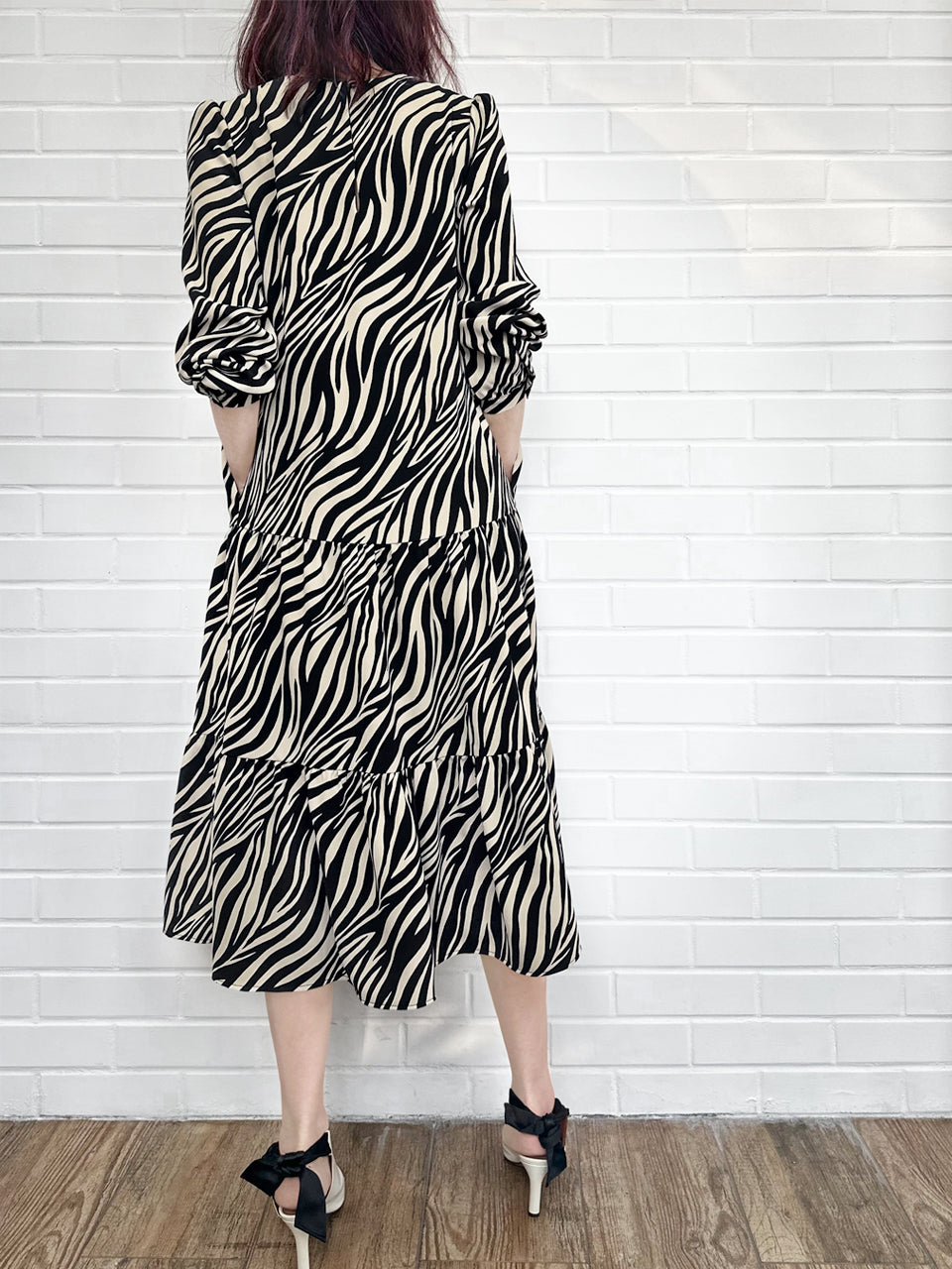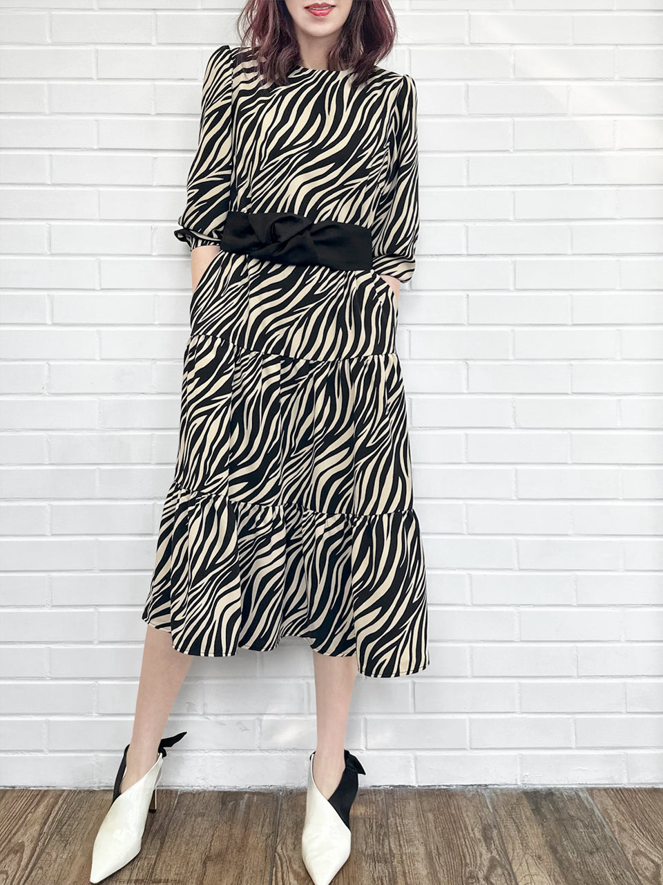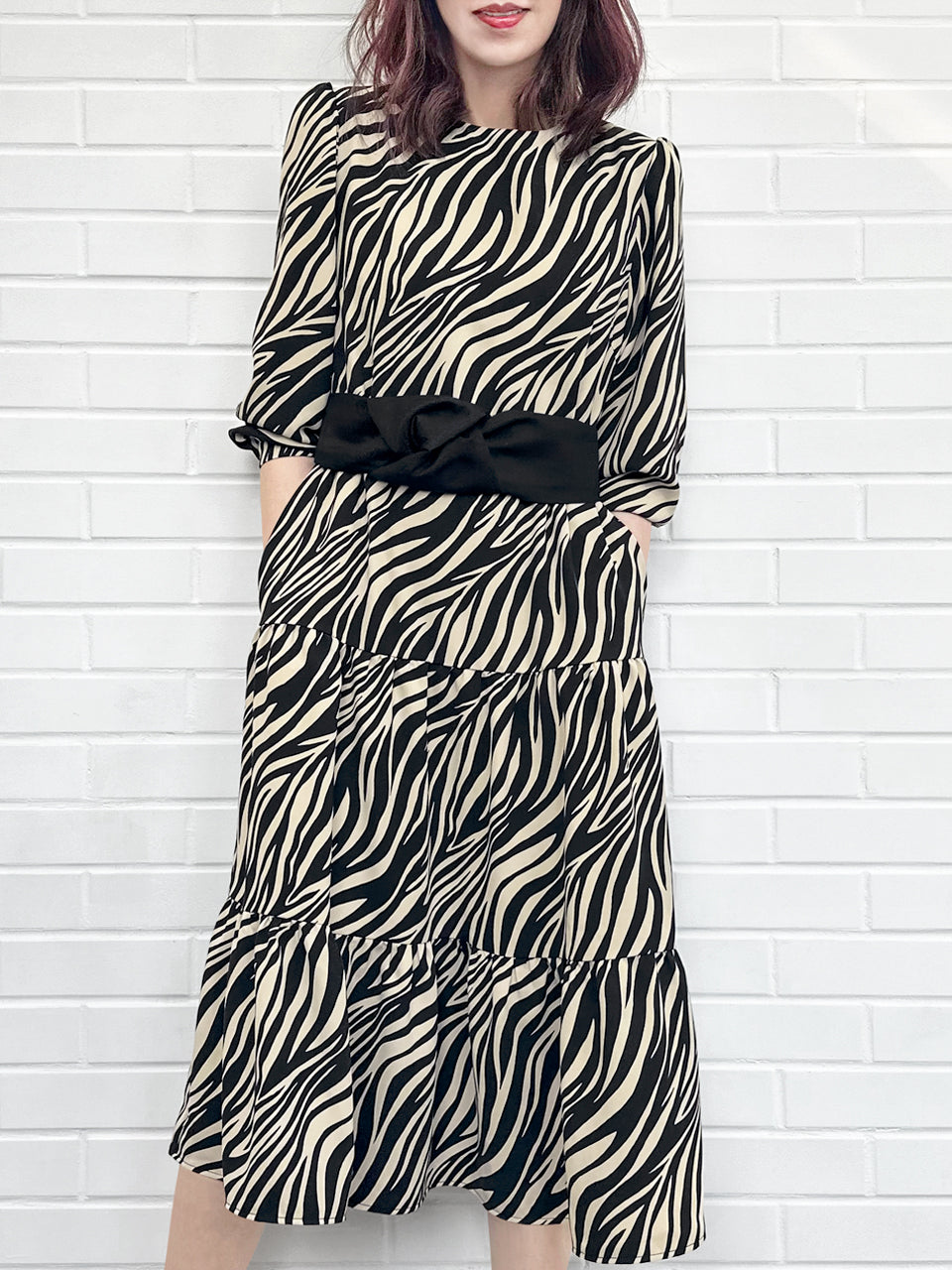 TYNVIE 配腰带蛋糕裙摆长袖连衣裙