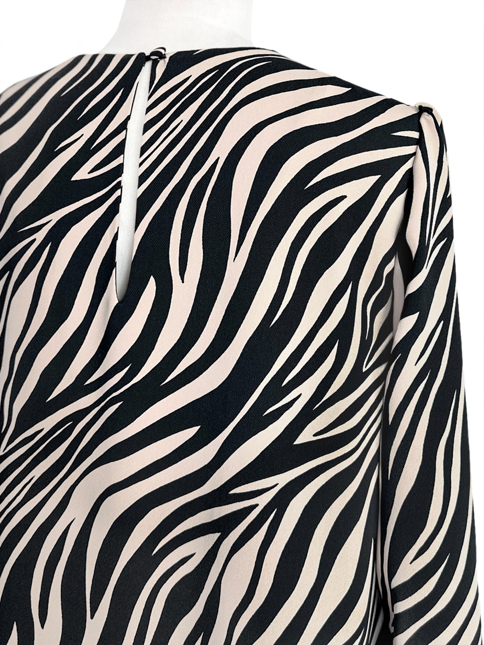 TYNVIE 百褶领喇叭袖口丝质衬衫-黑色条纹圆点