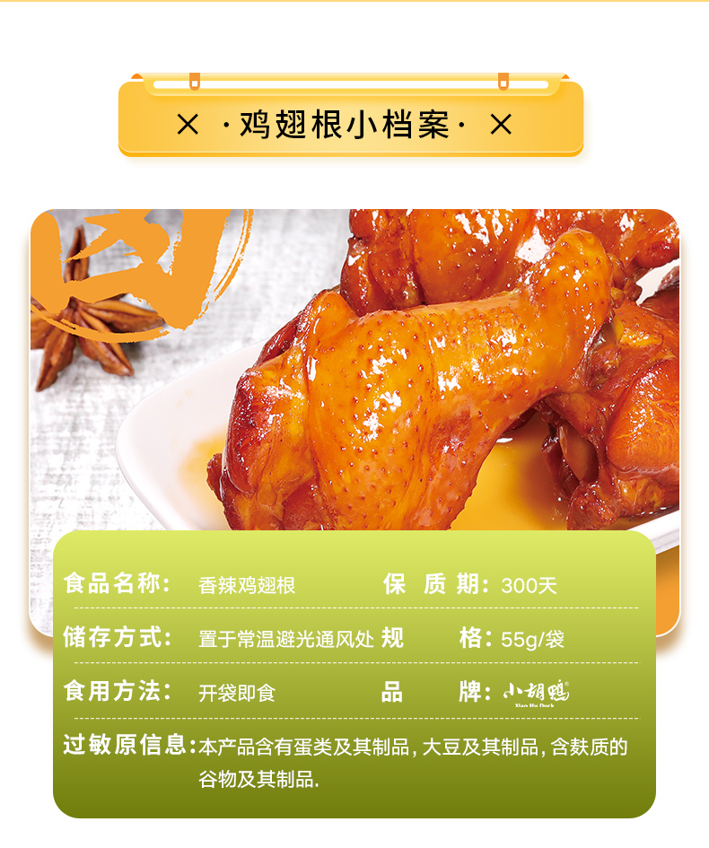 小胡鸭香辣味鸡翅根55g