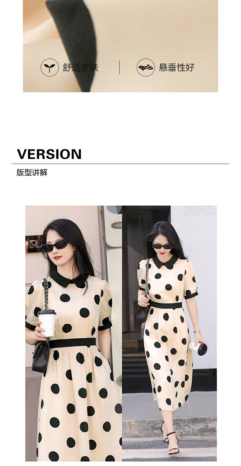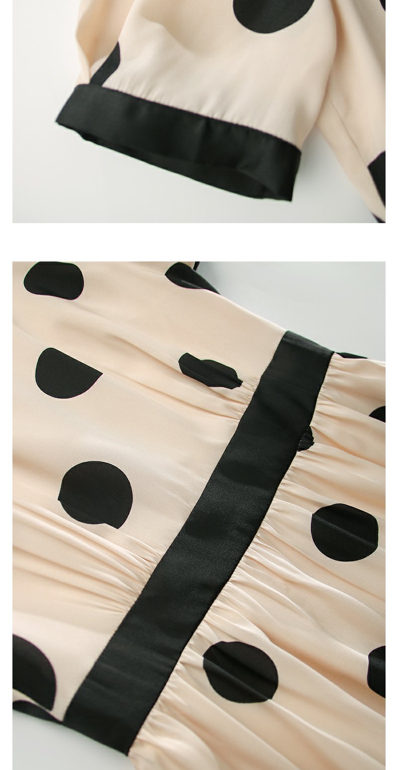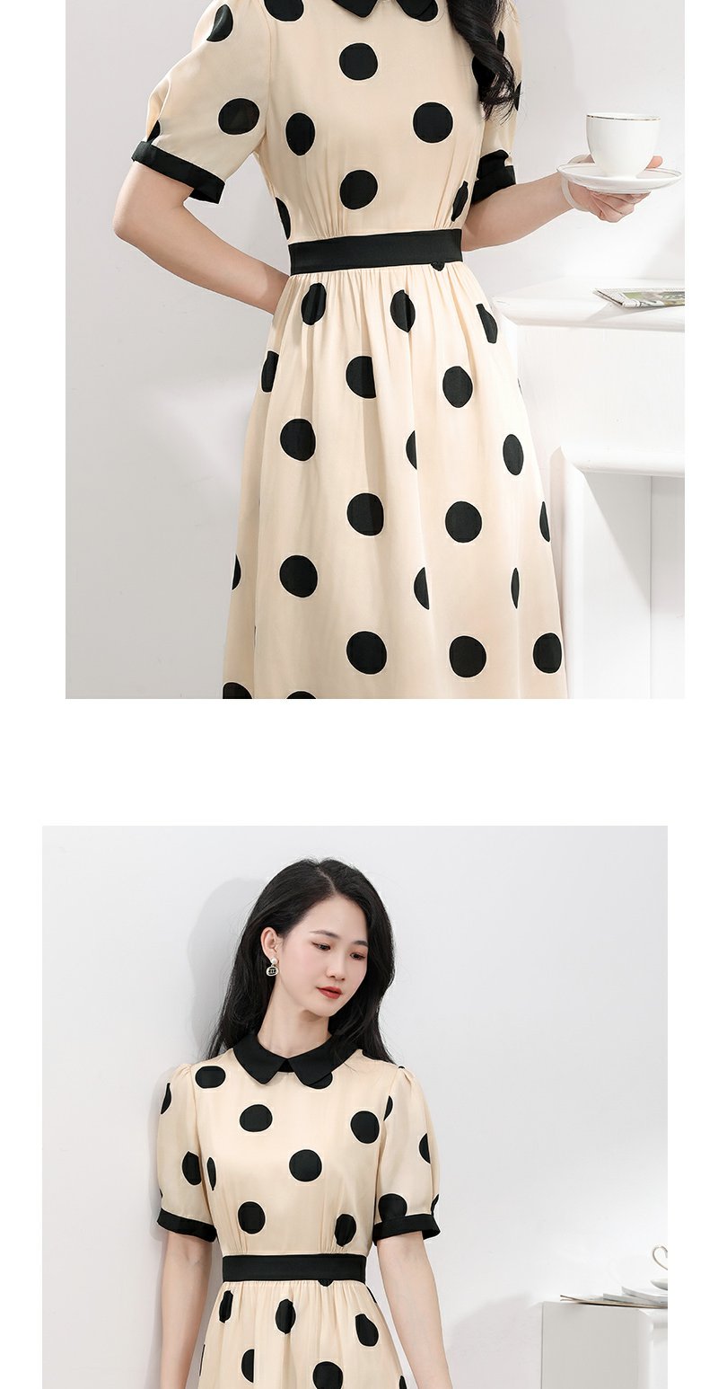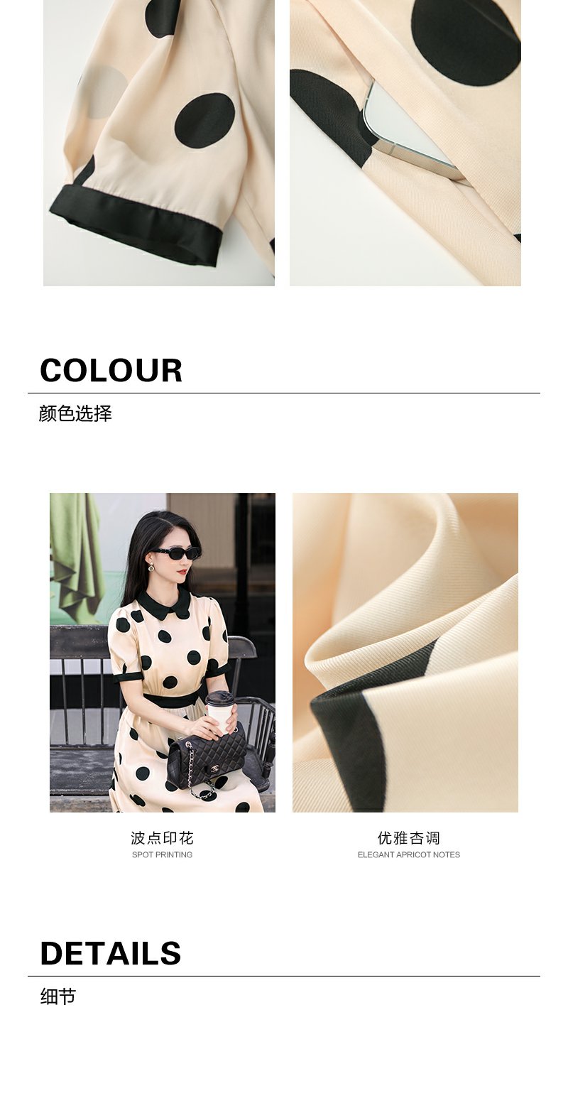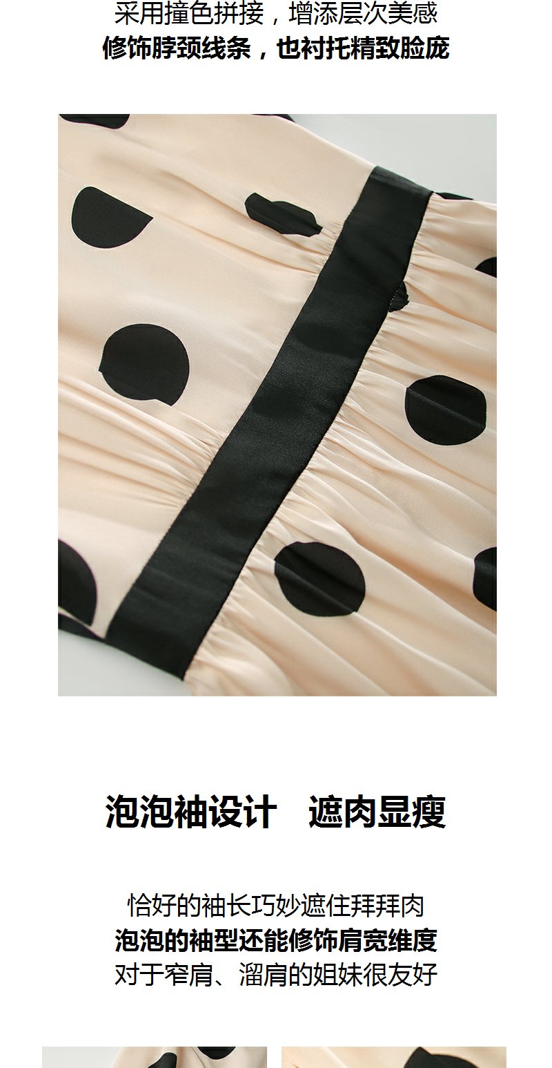 未风杏色泡泡袖连衣裙女夏装2025年夏季新款气质法式波点长款裙子