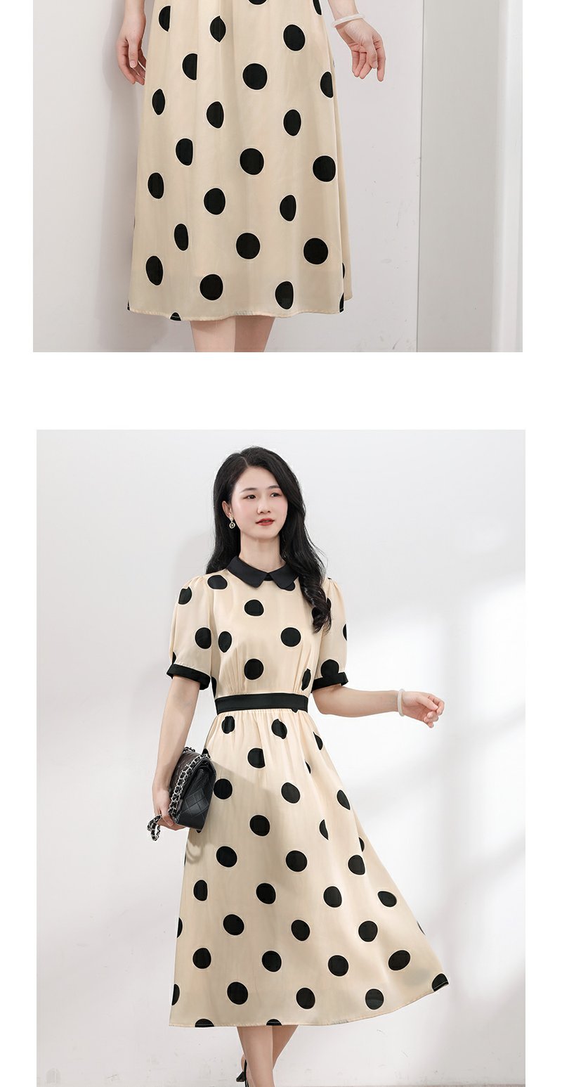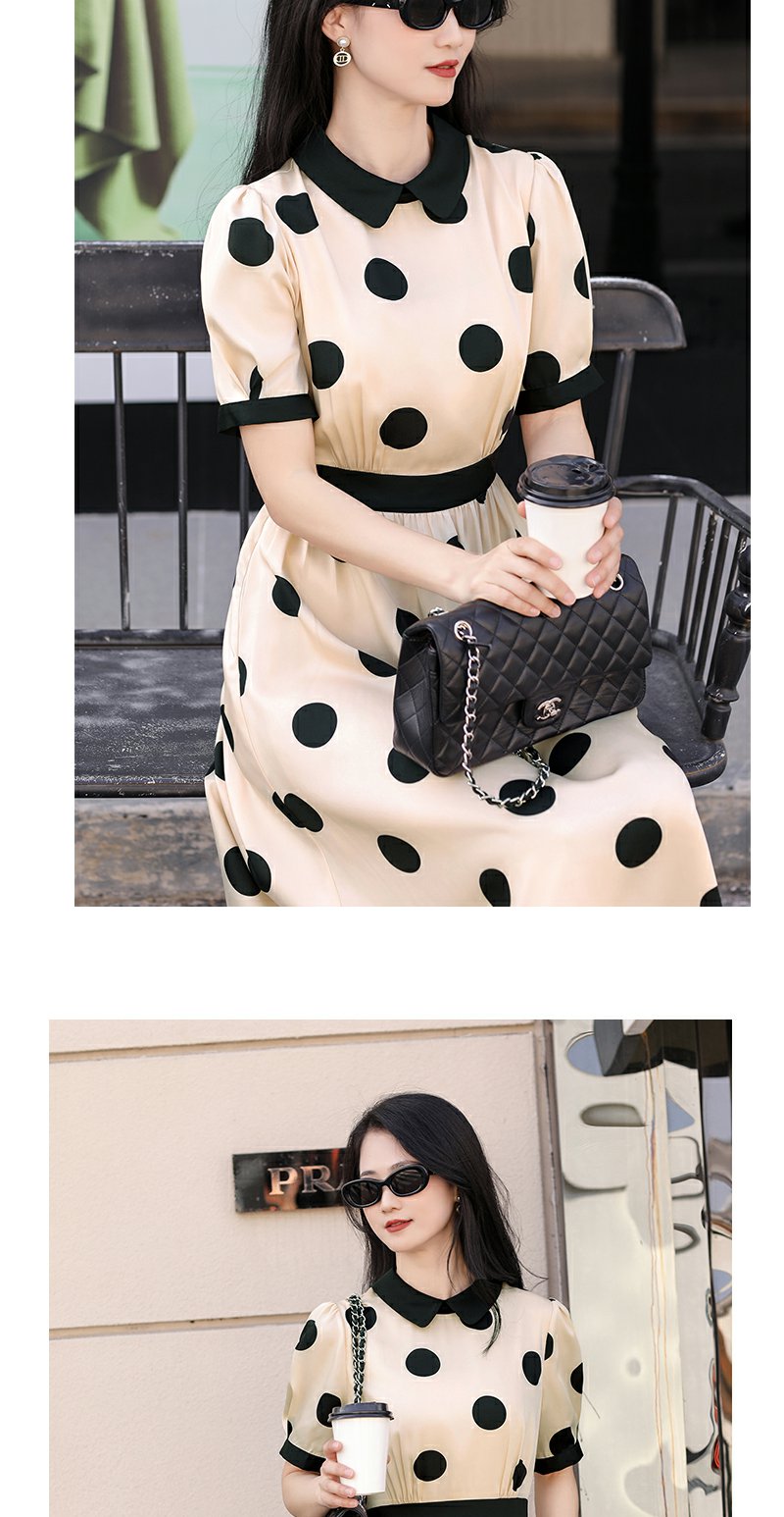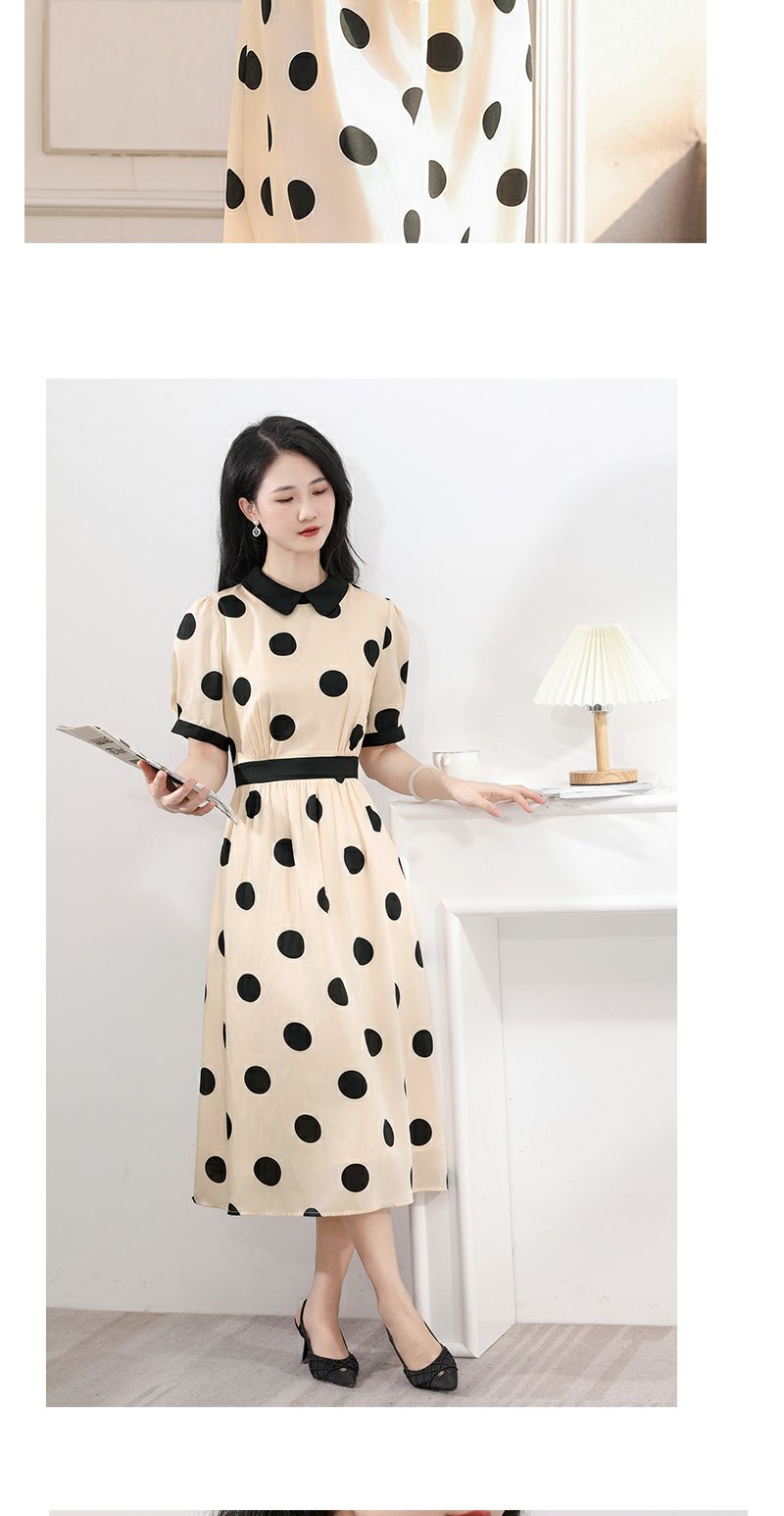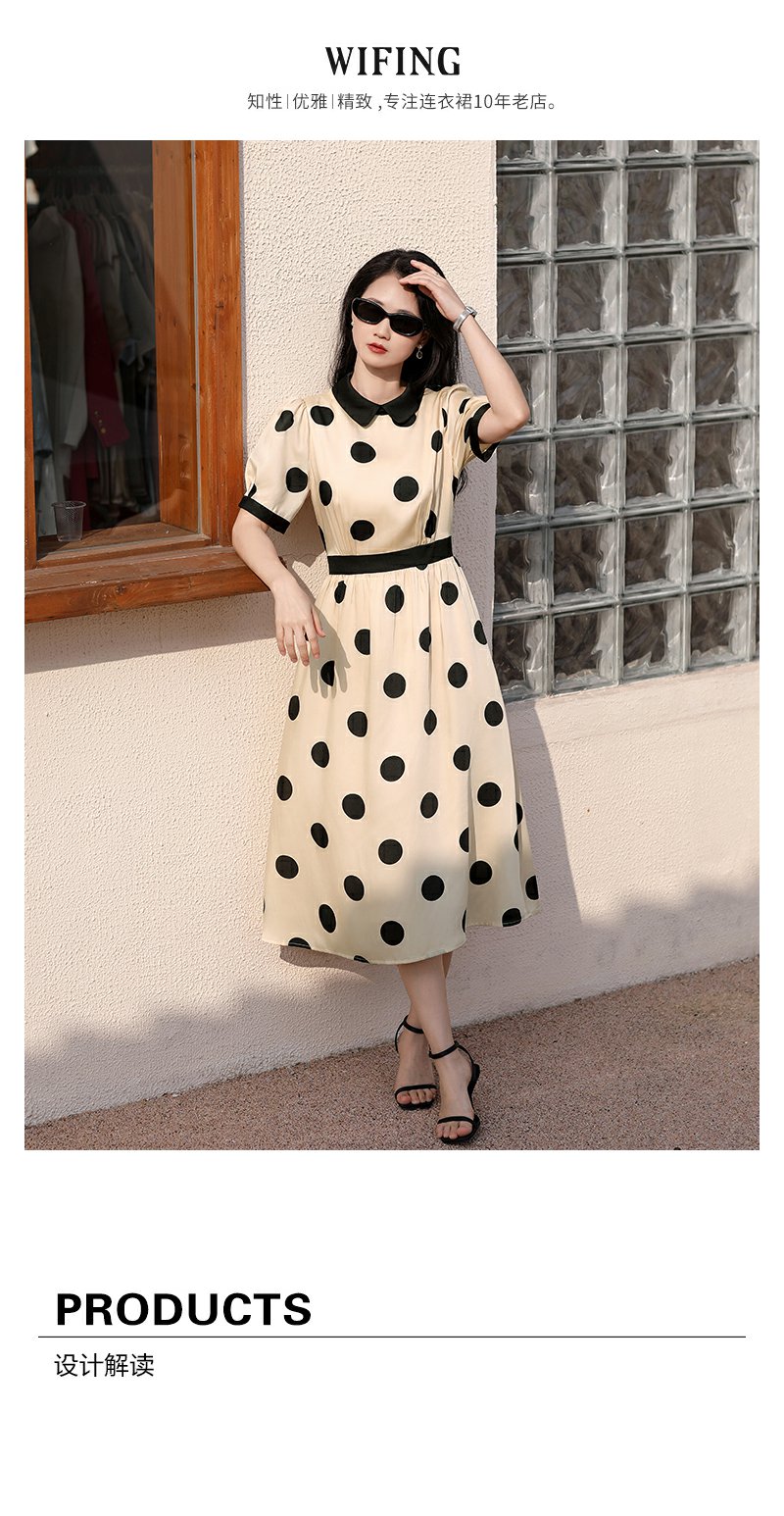 未风杏色泡泡袖连衣裙女夏装2025年夏季新款气质法式波点长款裙子