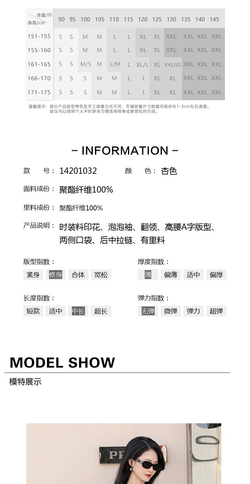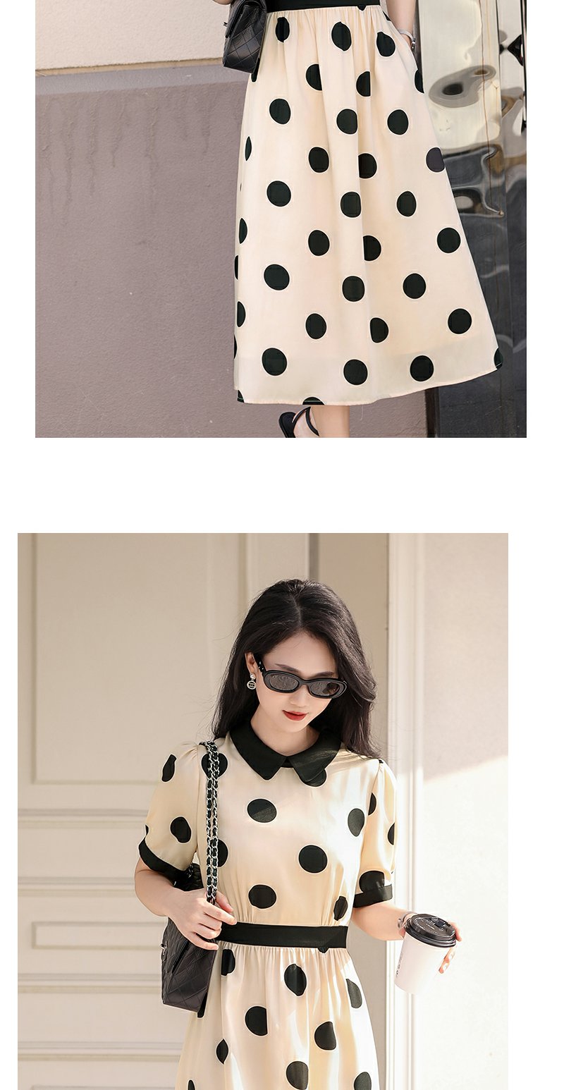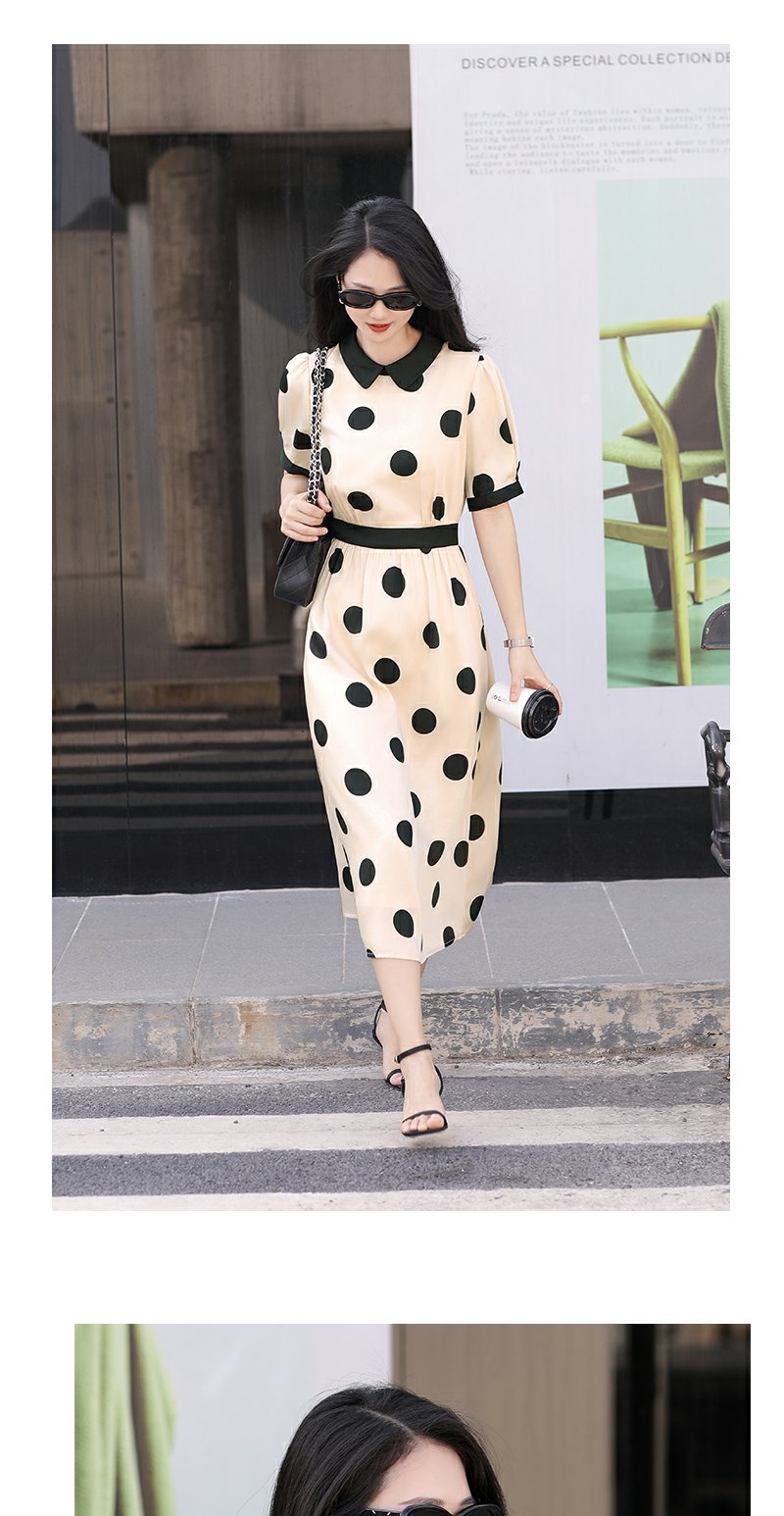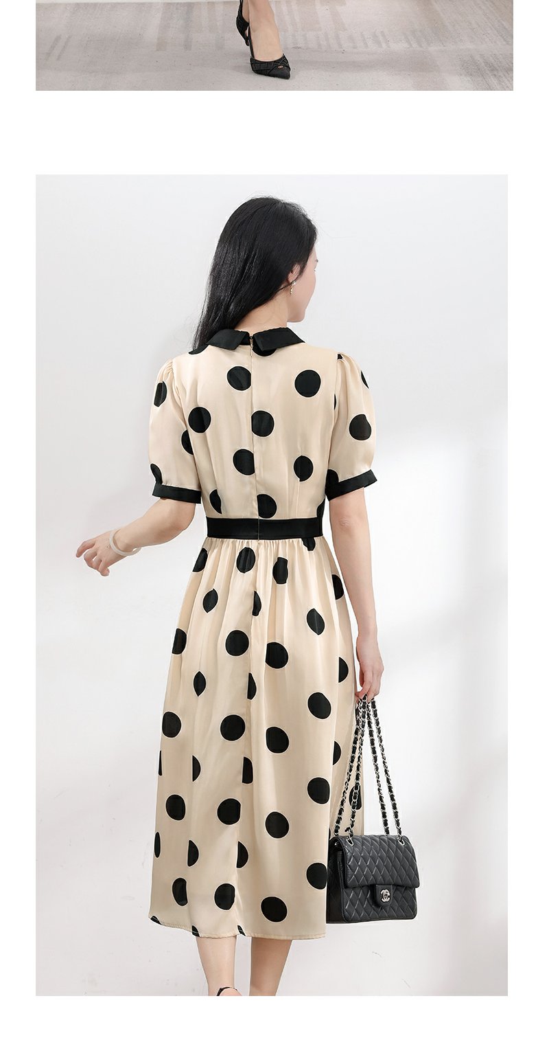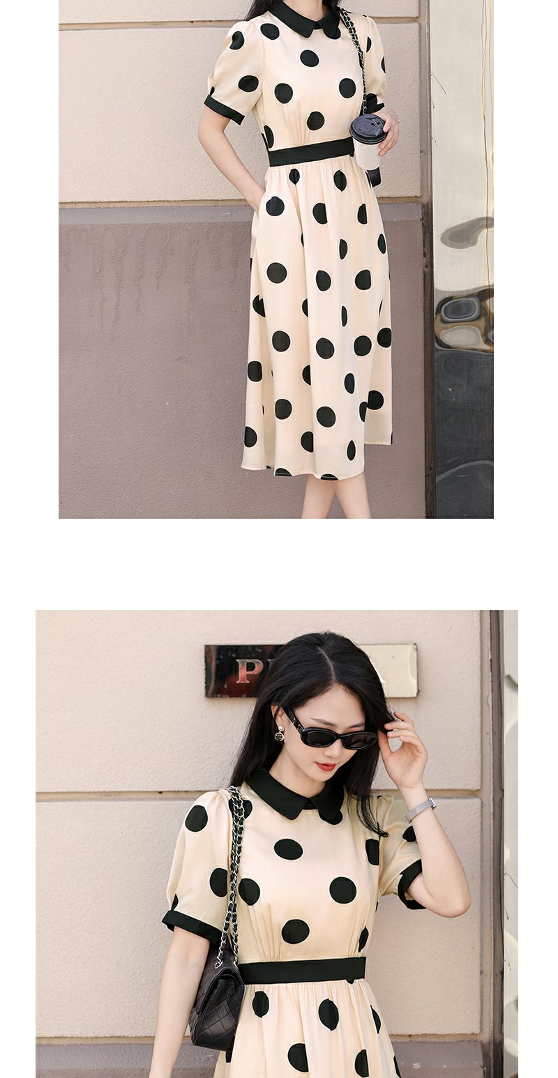 未风杏色泡泡袖连衣裙女夏装2025年夏季新款气质法式波点长款裙子