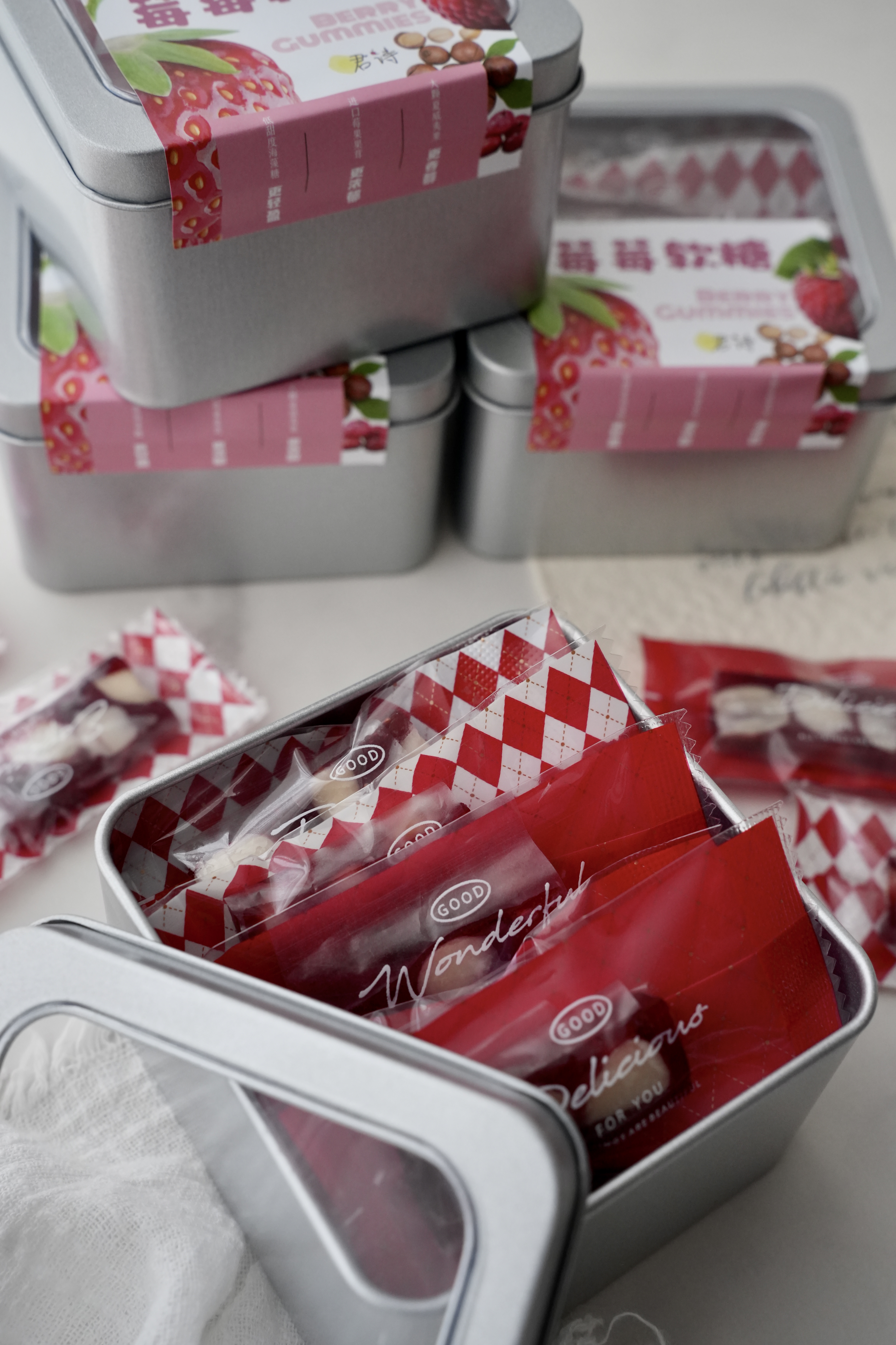 有位顾客买了一盒莓莓软糖回去给孩子吃,孩子说很喜欢。反正她也会做,就自己在网上买了需要的材料,不买不知道,一买吓一跳,一下就花了800多,然后她给我说:“我非常怀疑你卖38到底能不能赚钱。”