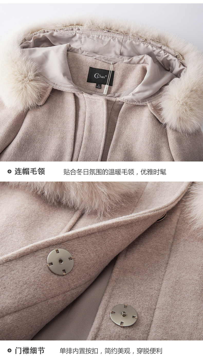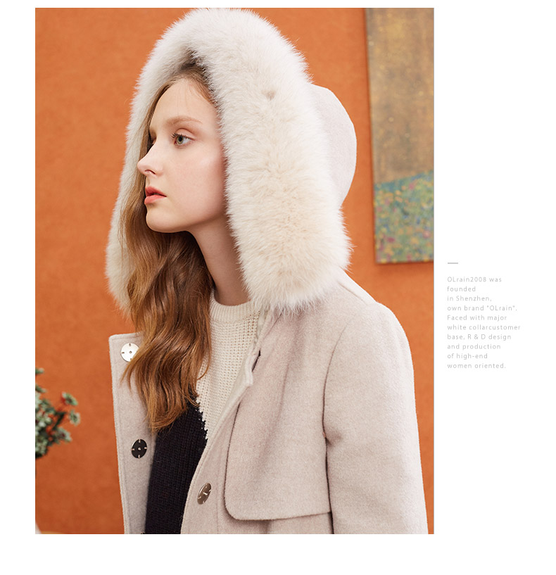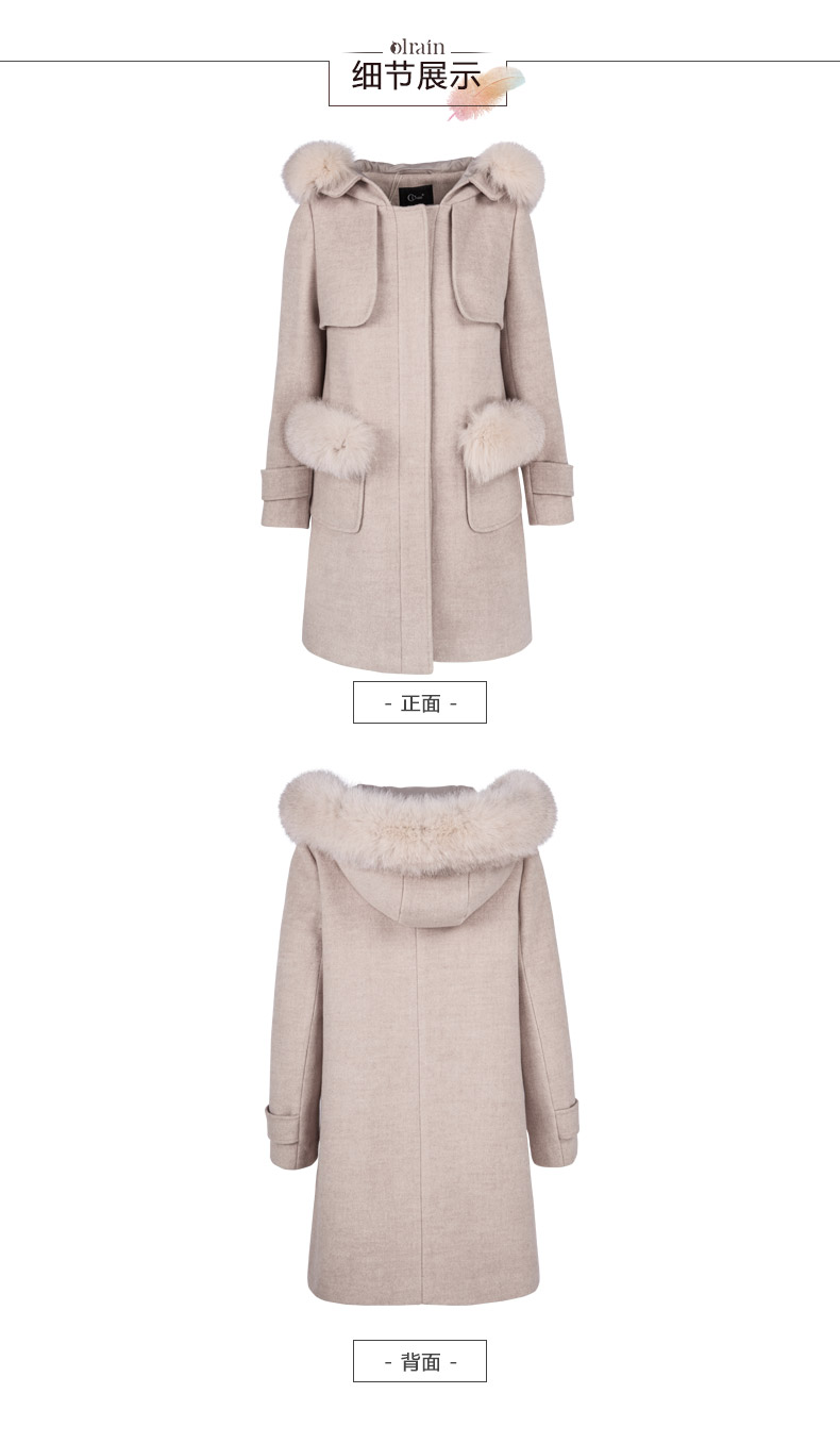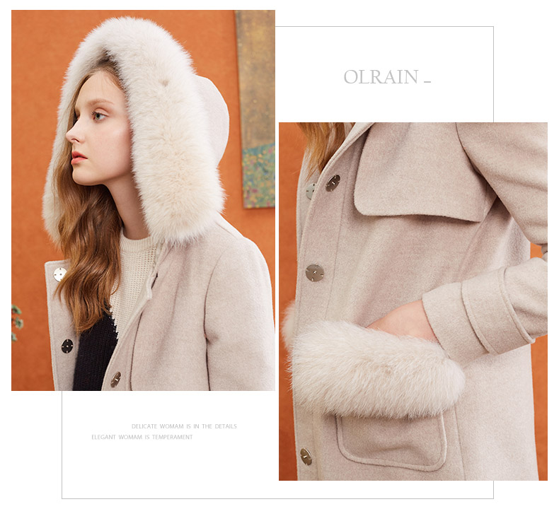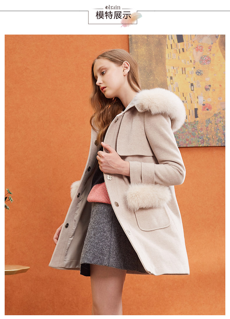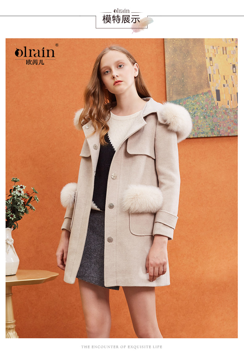 欧芮儿秋冬装女2018新款连帽毛领毛呢外套女中长款百搭呢大衣