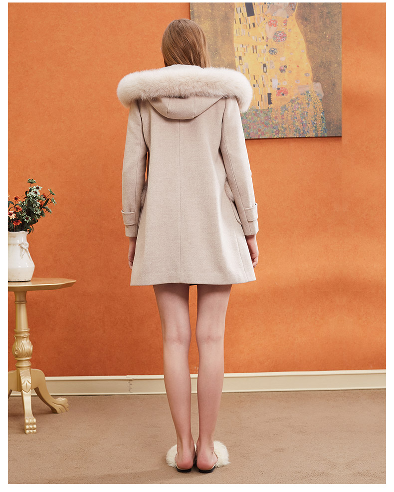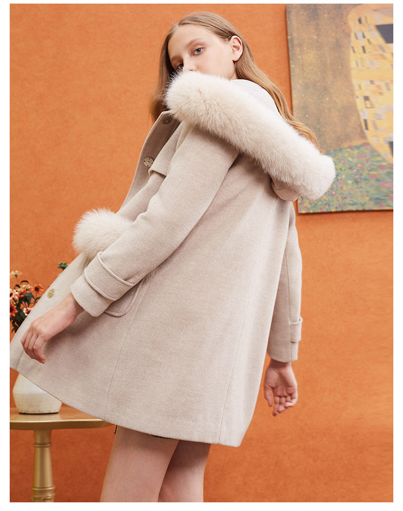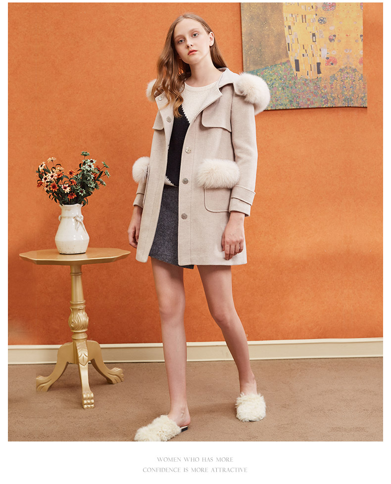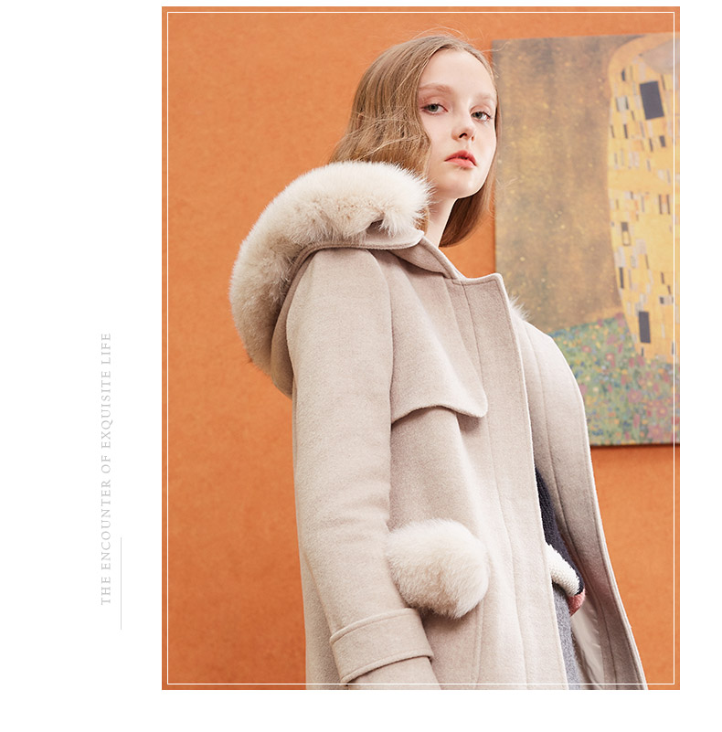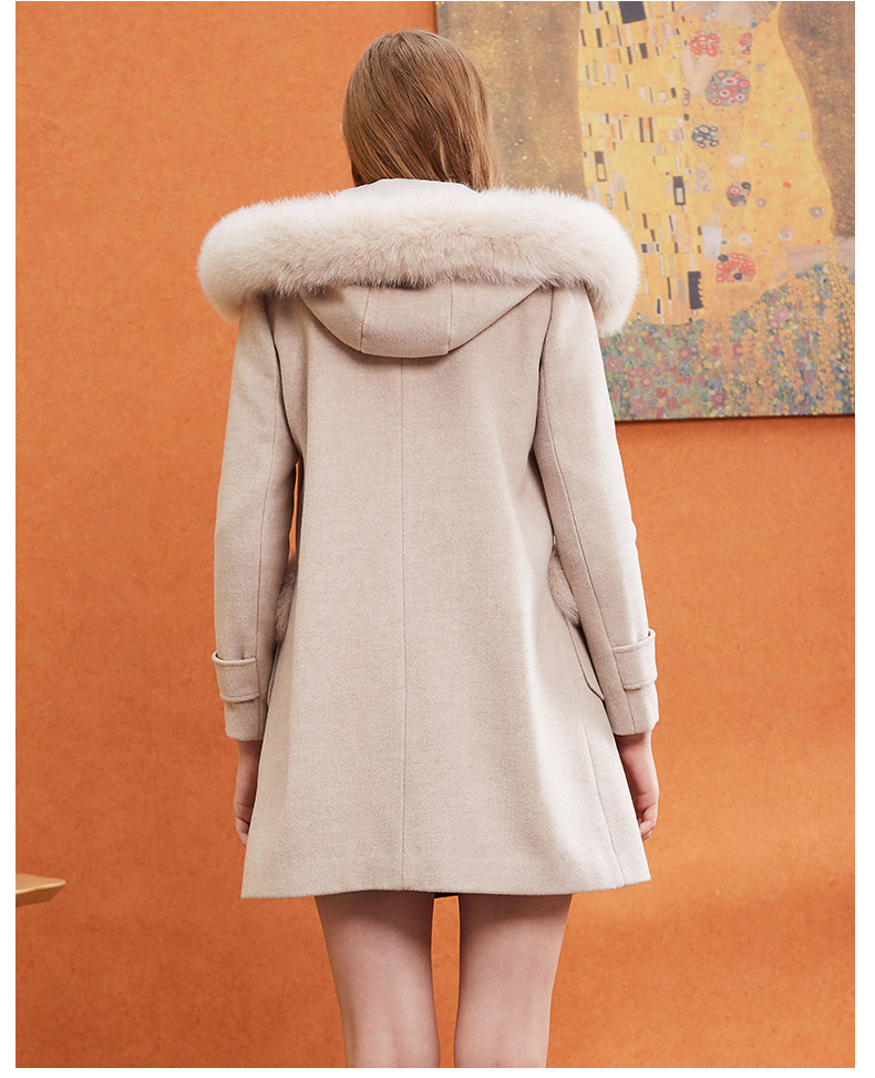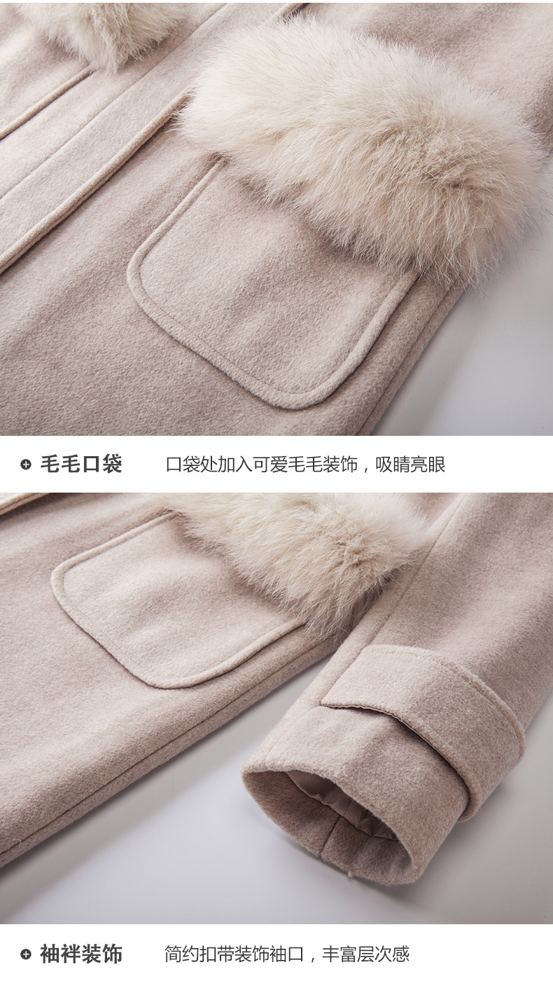 欧芮儿秋冬装女2018新款连帽毛领毛呢外套女中长款百搭呢大衣