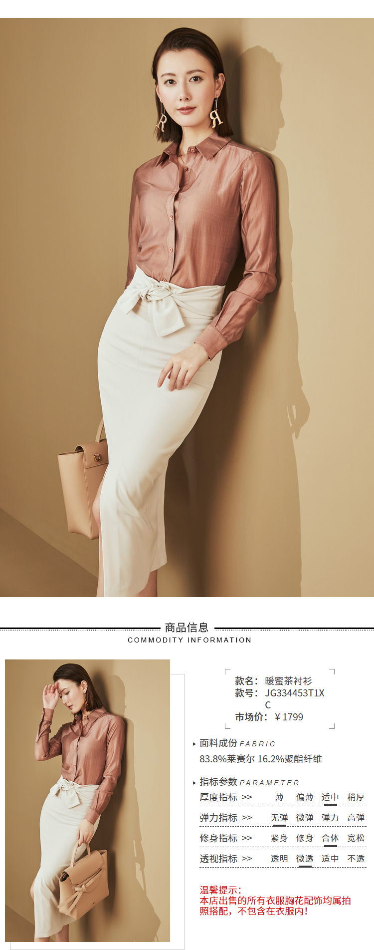 JG334453T1XC “咖啡时光”纱棕色莱赛尔衬衫 高级小众 显肤白 透气舒适(四季可穿)颈袖添香
