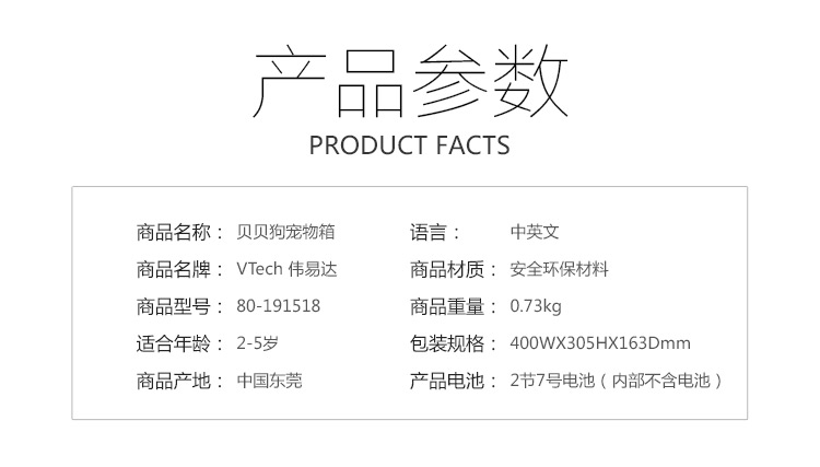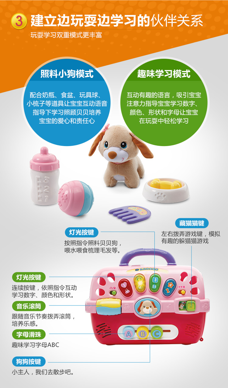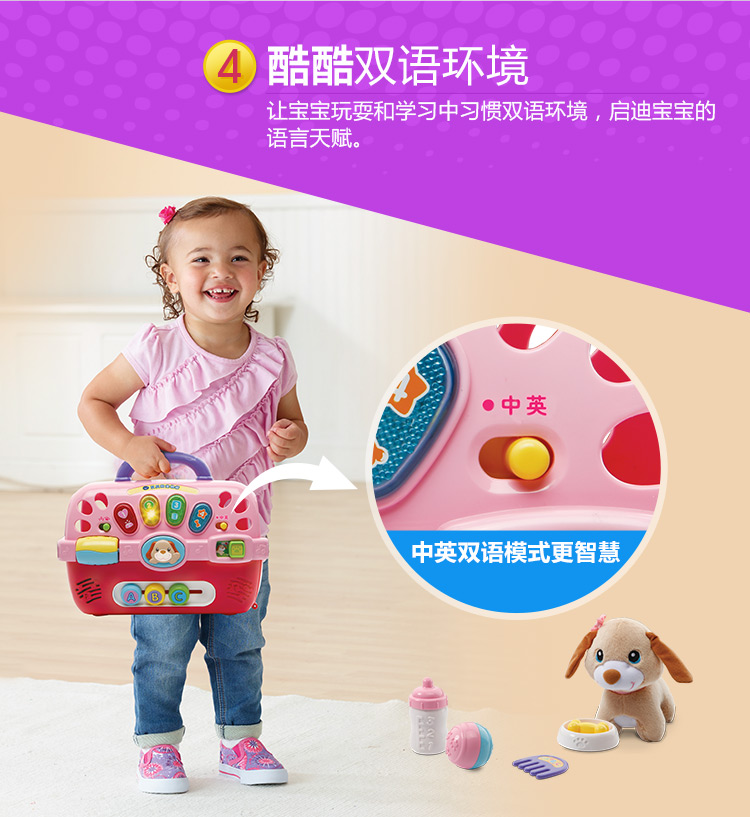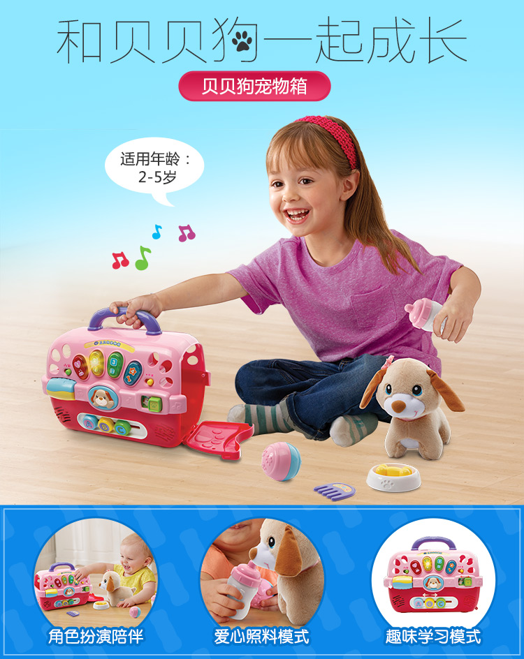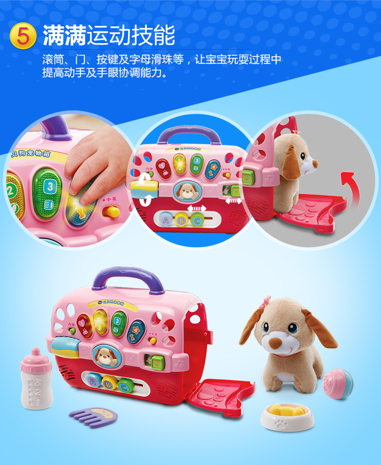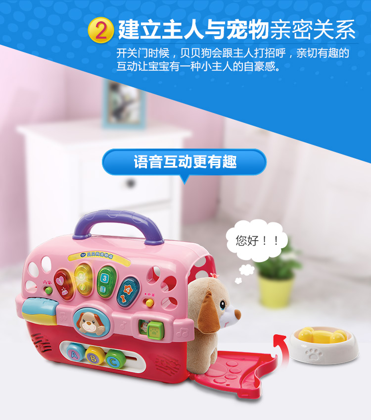 VTech伟易达贝贝狗宠物箱 过家家玩具女孩 仿真动物小狗狗-【玩具】