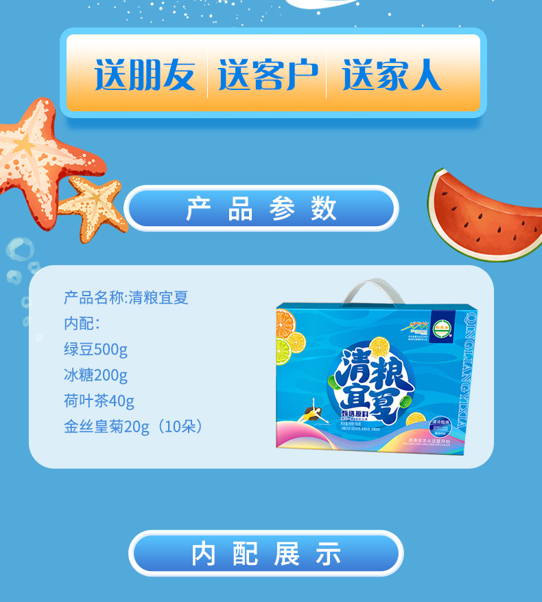 「清粮宜夏~礼盒装」清凉夏日杂粮礼盒 绿豆冰糖荷叶茶金丝皇菊装清凉组合粮油米面
