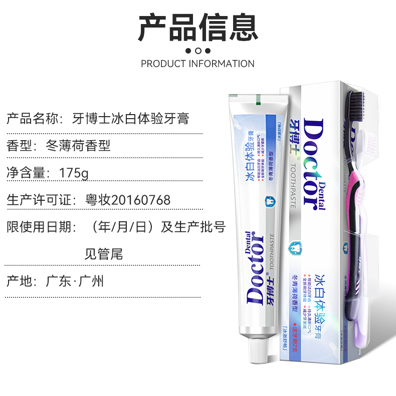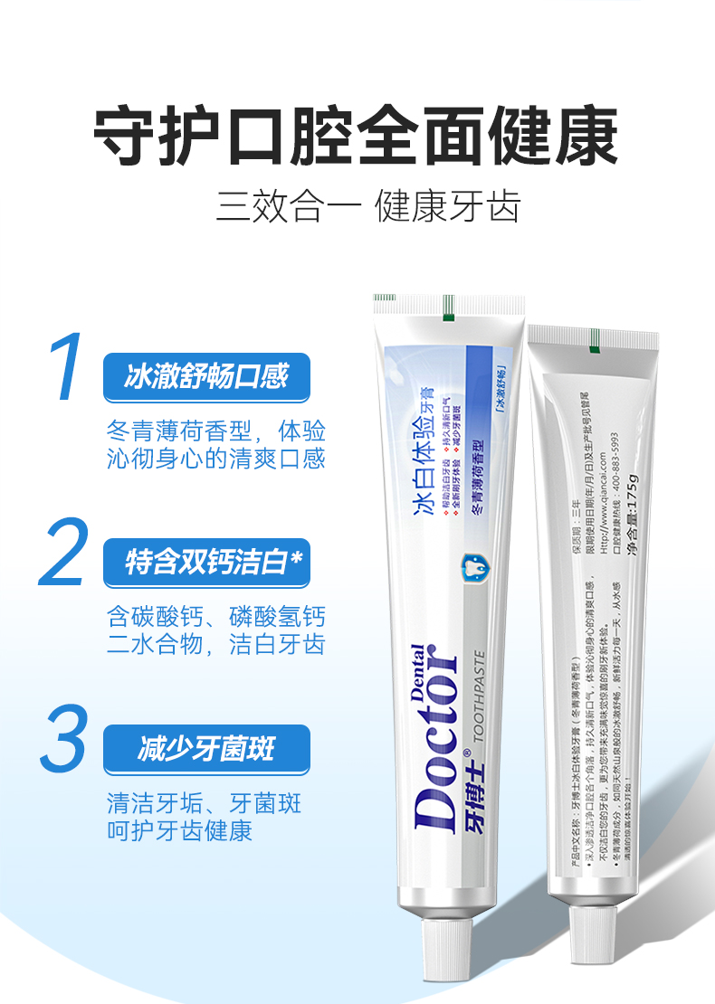 牙博士冰白体验牙膏(175g+2支牙刷)*3组