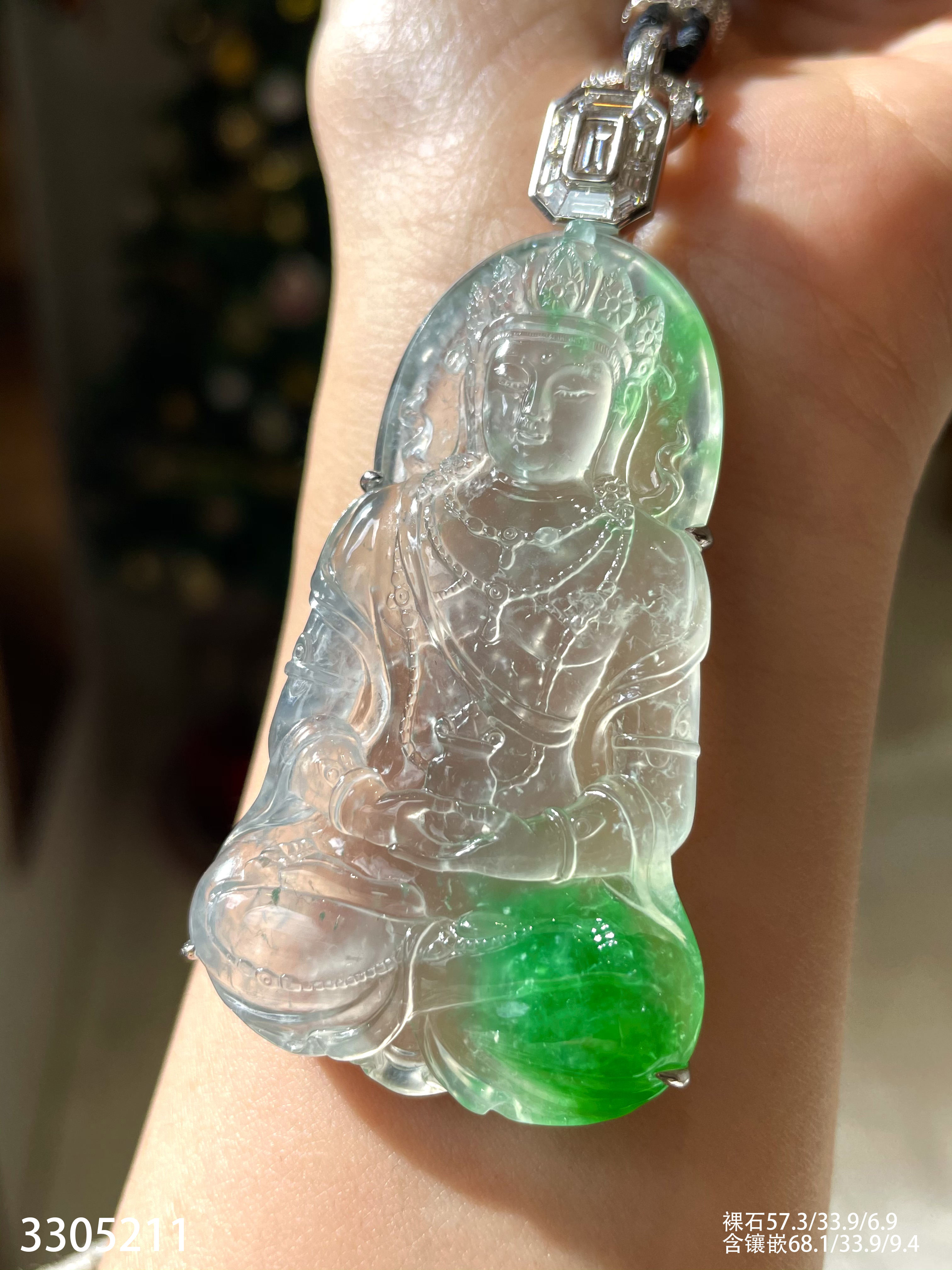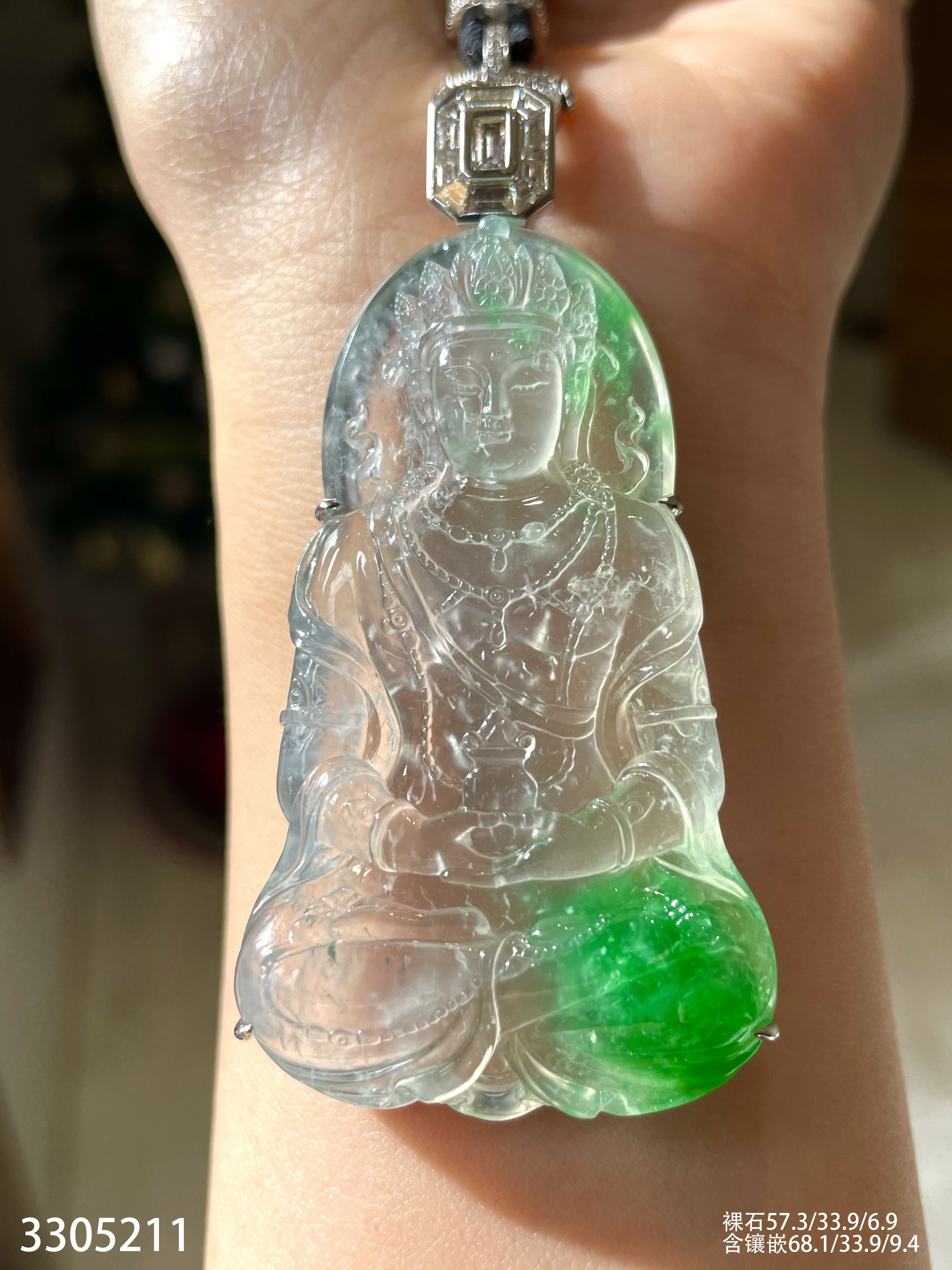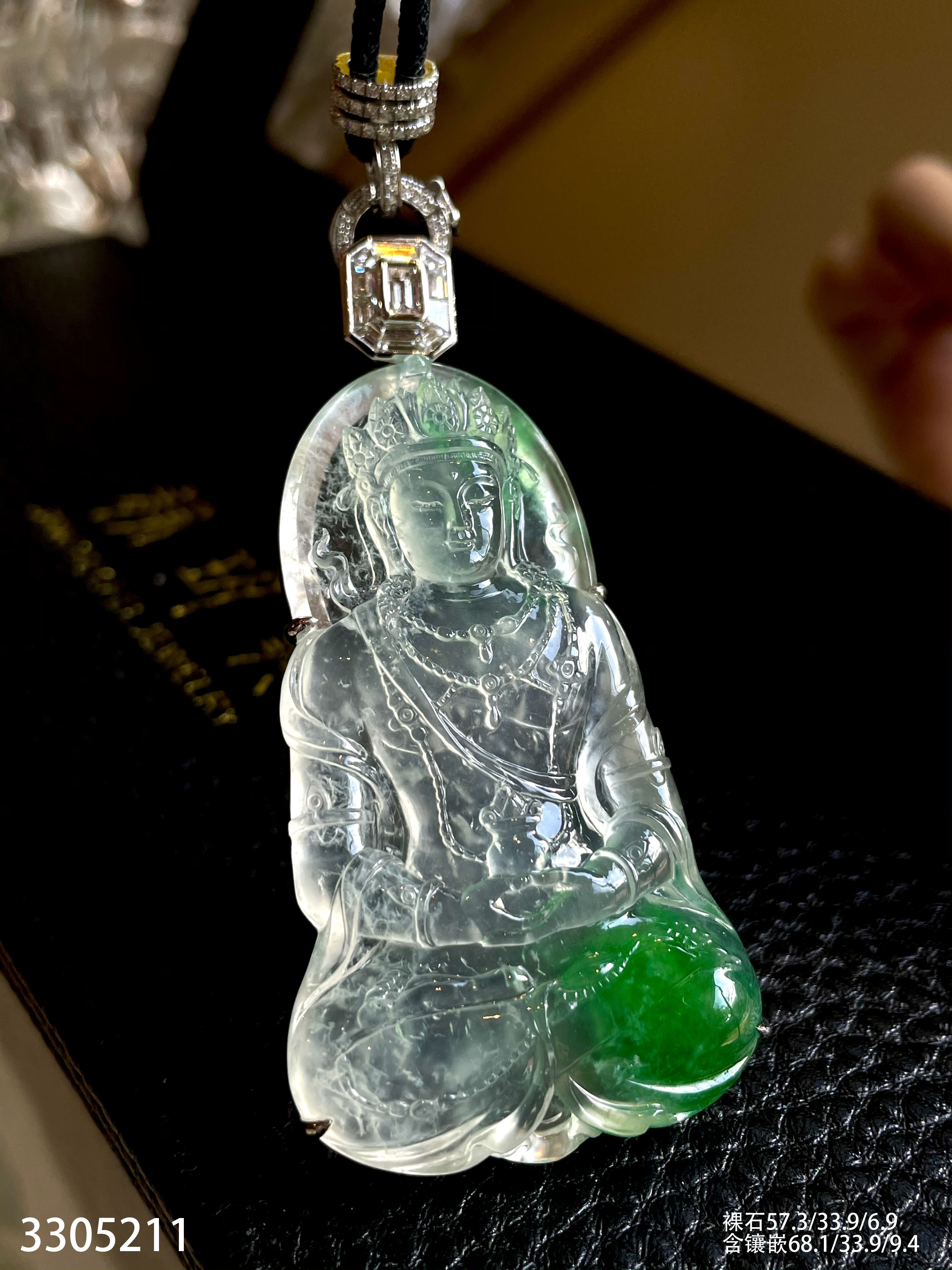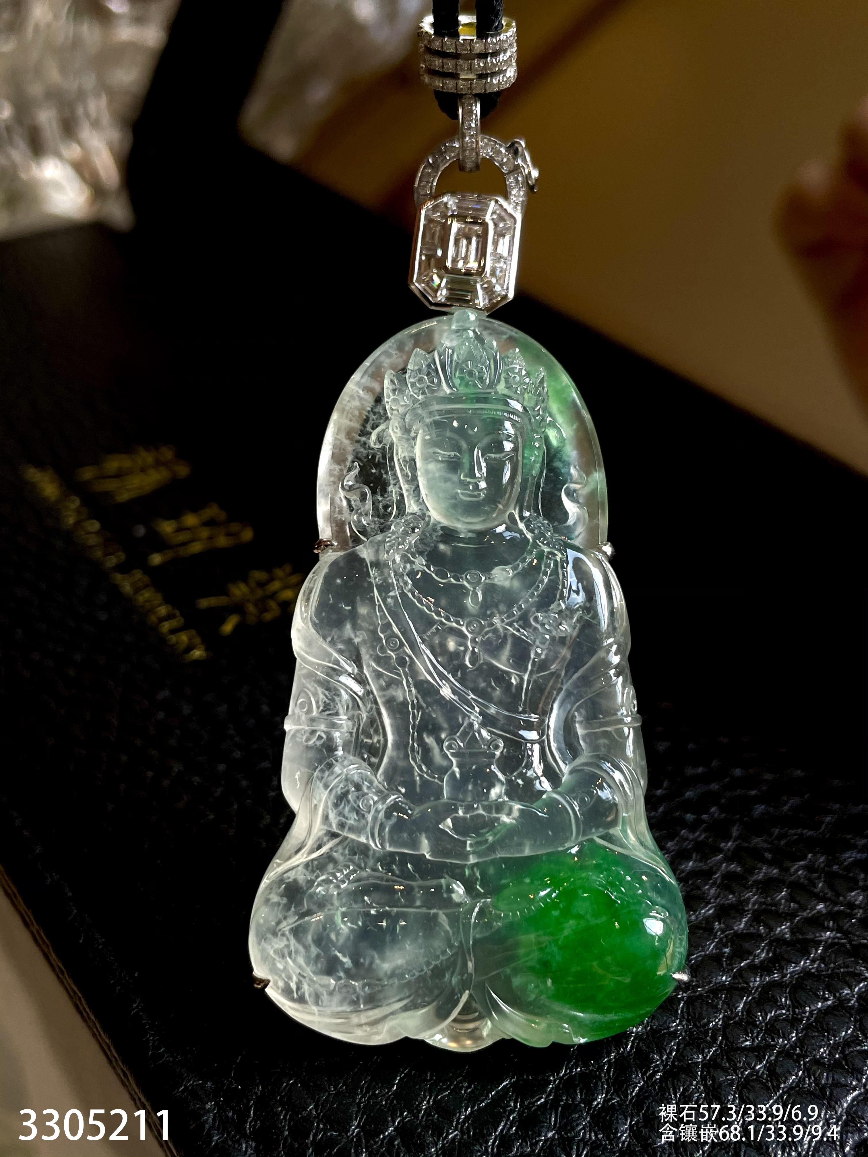 玻璃种飘翠度母吊坠【3305211】具体价格微信咨询