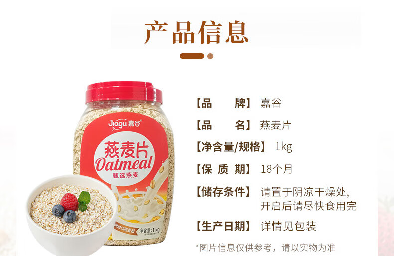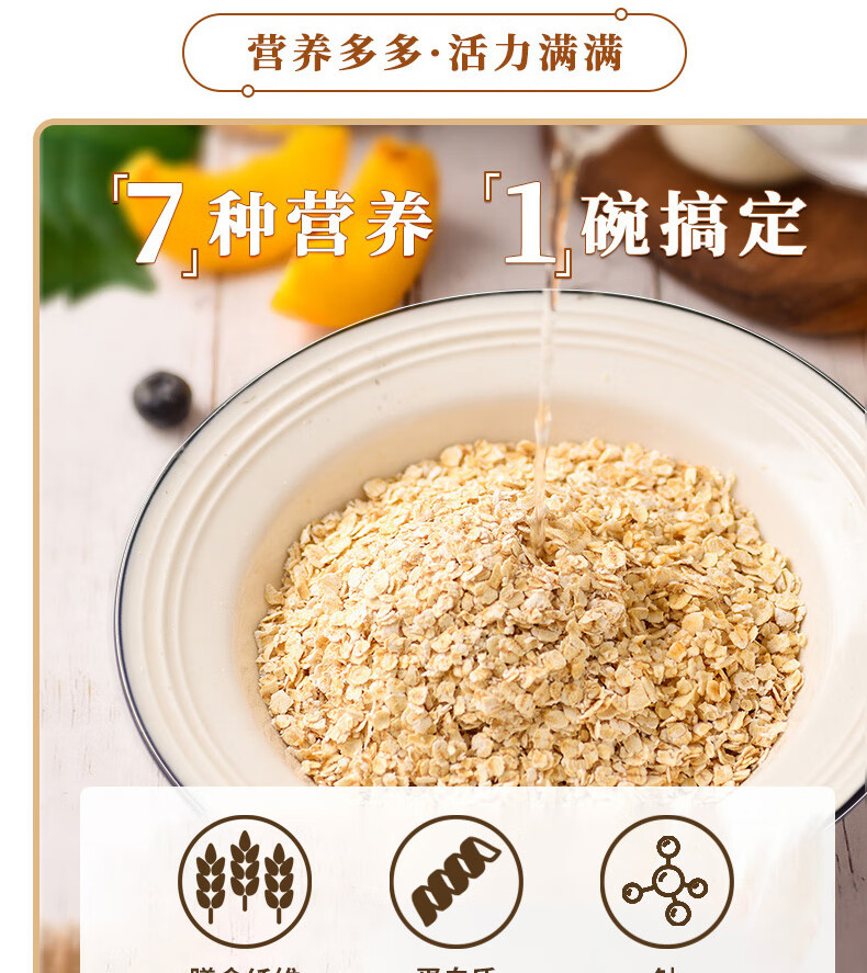 嘉谷甄选即食燕麦片1000g 冲饮谷物 即食代餐营养早餐纯燕麦 【保质期至24年4月】1000g罐装