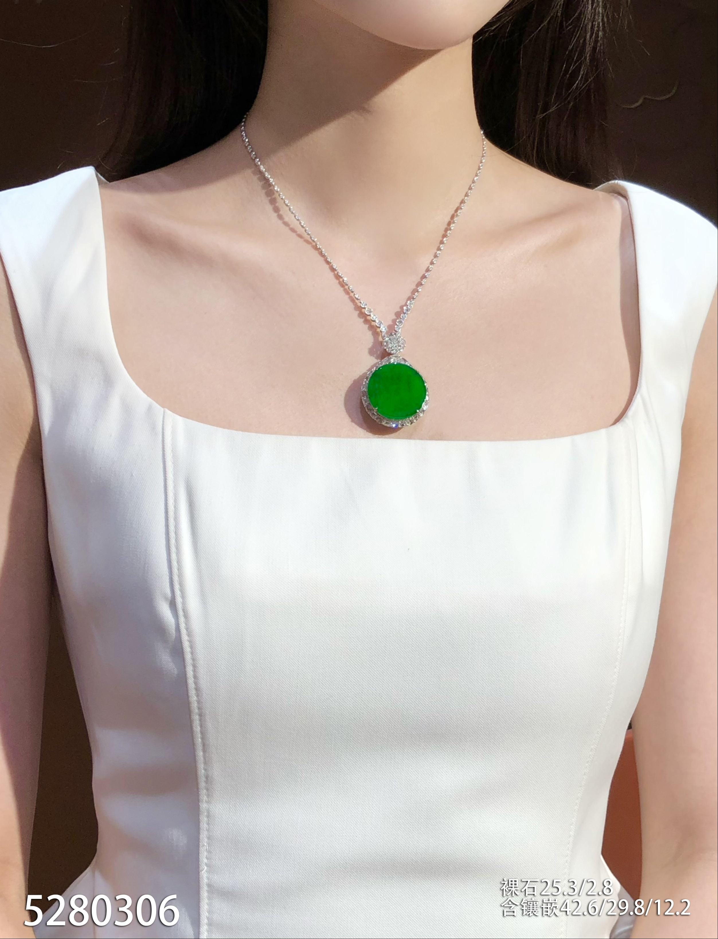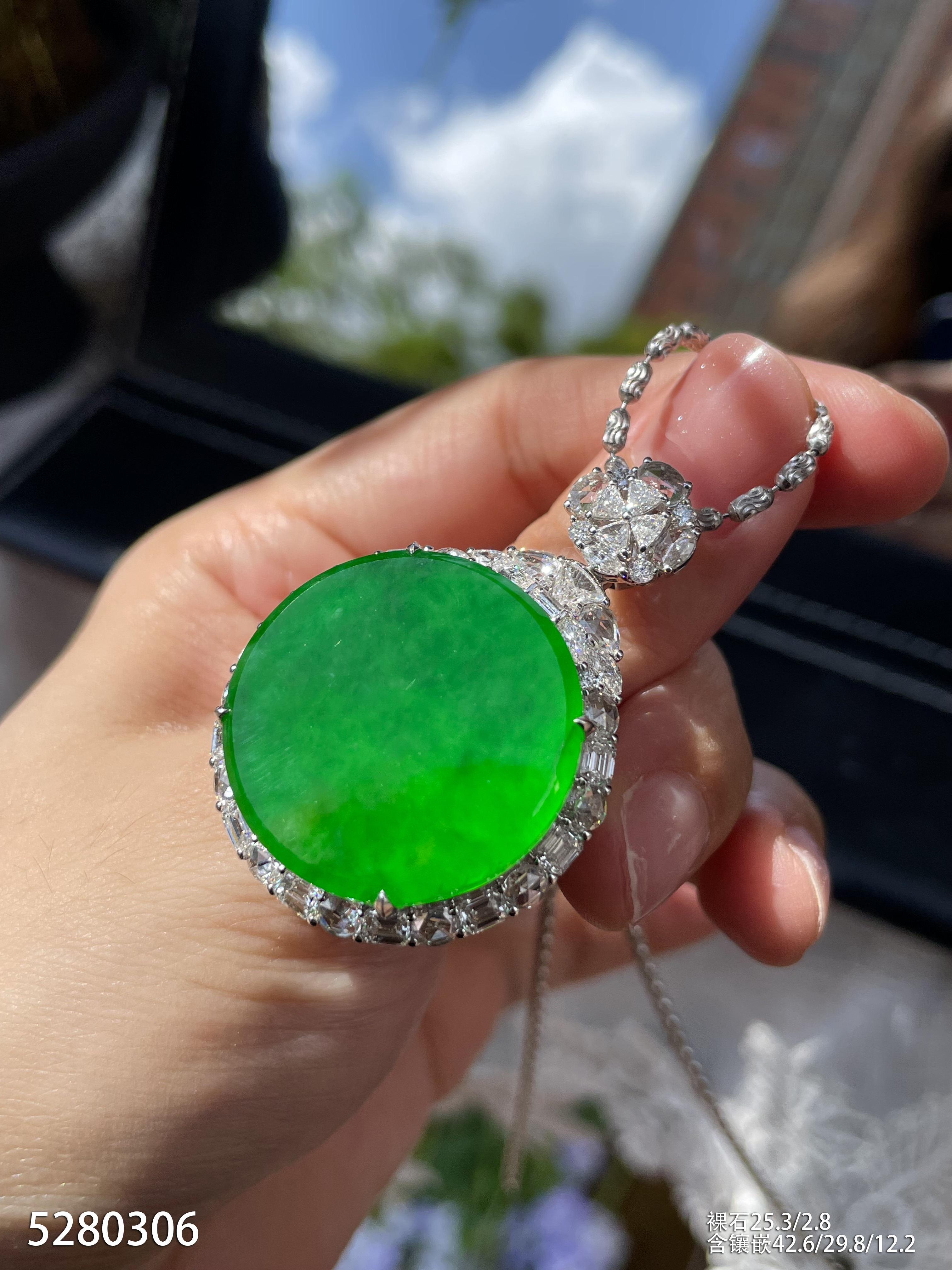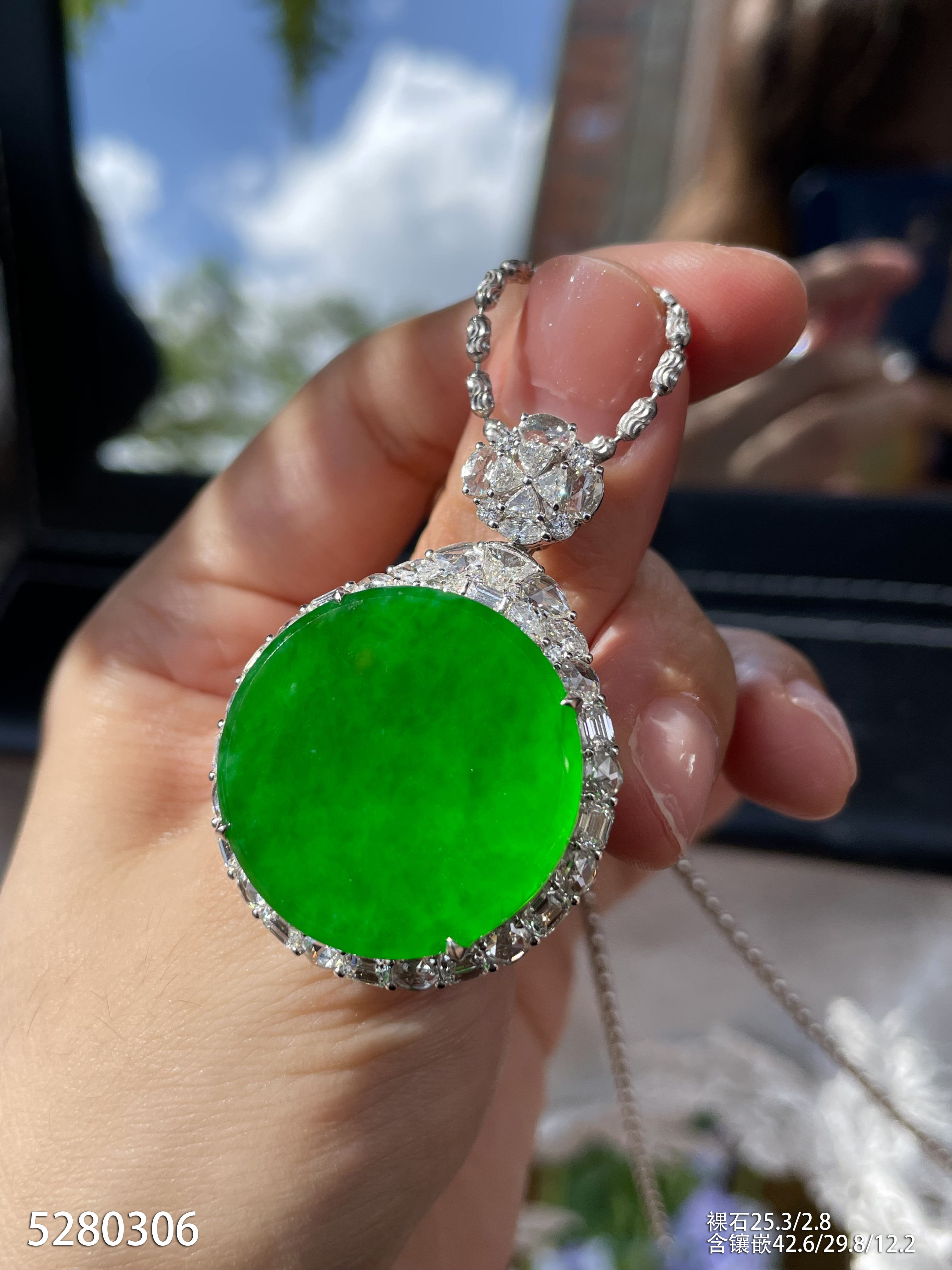 老坑艳绿圆牌吊坠【5280306】具体价格微信咨询