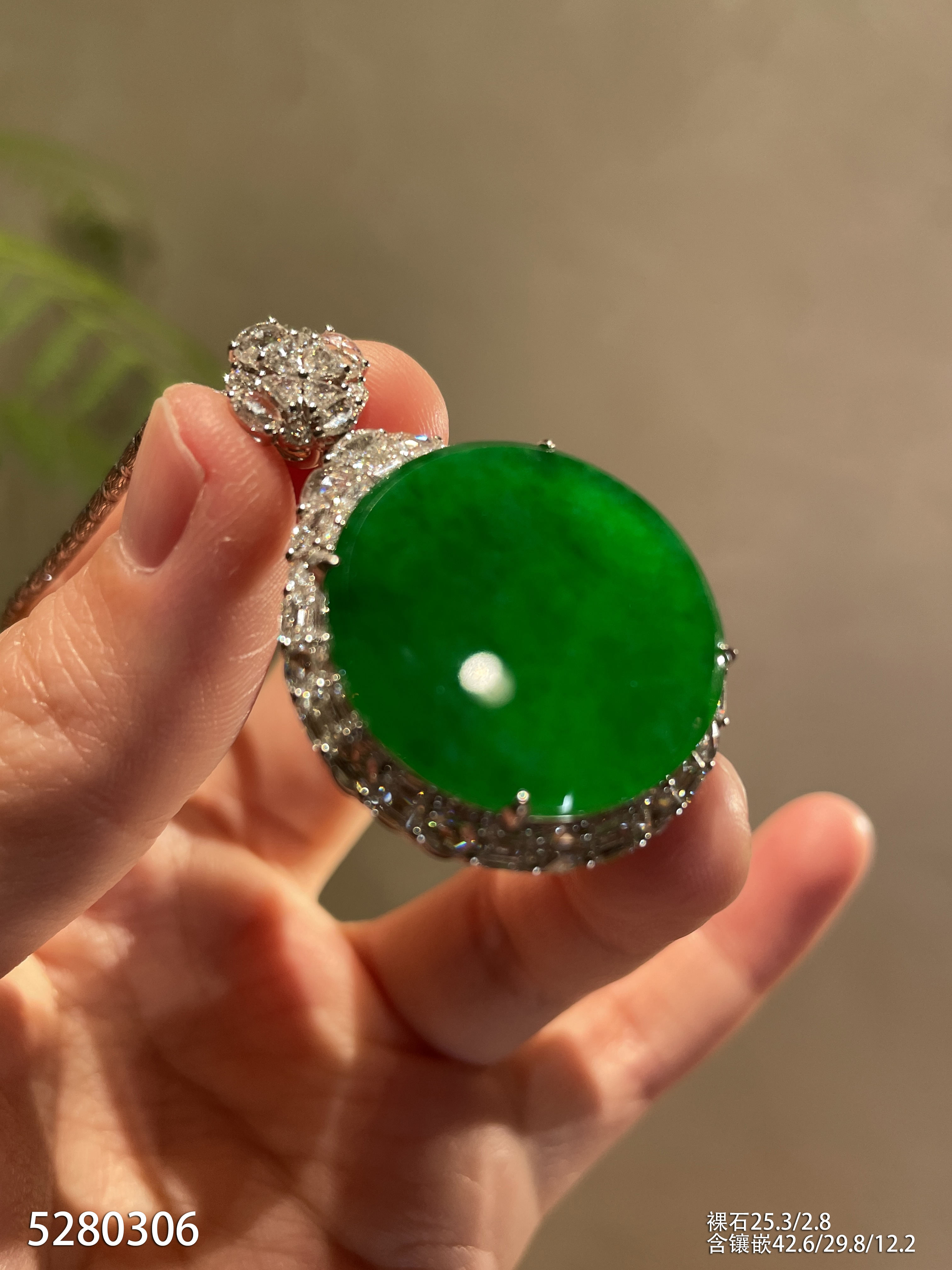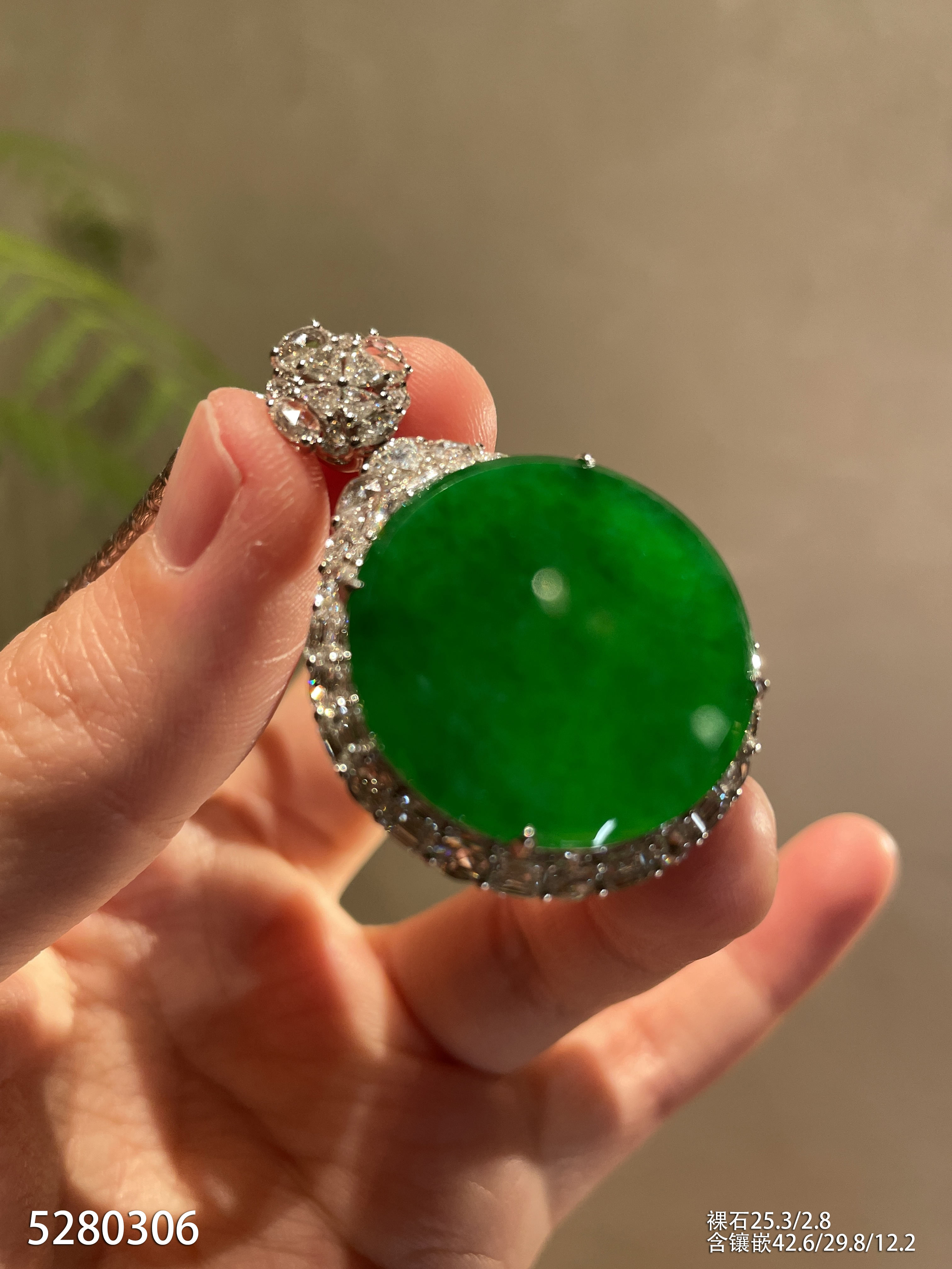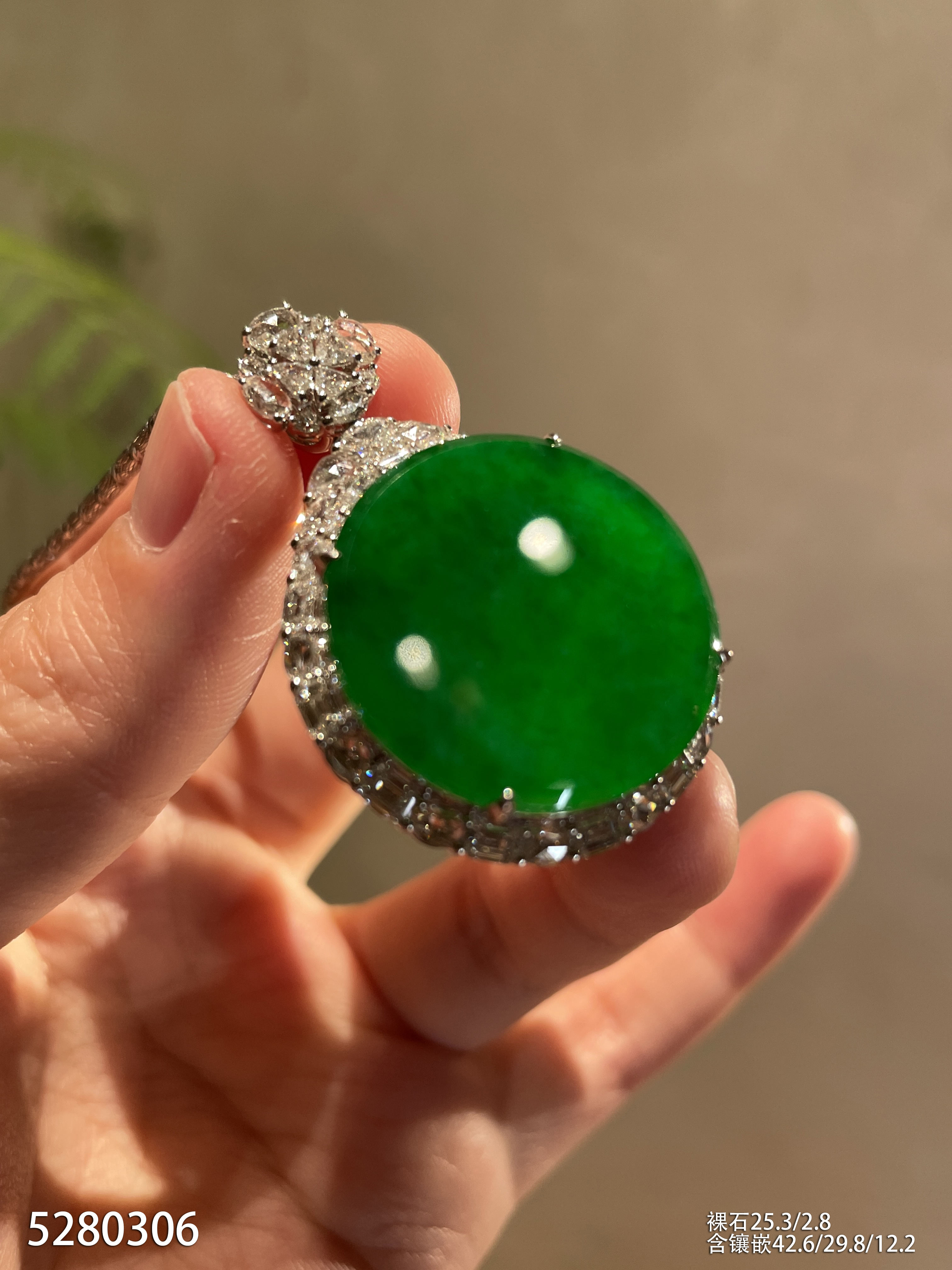 老坑艳绿圆牌吊坠【5280306】具体价格微信咨询