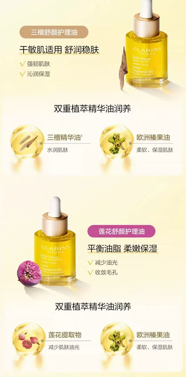 Clarins/娇韵诗莲花面部护理油补水锁水收缩毛孔控油30ml