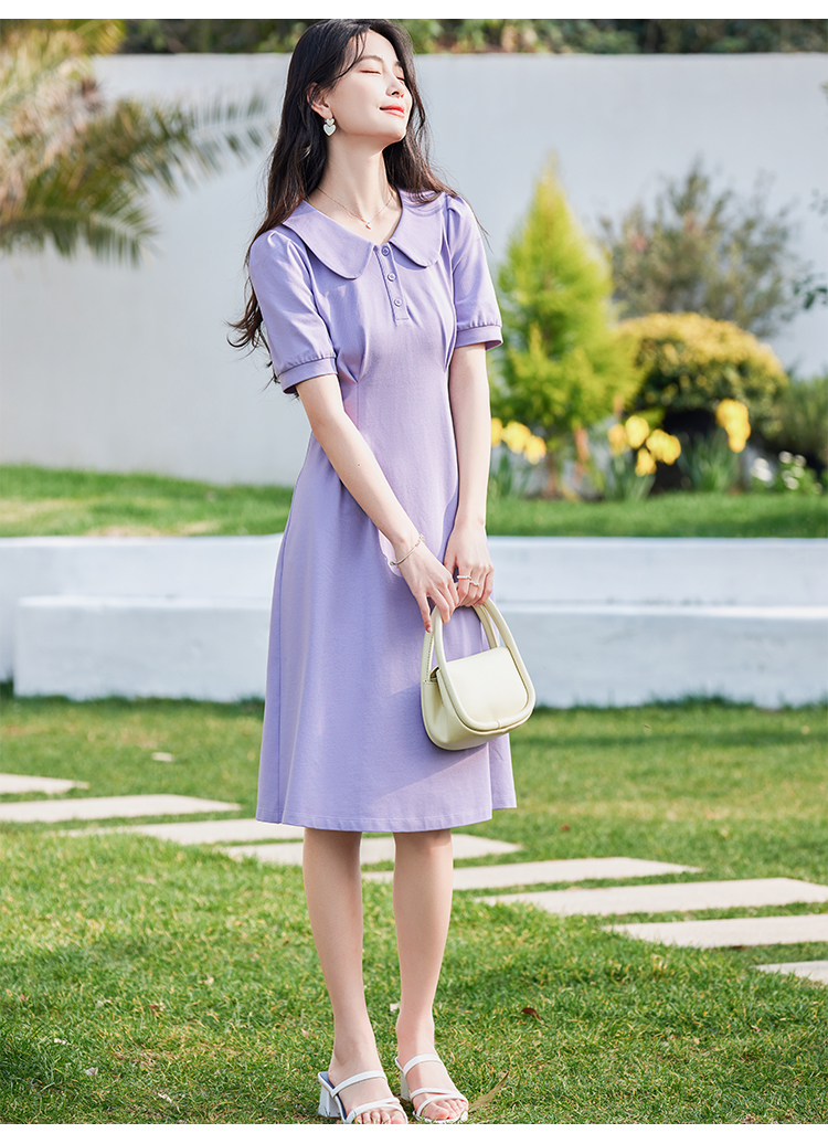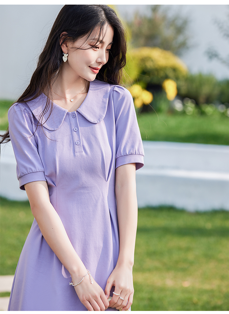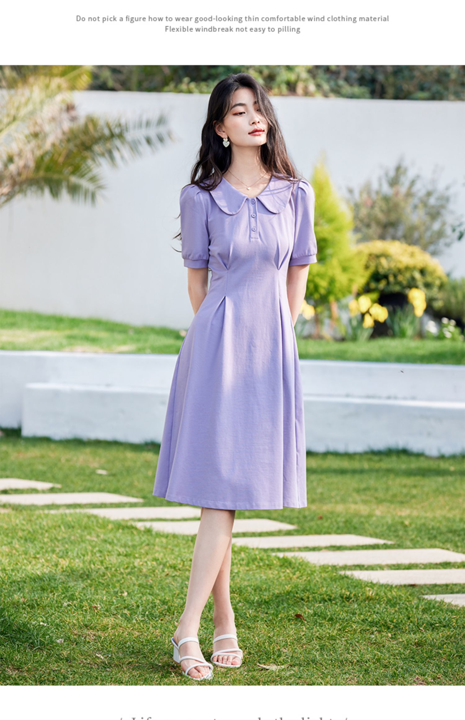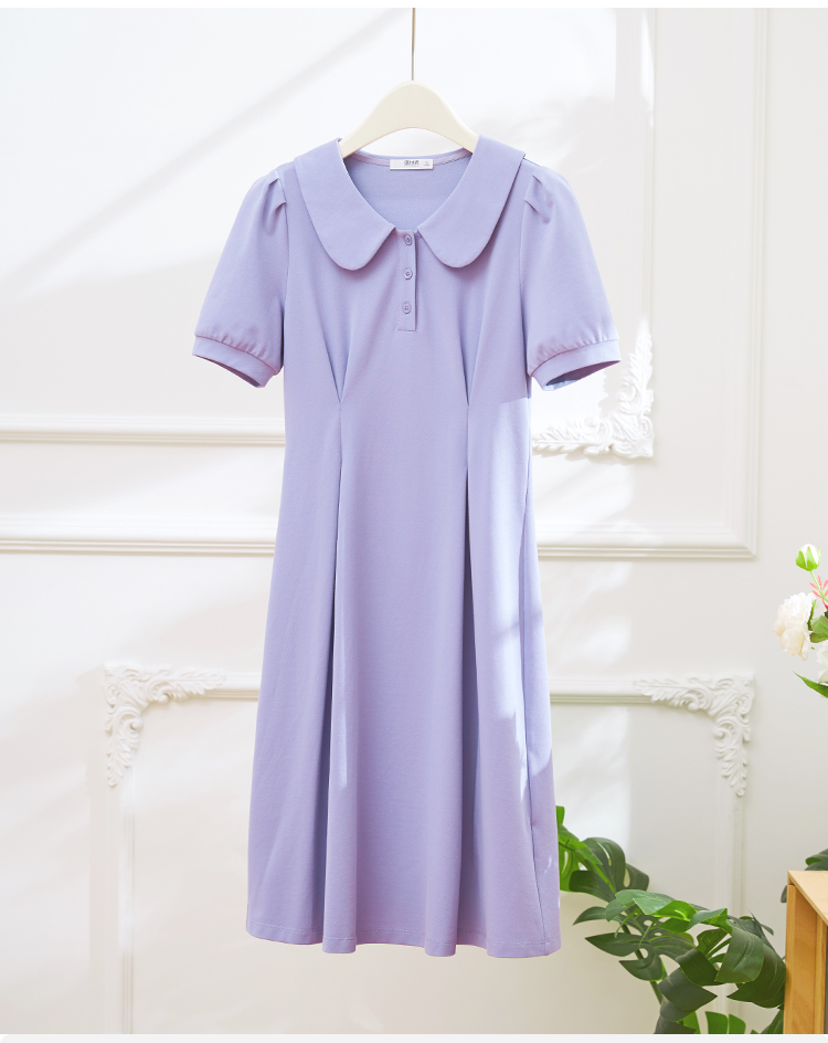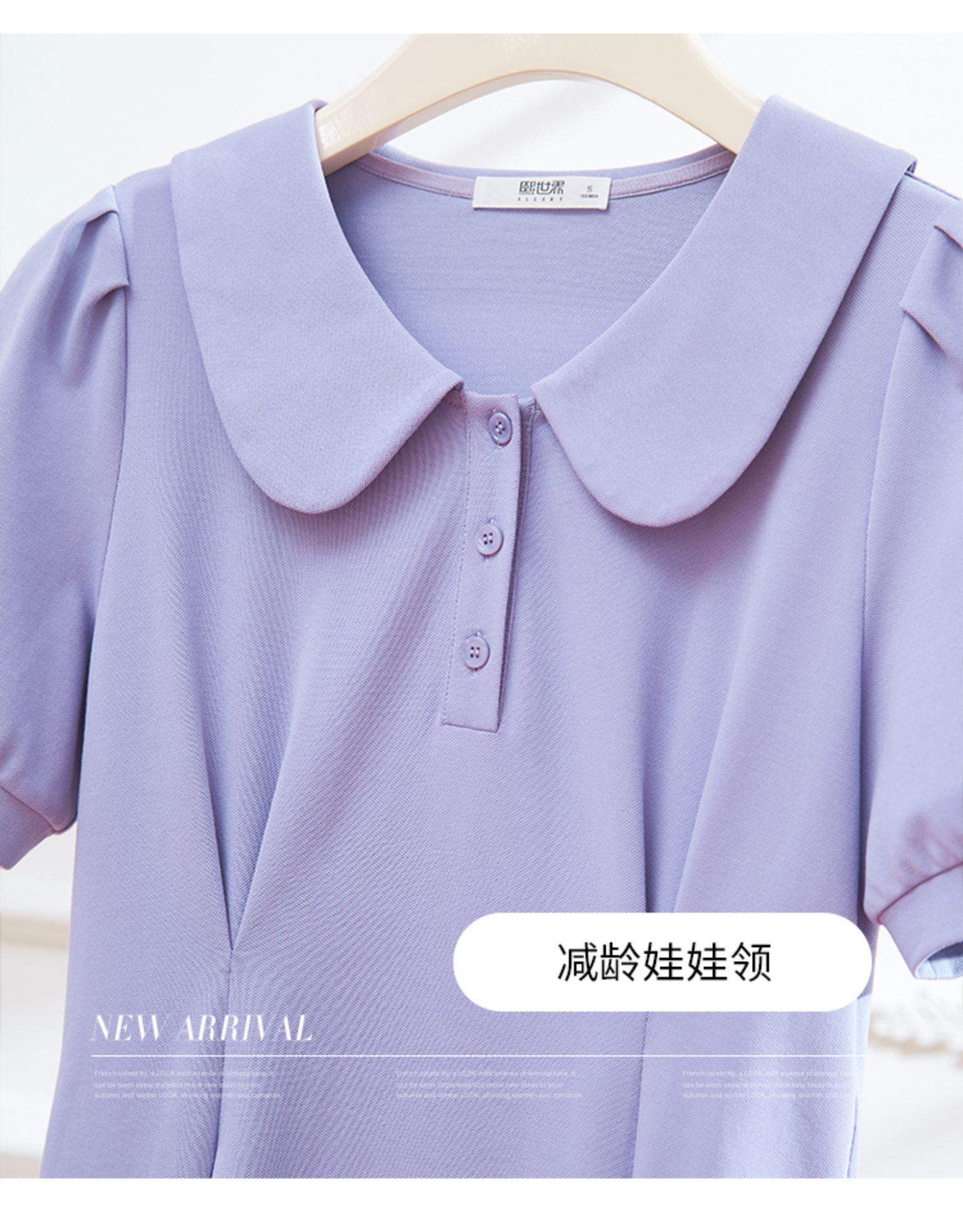 【专属特价】熙世界学院风娃娃领连衣裙女收腰显瘦减龄短袖法式茶歇裙2025夏季