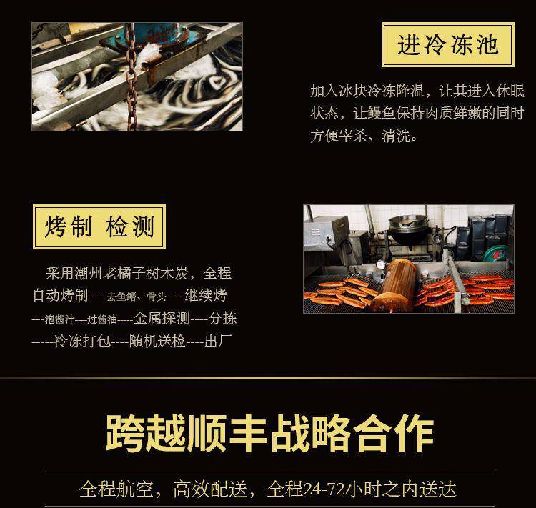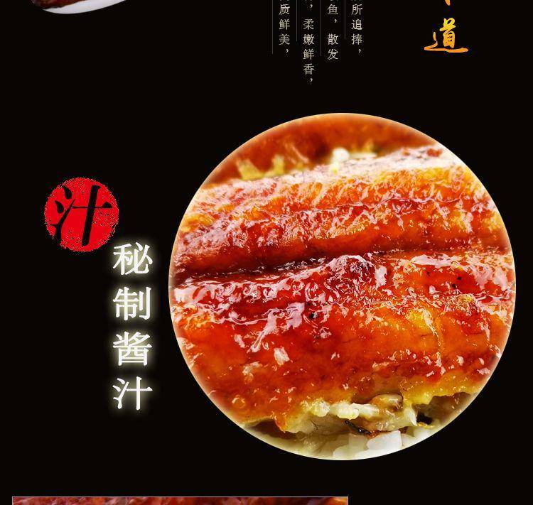 鳗鱼肉蓬松柔软,鱼肉细嫩润滑,带着入了味的醇厚酱汁,既香又甜。每一条都是经过精挑细选后确保烤制之前都是健康的活鳗,真空包装,顺丰空运发出,全程冷链配送。