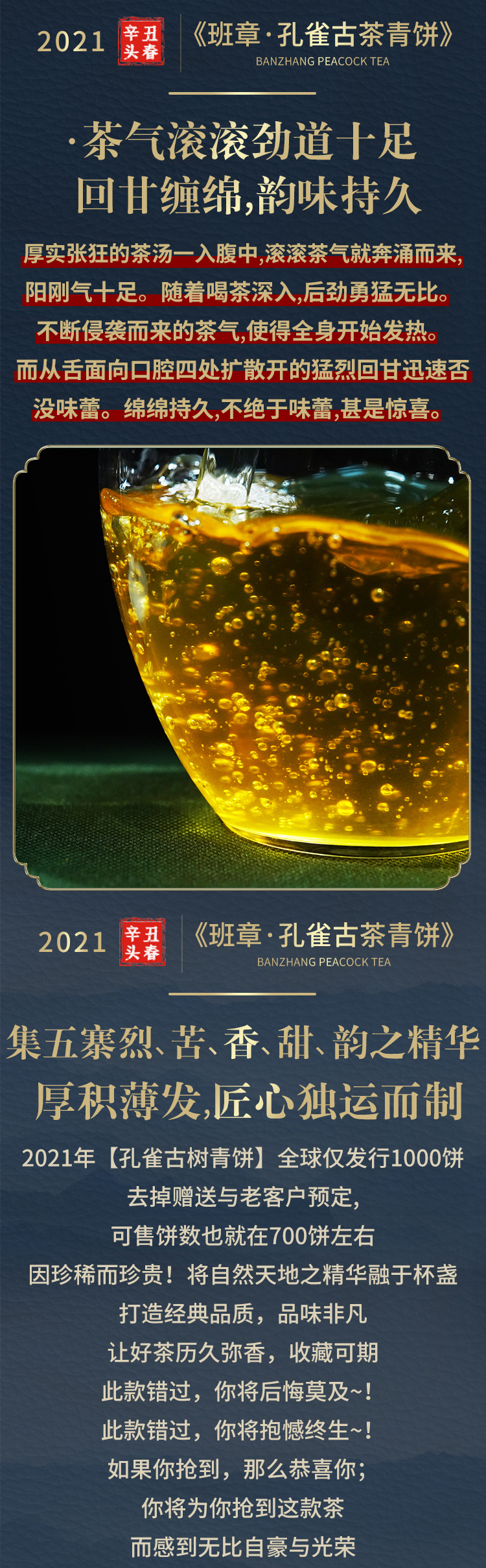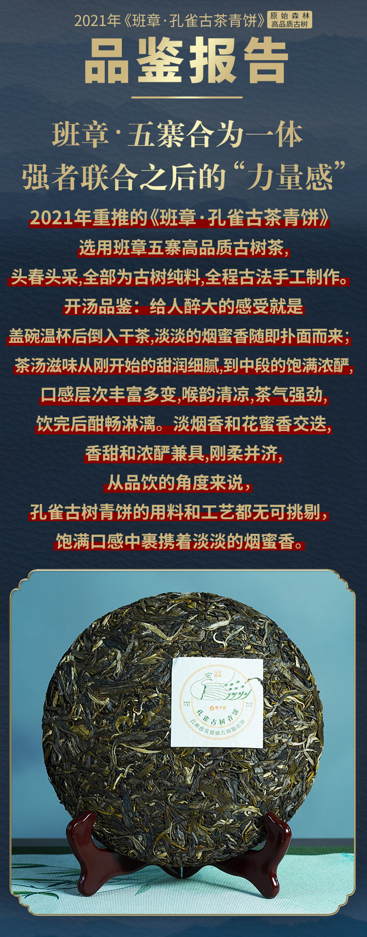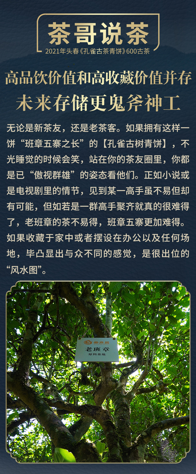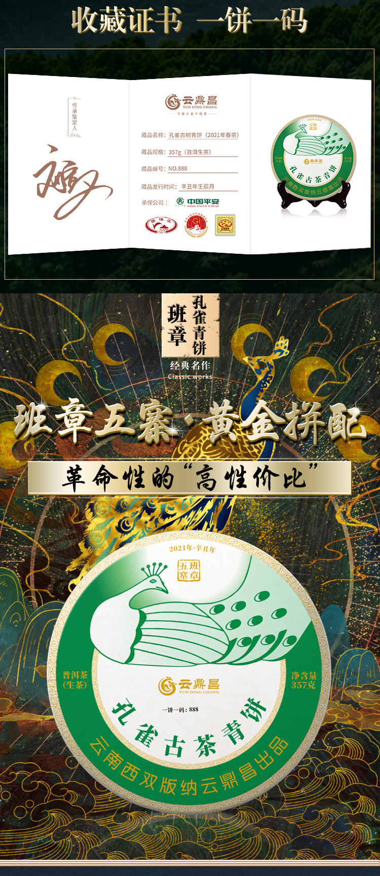 【孔雀古茶青饼】2021年普洱生茶勐海老班章头春饼茶357g