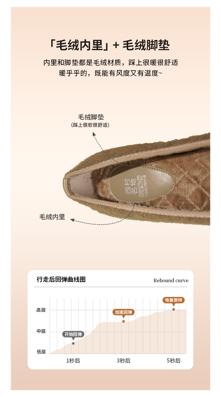 【舒适绒里】西村名物2026年春季新款舒适低跟薄绒内里保暖浅口单鞋T26AE17821