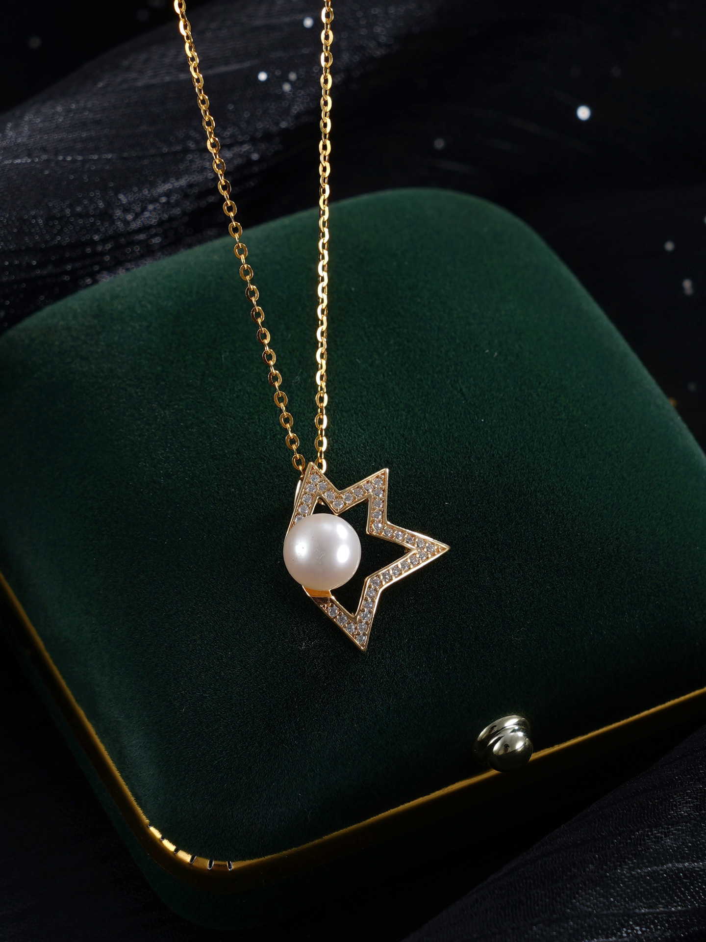 子佩集【甜梦星辰】银S925珍珠惜王妃套链【P1495】7mm珠枫叶半星光2601