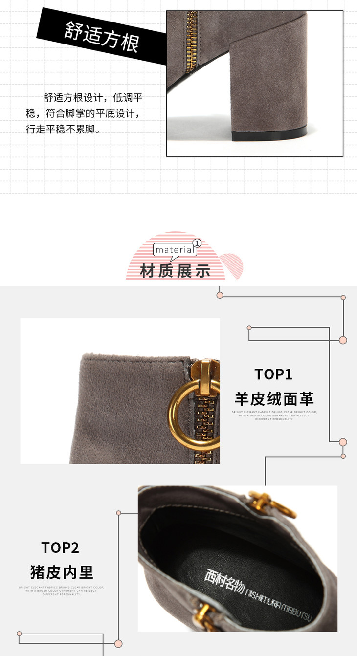 西村名物高跟圆头时尚优雅新潮女靴X274S43071