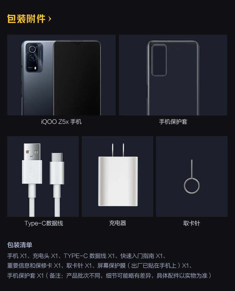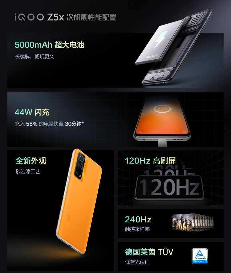 vivo iQOO Z5x 8GB+256GB 透镜黑 44W闪充 5000mAh大电池 120Hz高刷屏 双模5G全网通手机iqooz5x