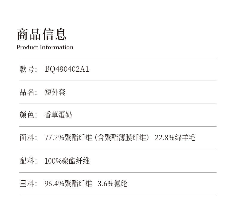 oldcolour欧珂冬季简约休闲宽松日常百搭纯色短外套女BQ480402A1