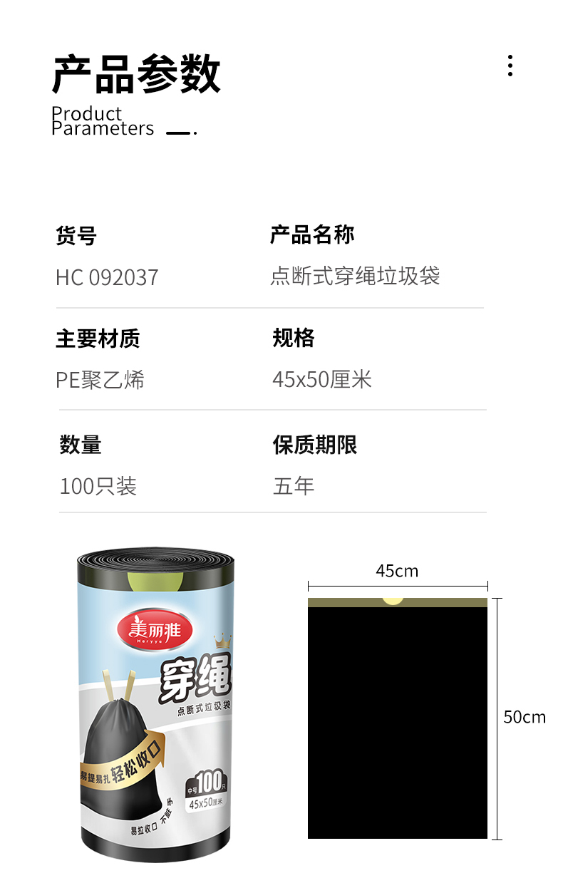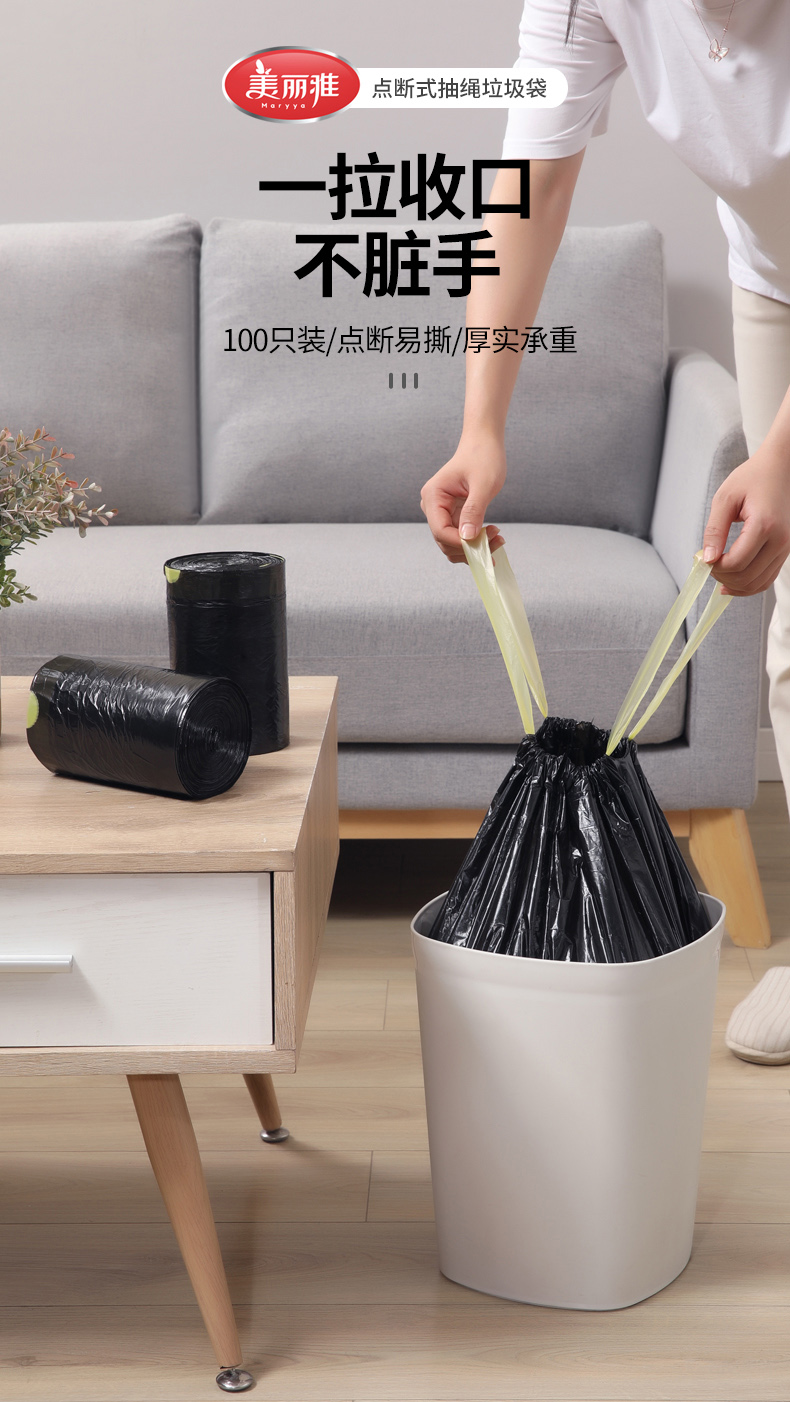 【批发】美丽雅抽绳垃圾袋加厚承重8KG 100个/卷