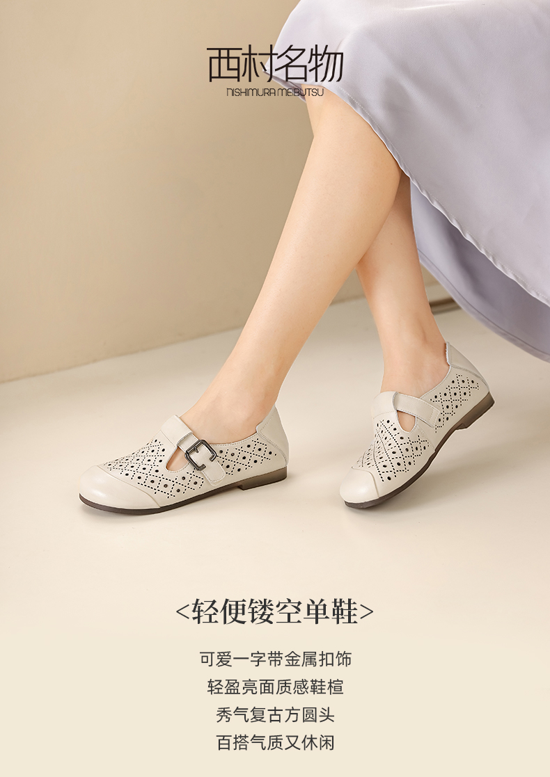西村名物2023夏季新款休闲风镂空扣带单鞋女软底软面洞洞鞋13181