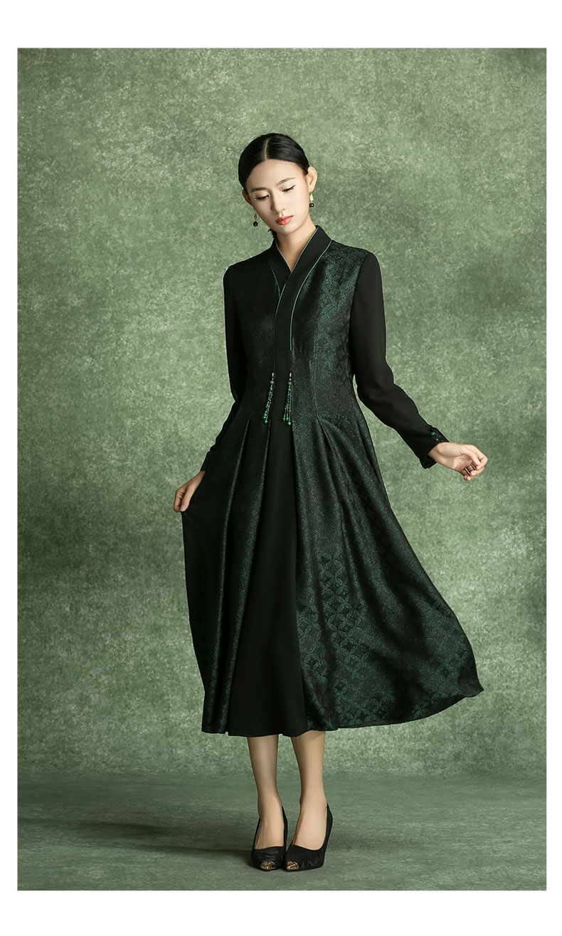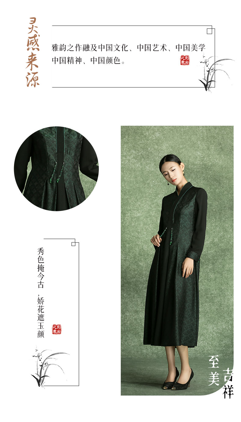 吉祥衣家新中式国风春夏新款高端气质显瘦修身女装万顷琉璃连衣裙