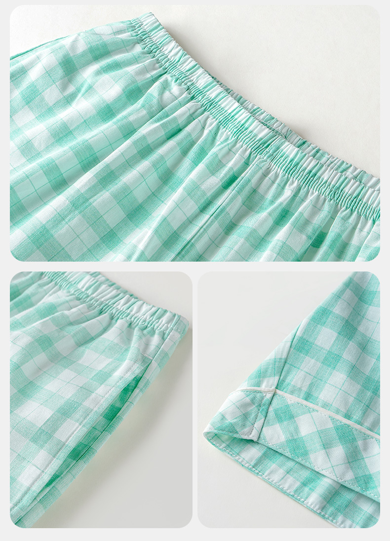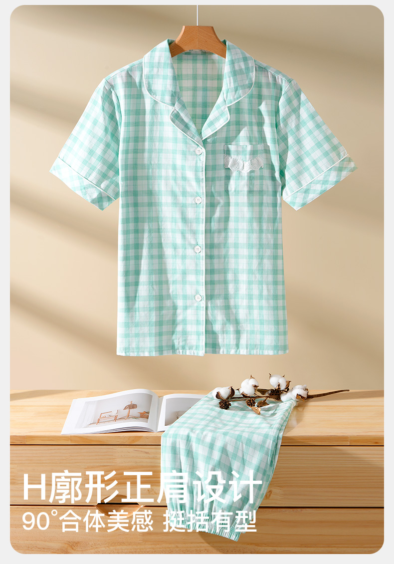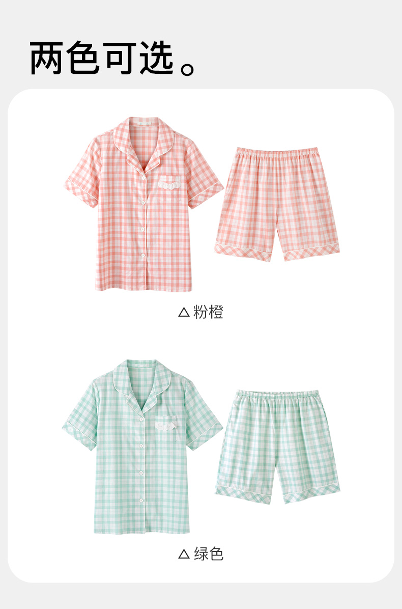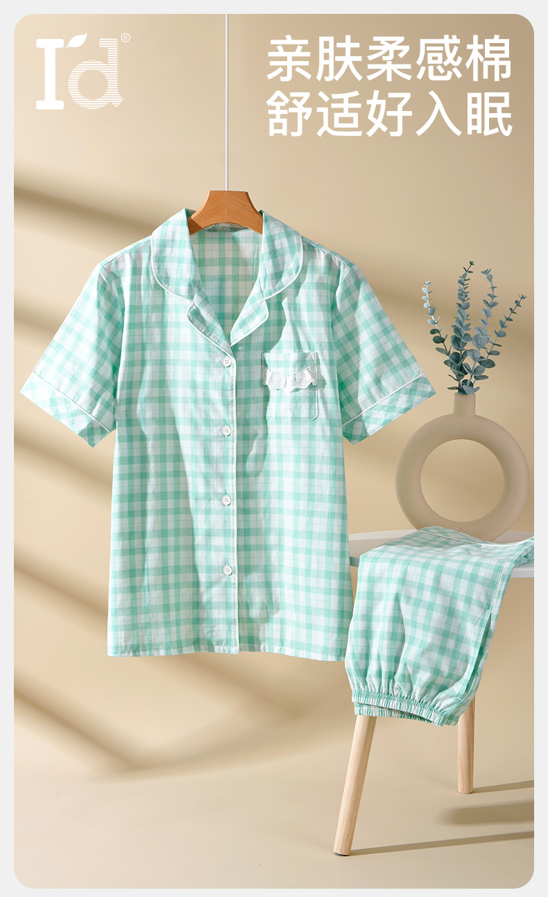【梭织纯棉】爱帝女纯棉格纹家居服短袖短裤睡衣套装