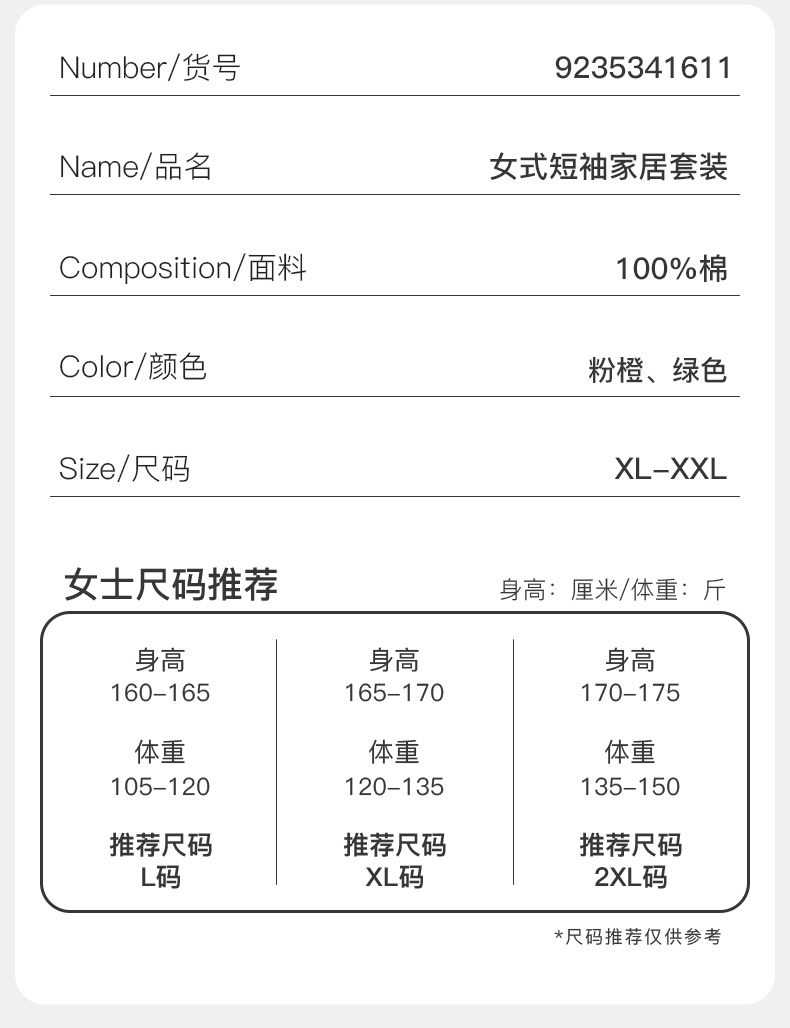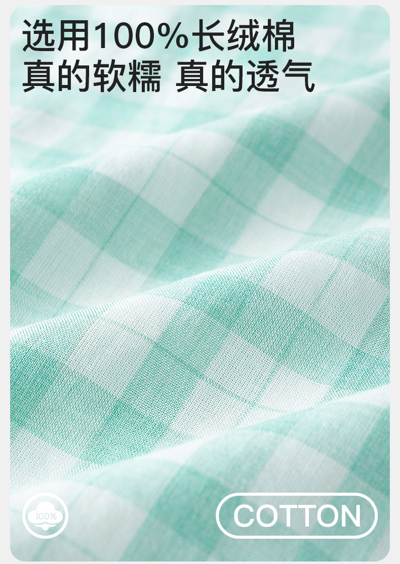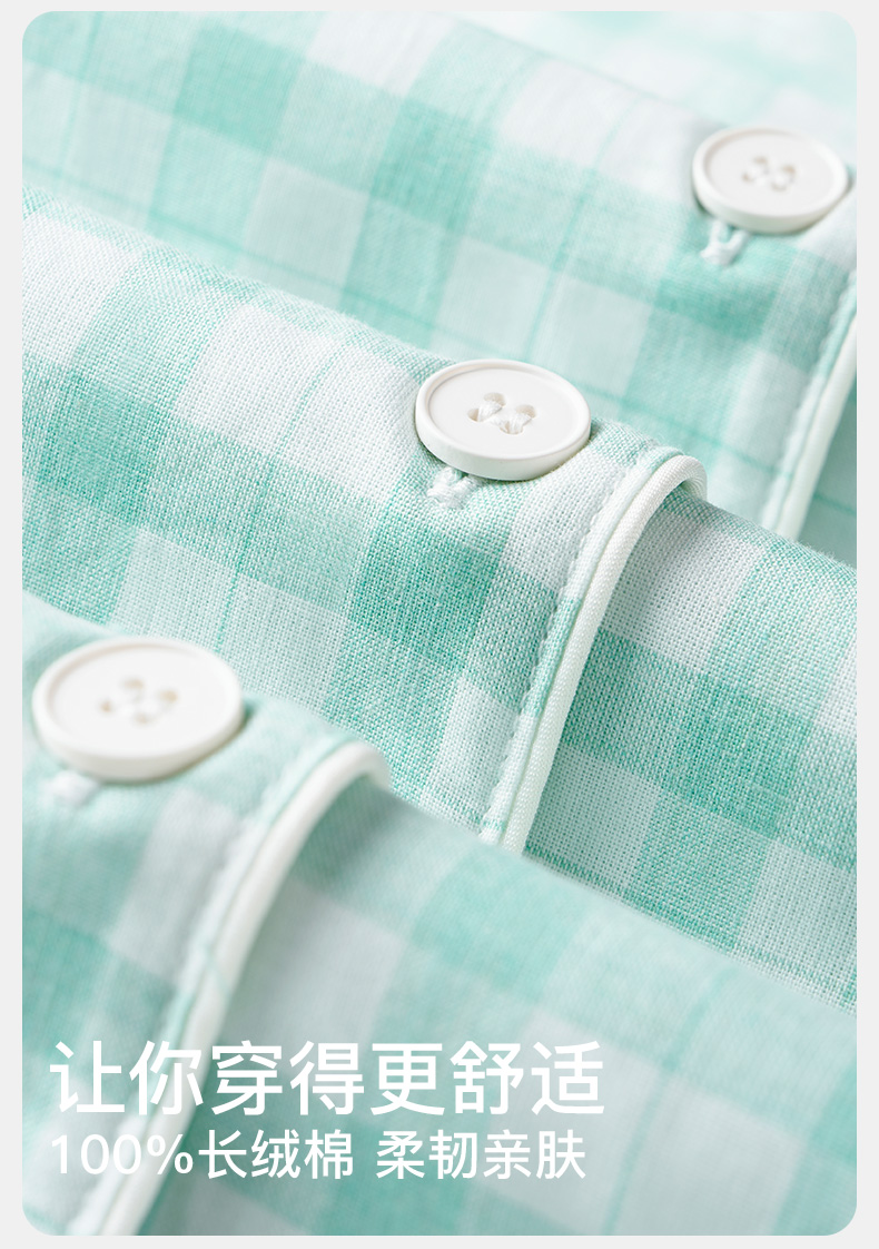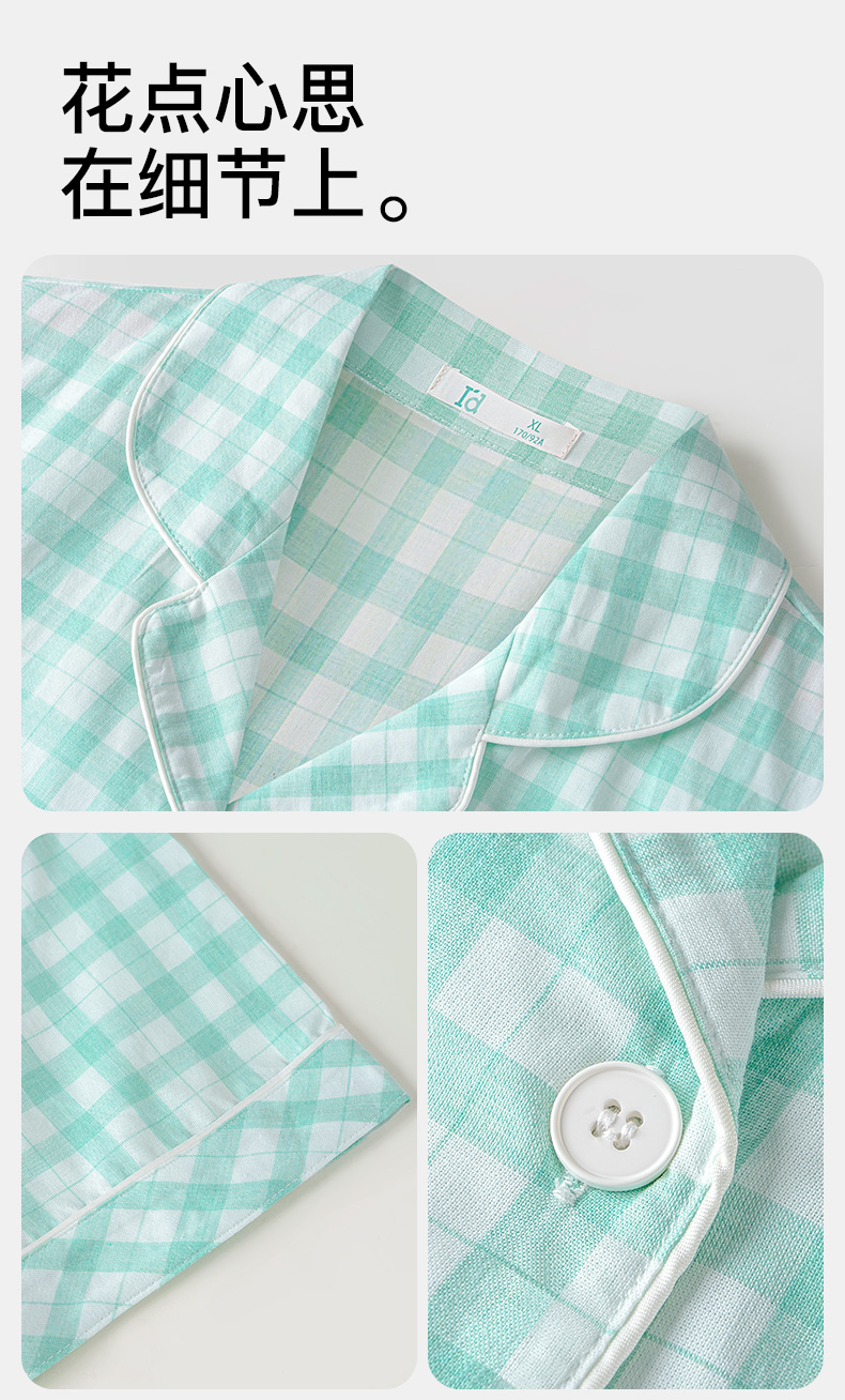 【梭织纯棉】爱帝女纯棉格纹家居服短袖短裤睡衣套装