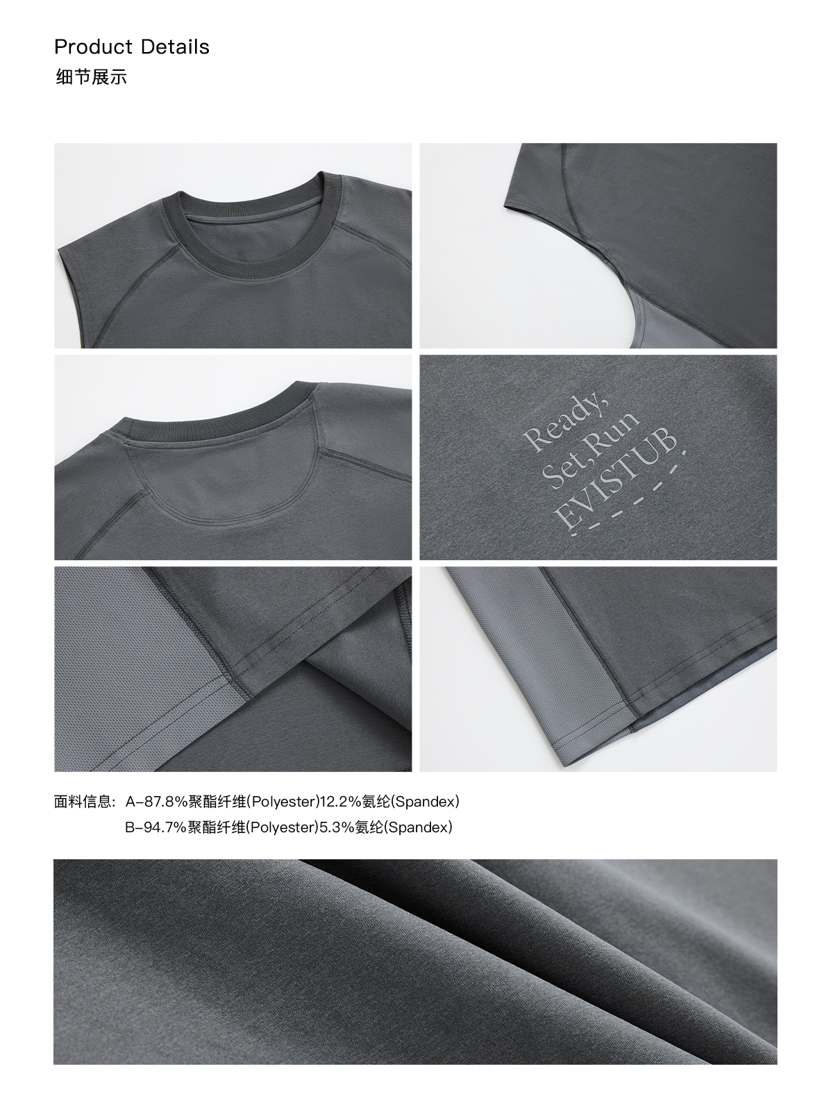 Evistub/E-5XDX633/运动坎肩圆领背心T恤男夏