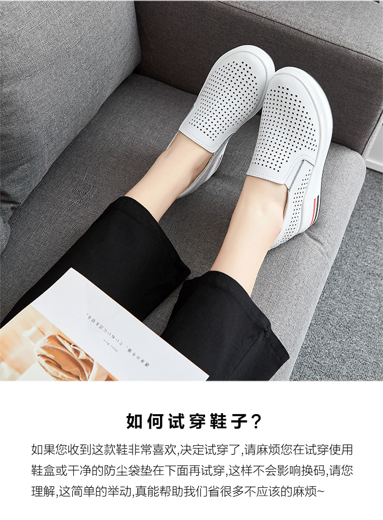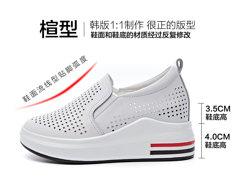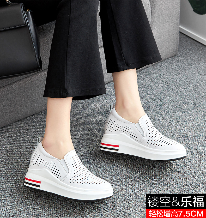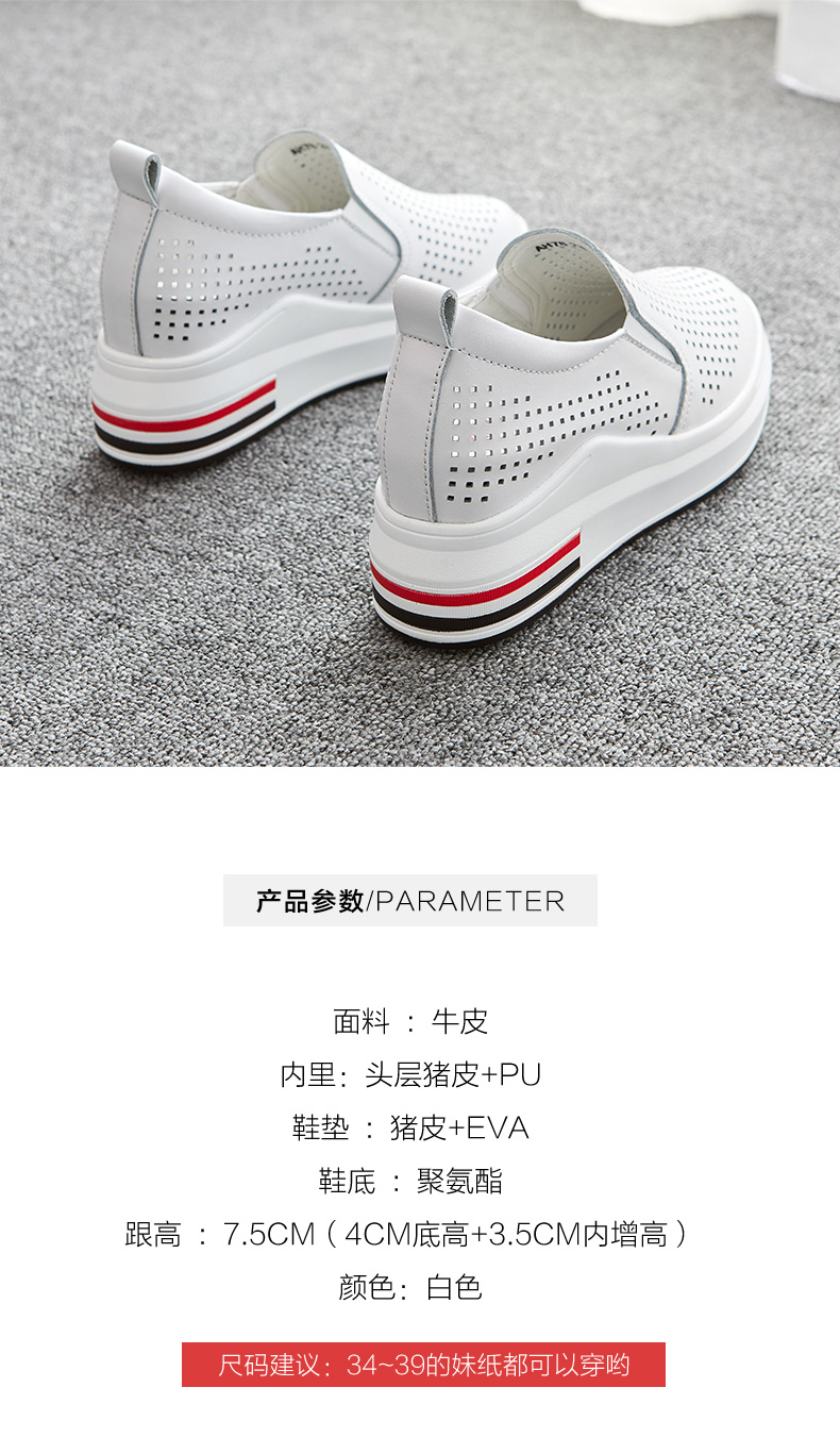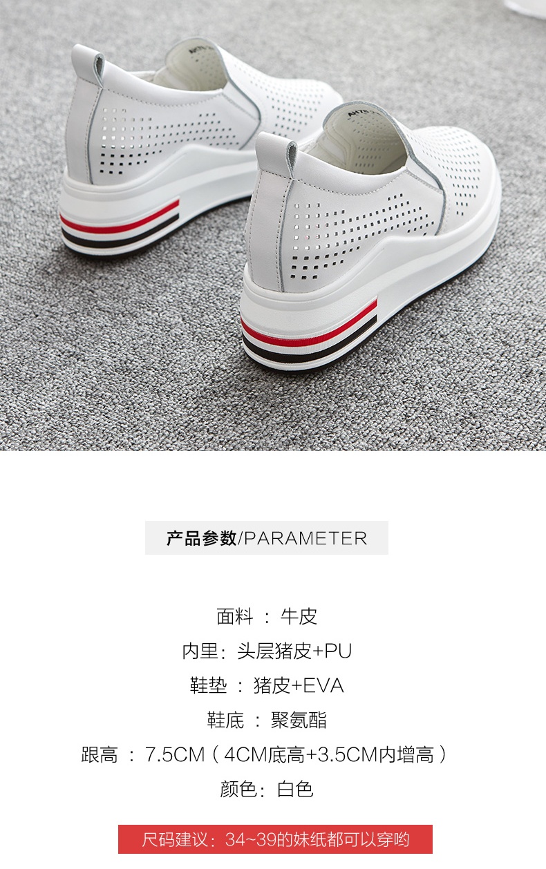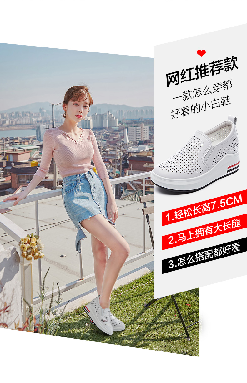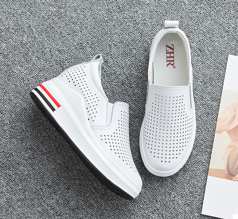 ZHR休闲小白鞋女网洞鞋2023夏秋新款一脚蹬厚底坡跟小白鞋