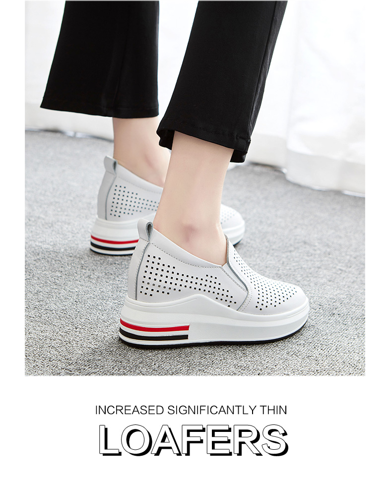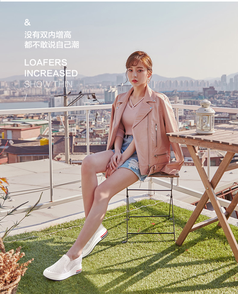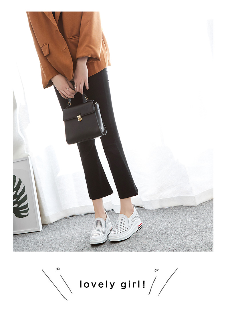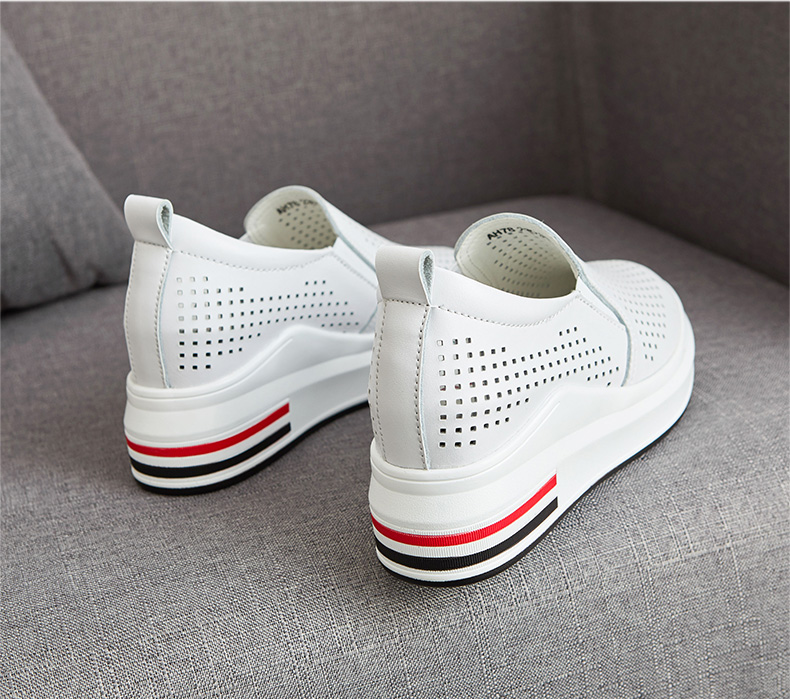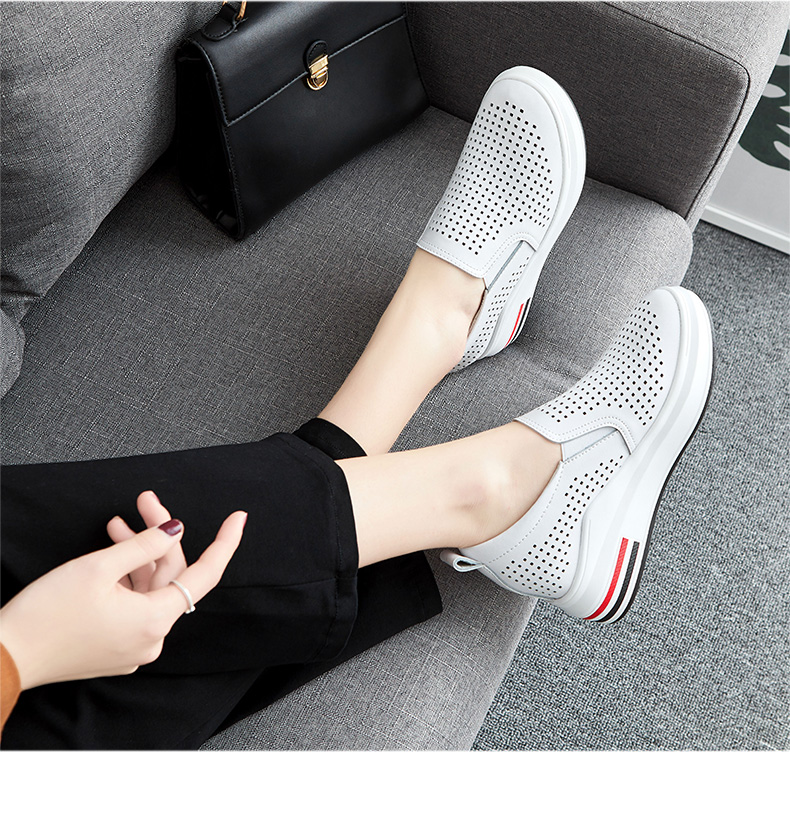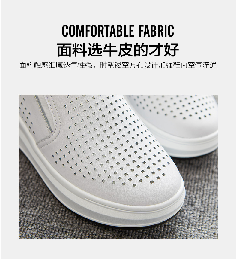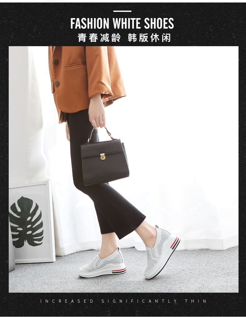 ZHR休闲小白鞋女网洞鞋2023夏秋新款一脚蹬厚底坡跟小白鞋