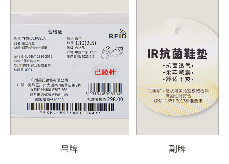 英氏儿童男宝宝学步鞋2023休闲IR抗菌运动小白鞋春夏YFXHJ1P085A