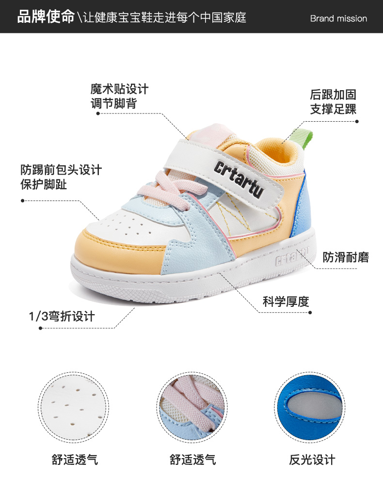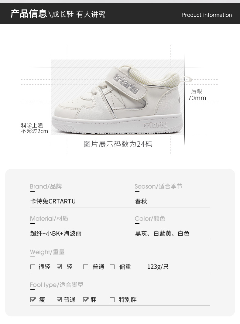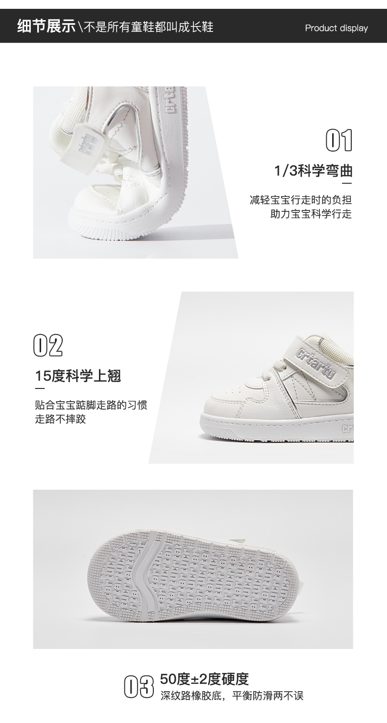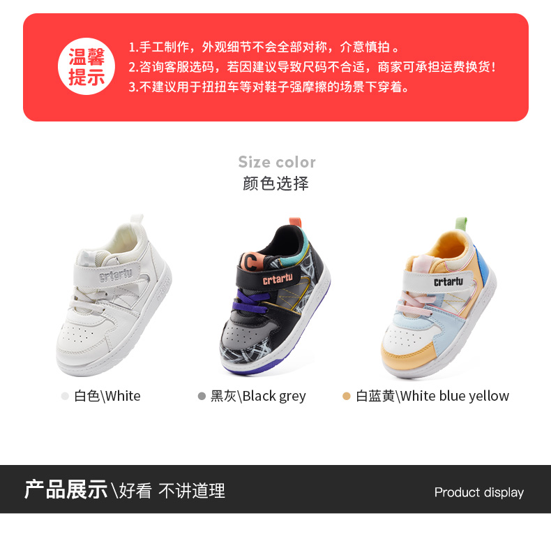 卡特兔春秋款宝宝几何线条小白鞋 3色 一段/二段/三段
