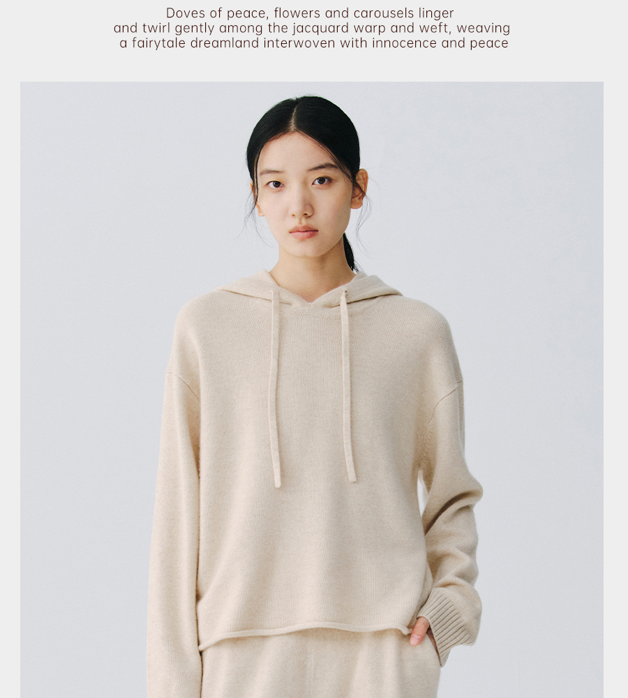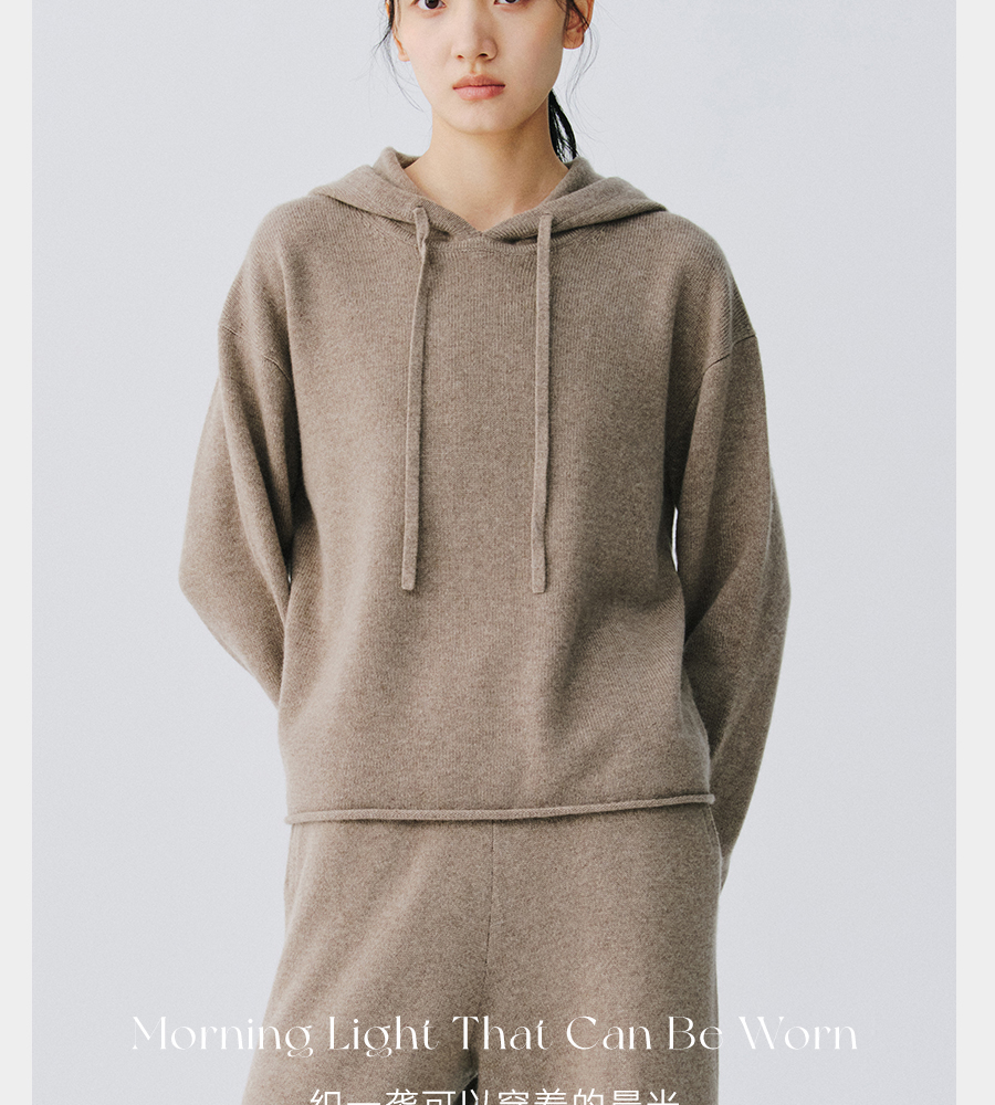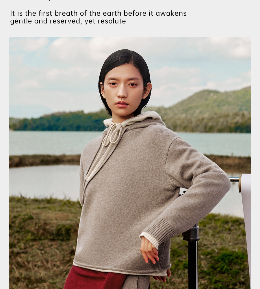 东黎 • 复苏的呼吸 春日游望 山羊绒女士轻盈保暖连帽套衫 6144