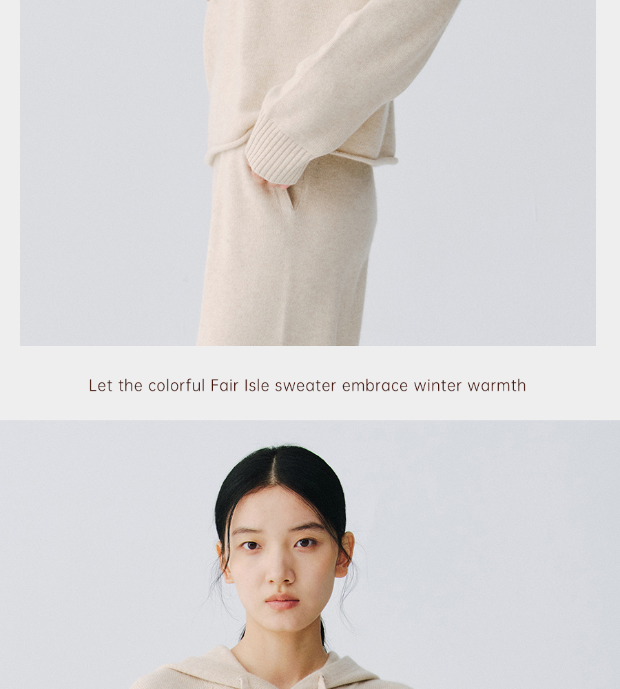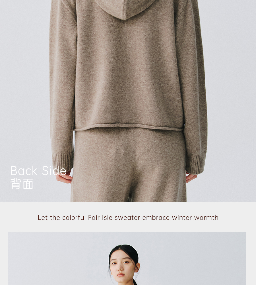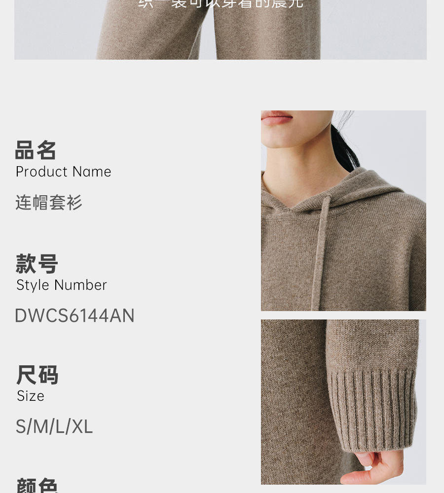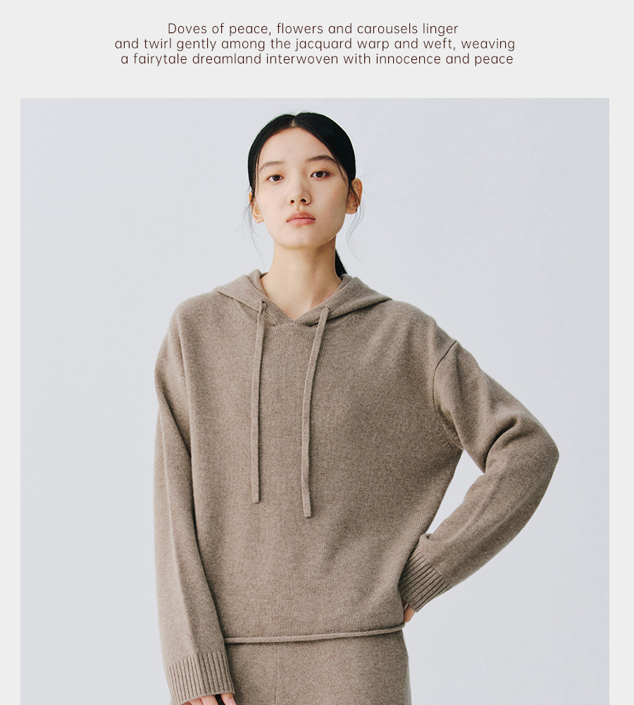 东黎 • 复苏的呼吸 春日游望 山羊绒女士轻盈保暖连帽套衫 6144