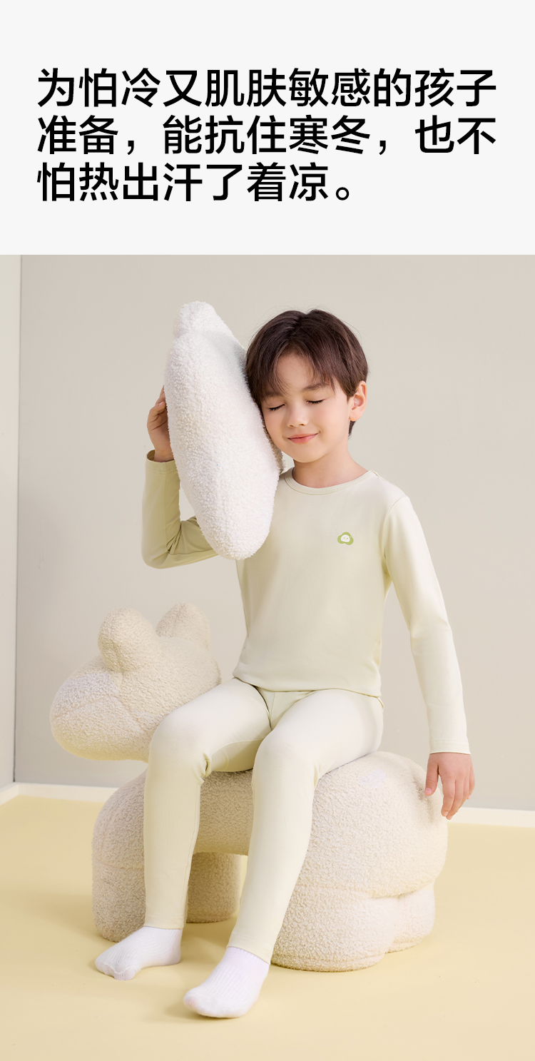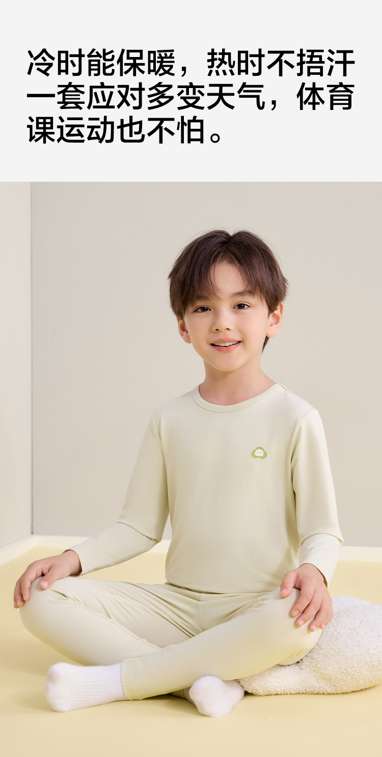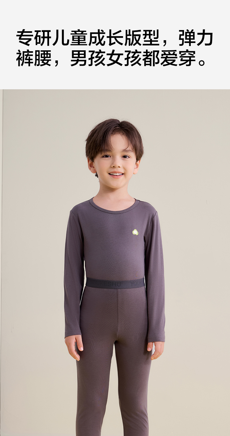 【莫代尔棉】【120-160】【有棵树】男童莫代尔保暖内衣套装