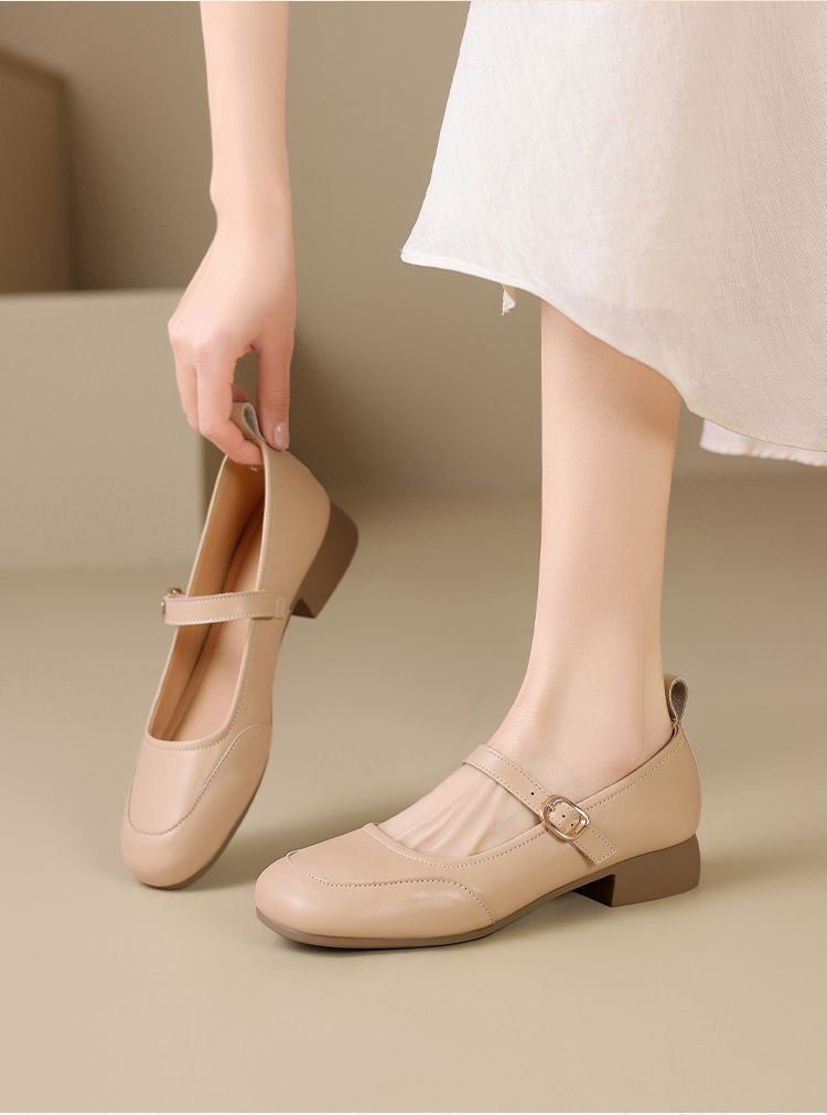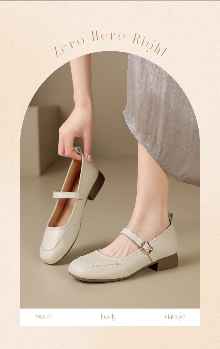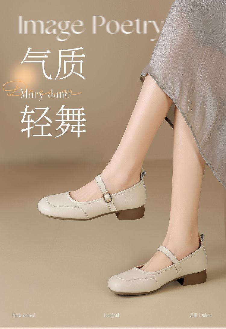 ZHR玛丽珍鞋女2025新款法式圆头浅口单鞋女时尚百搭平底ins小皮鞋