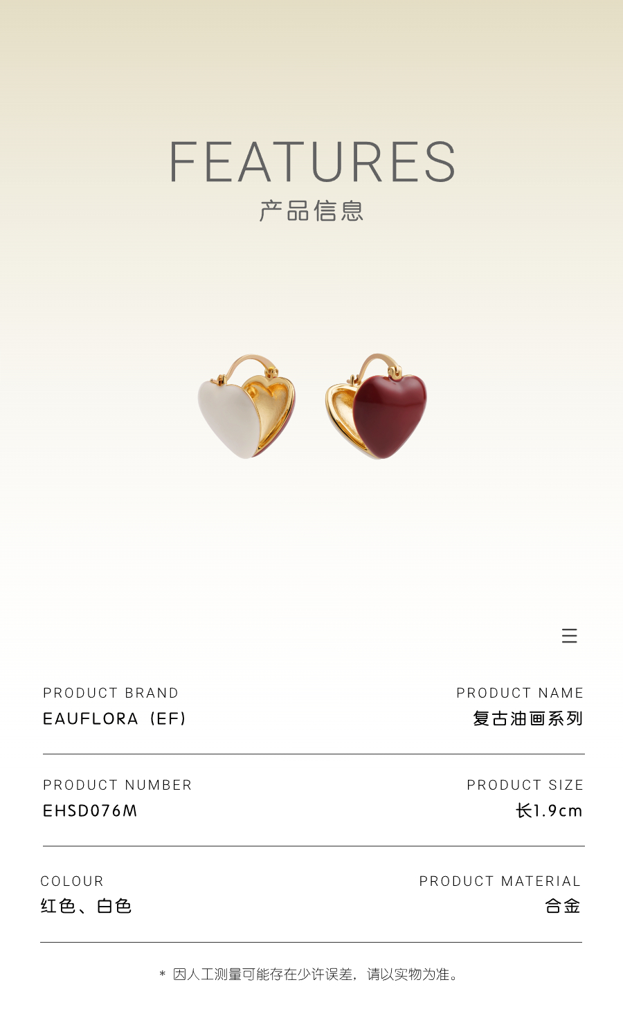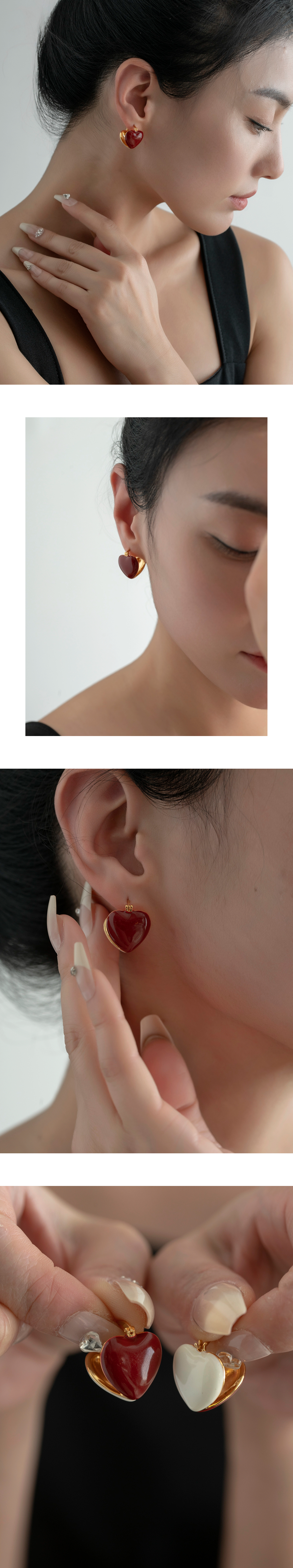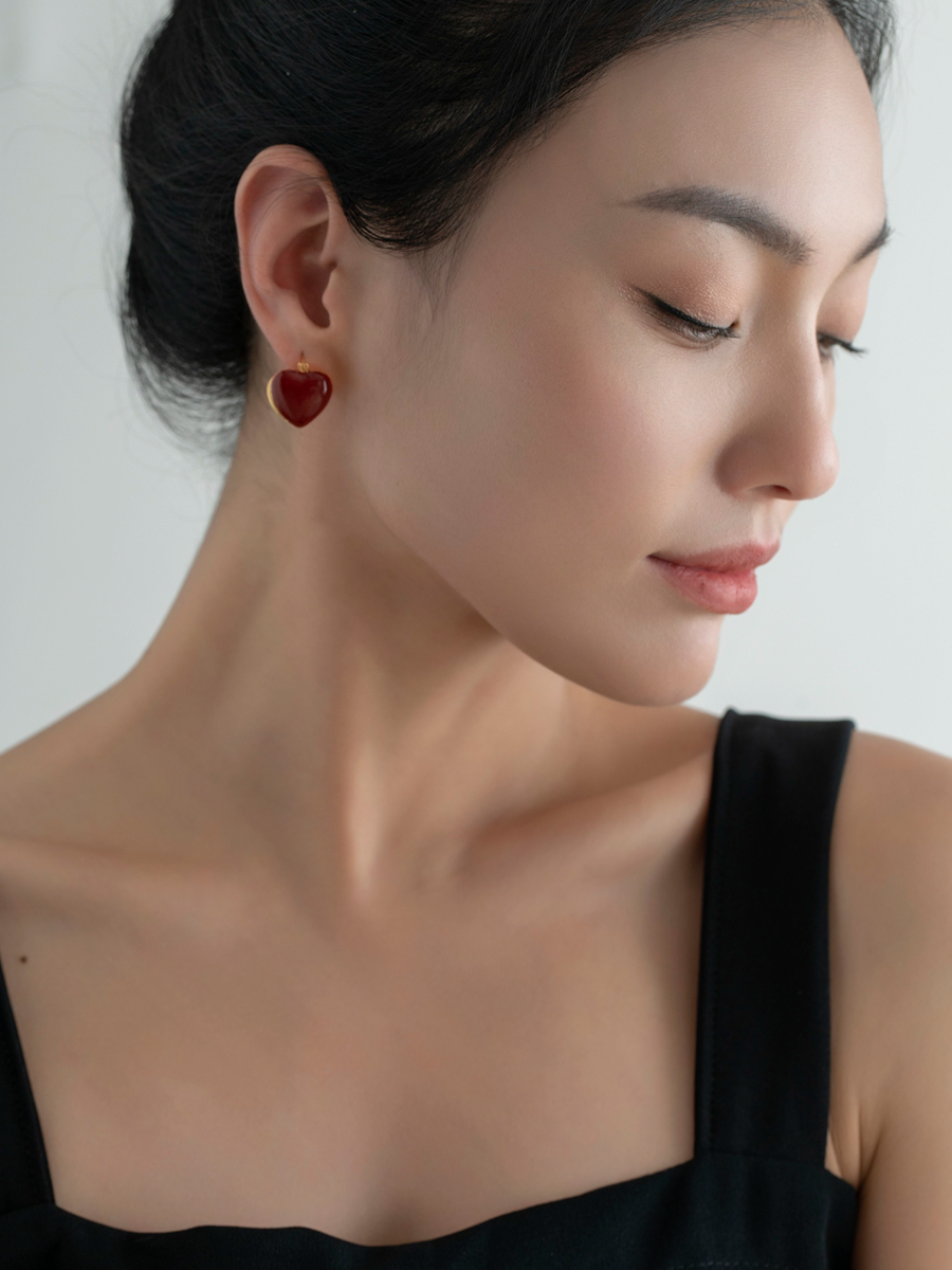 『红颜』红白滴釉心形耳环
